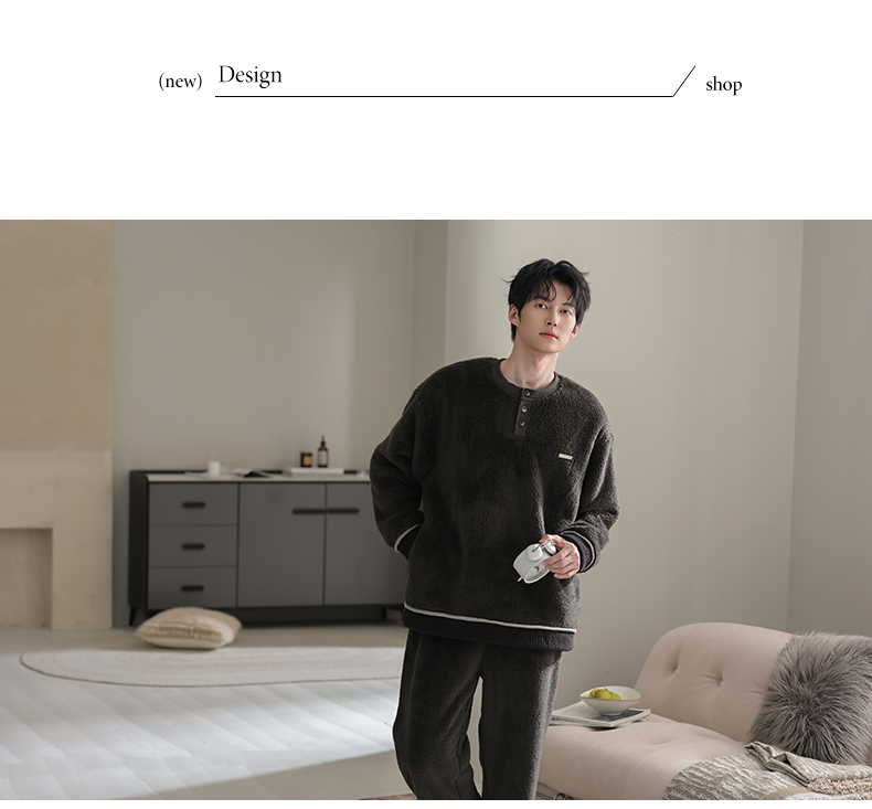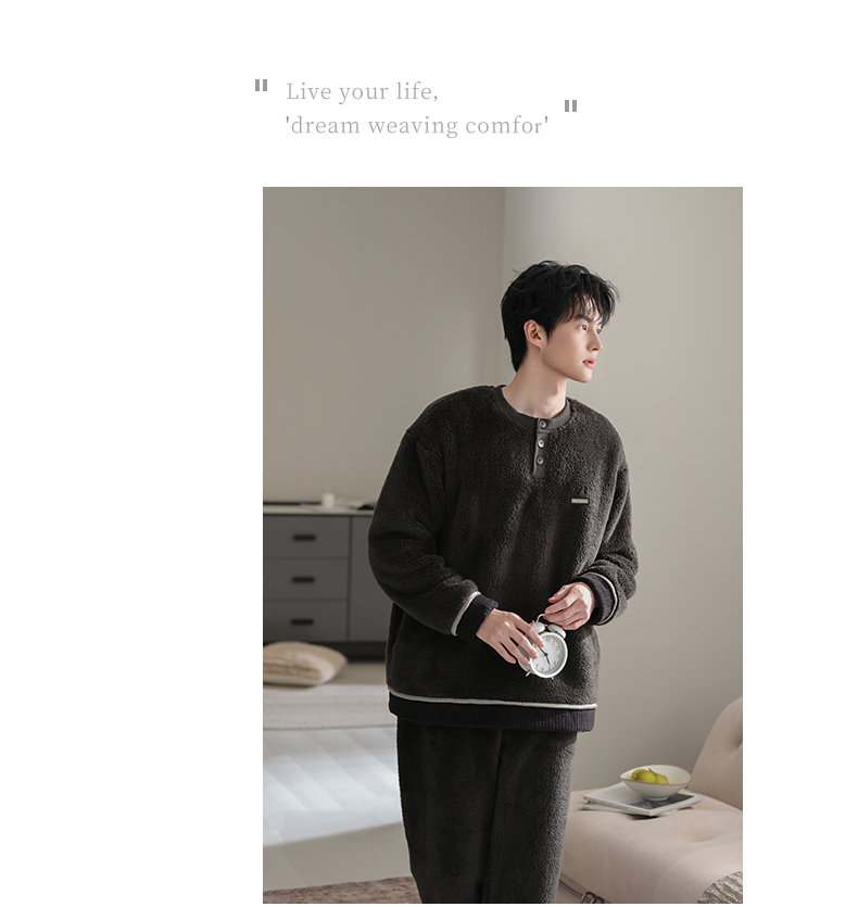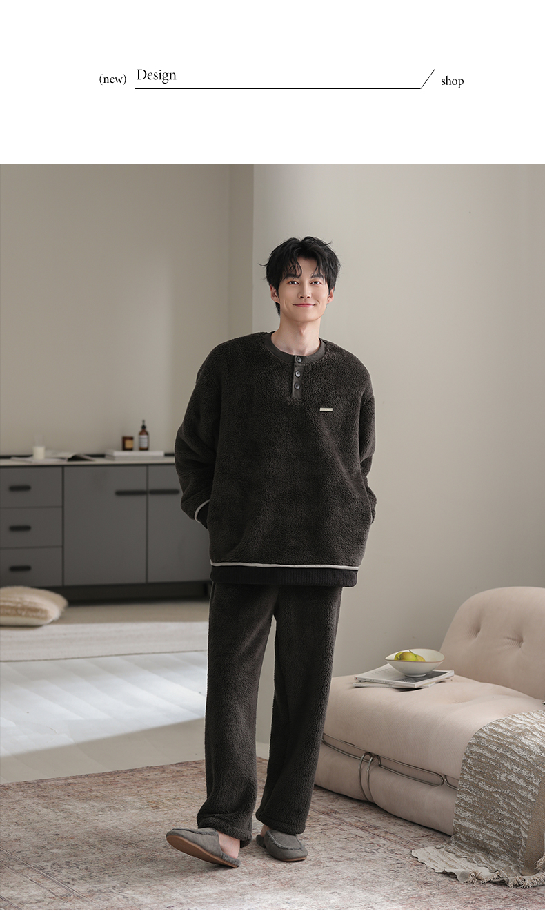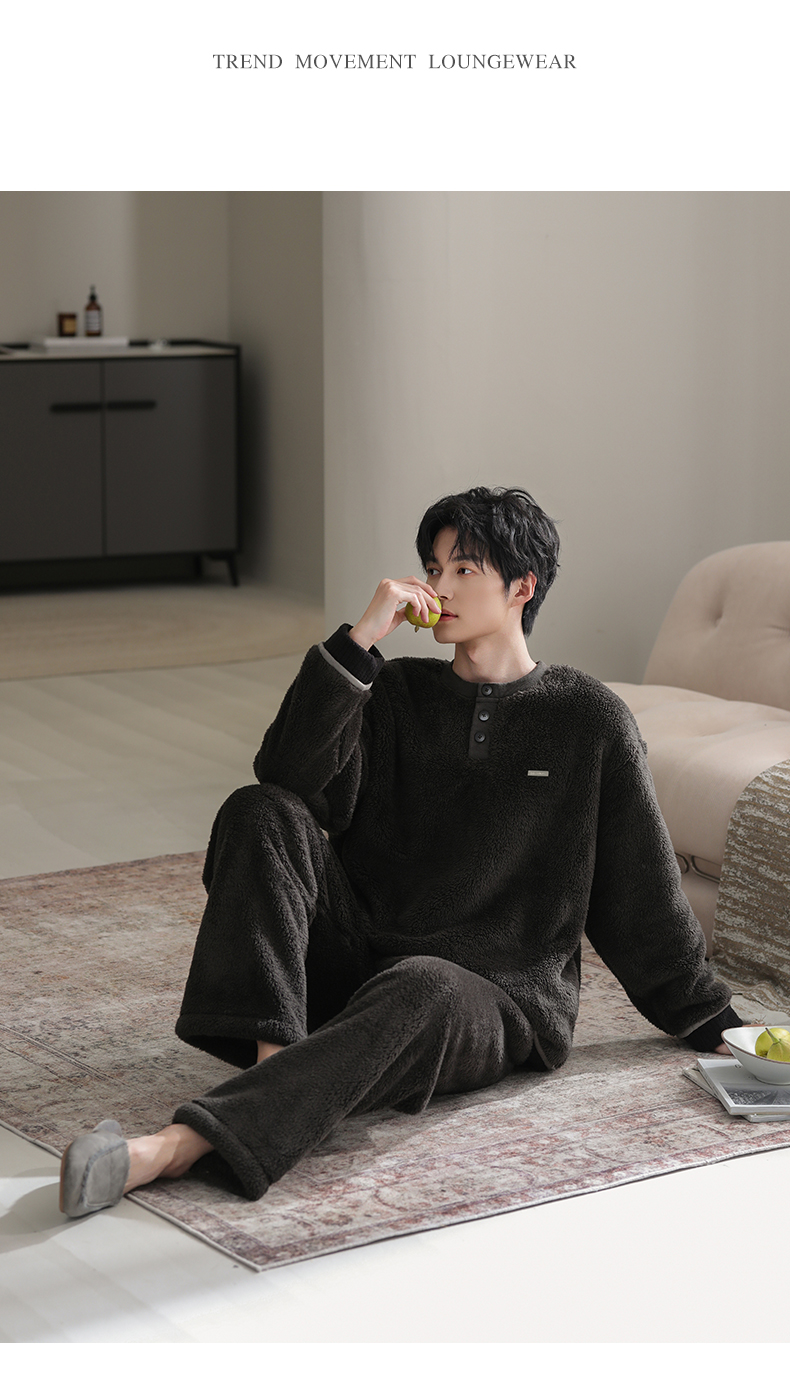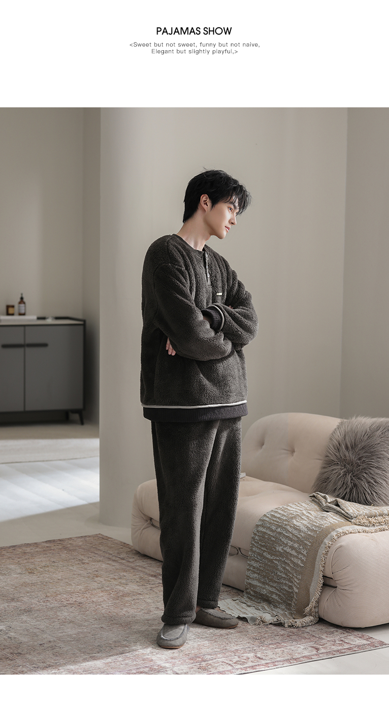 可人儿冬季男士保暖舒棉绒睡衣秋冬休闲宽松男款加厚珊瑚绒家居服