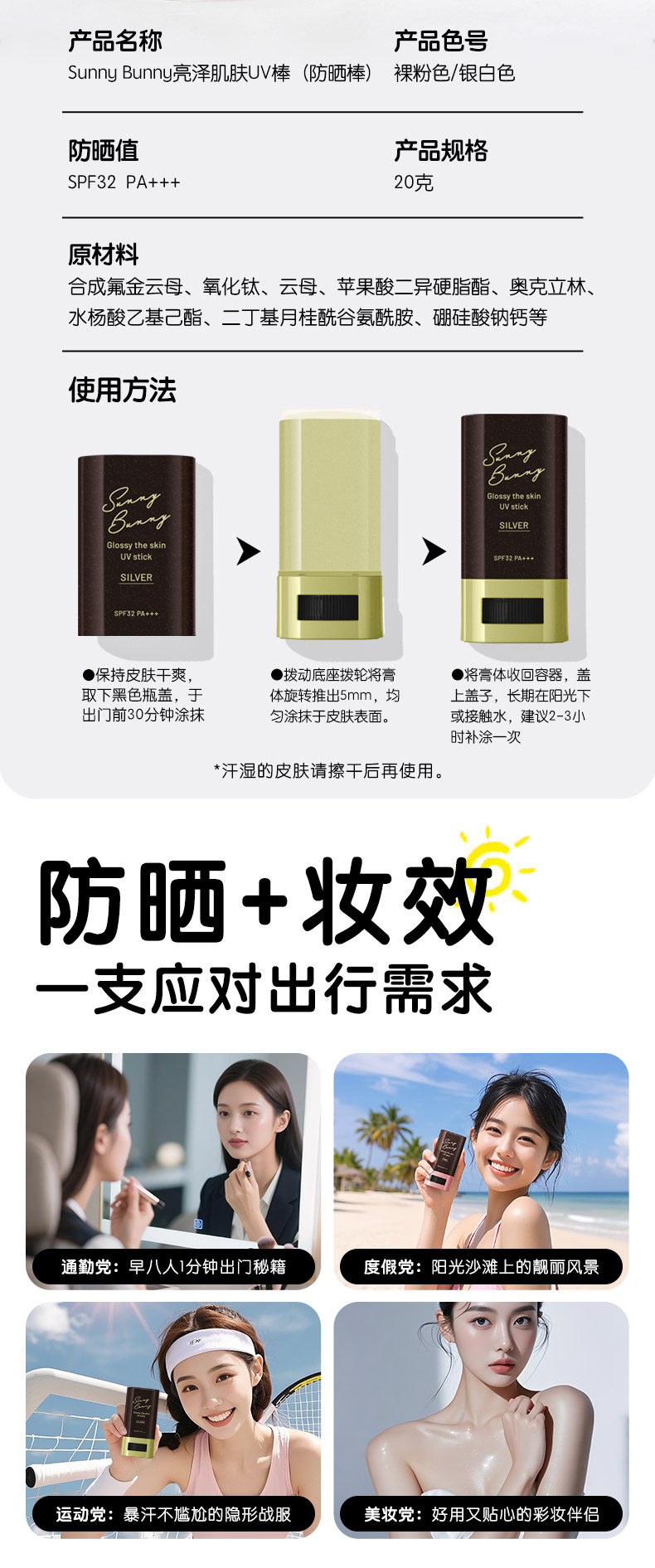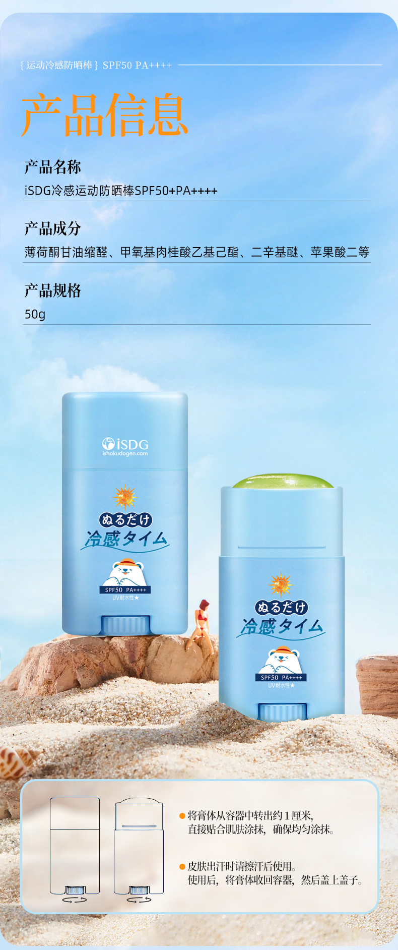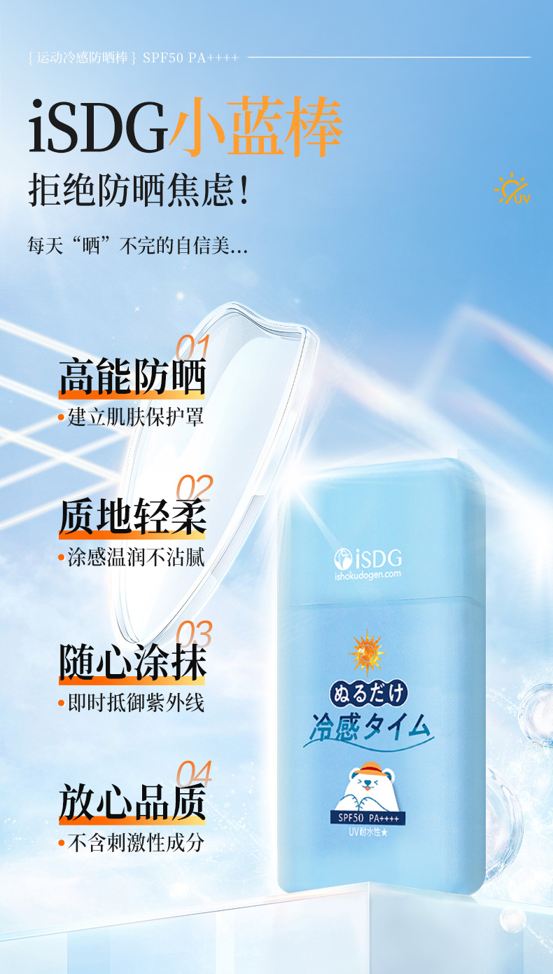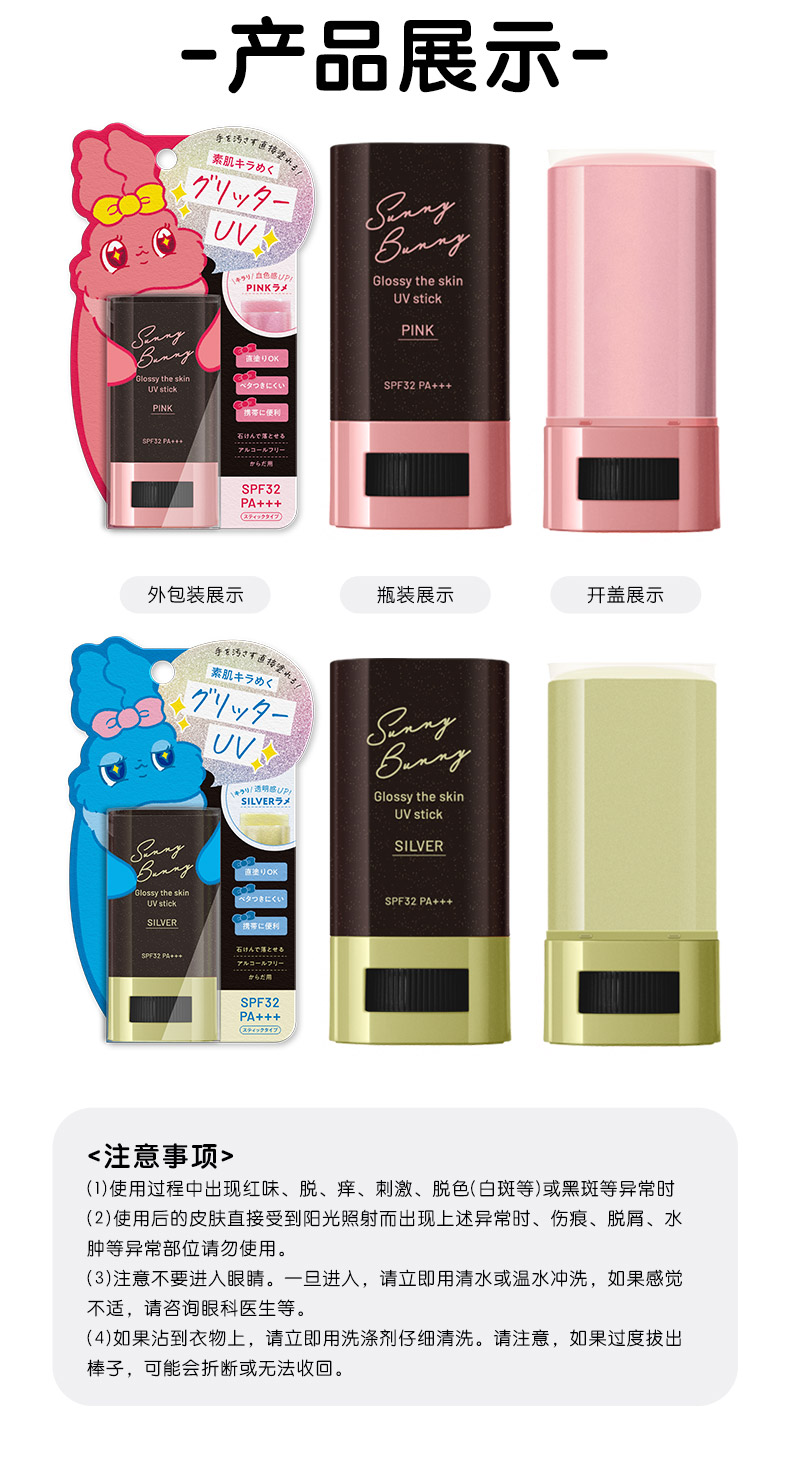 ISDG日本原装进口 便携新颖 闪亮肌肤珠光防晒棒 冷感/银色/粉色
