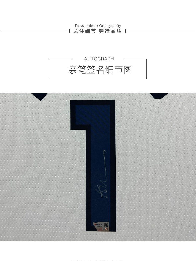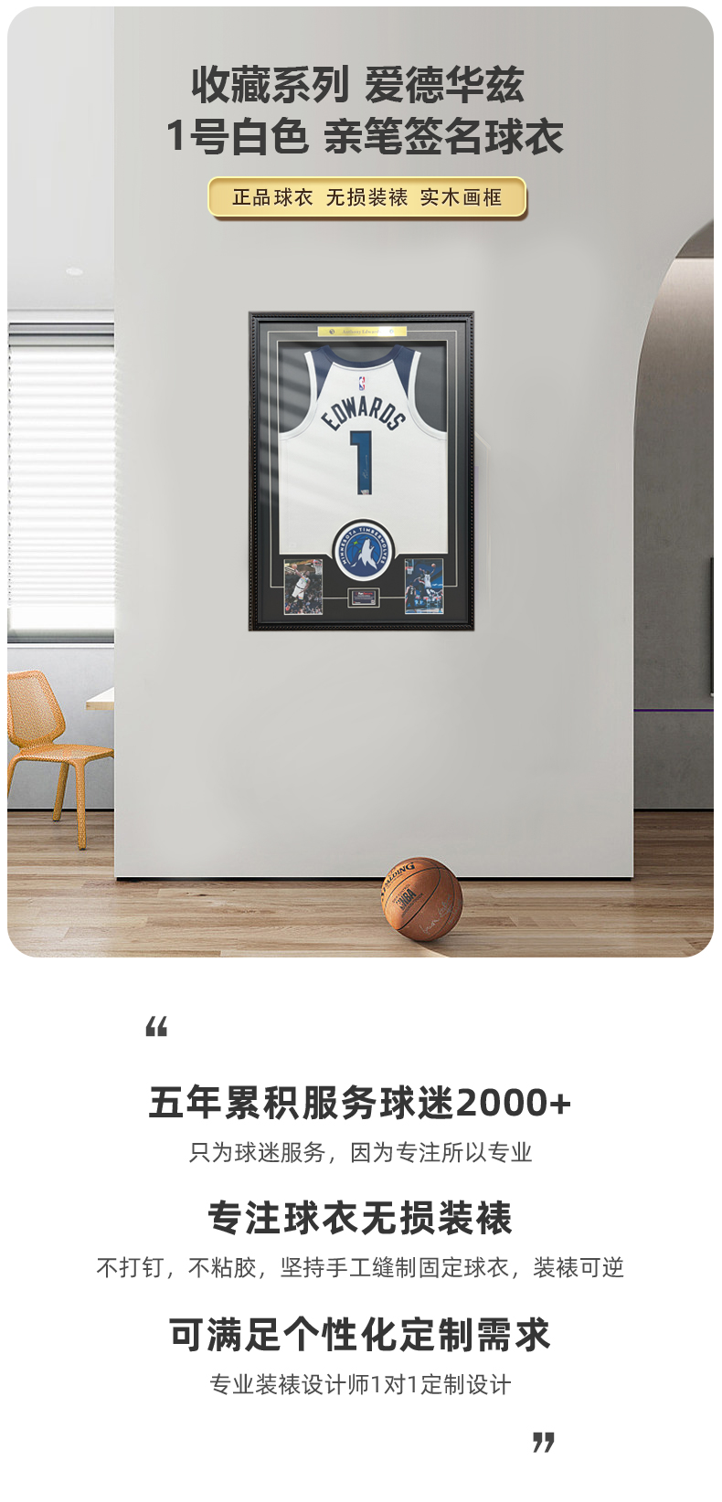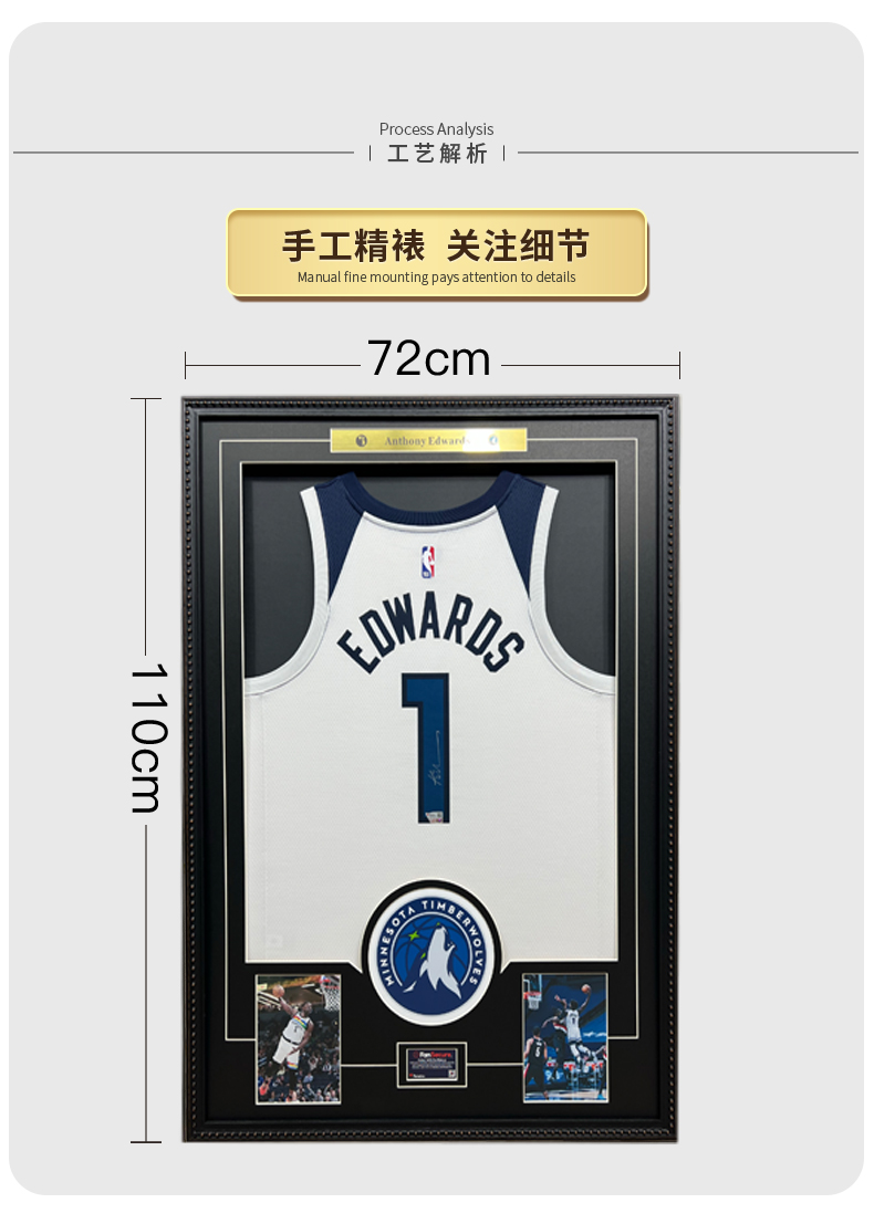 收藏系列 爱德华兹 1号白色 亲笔签名球衣