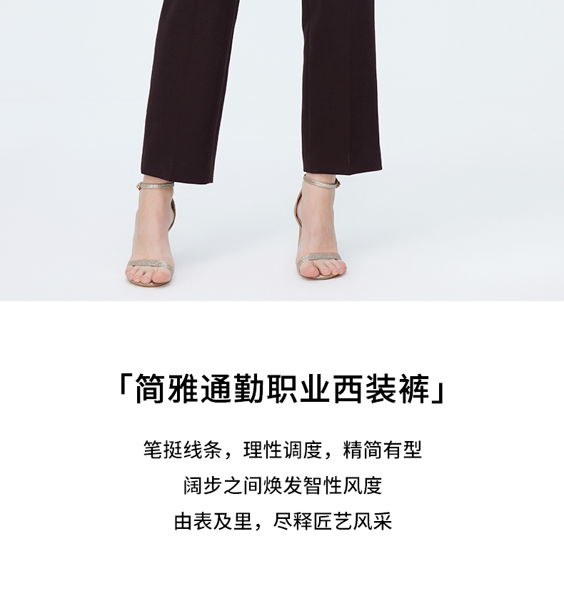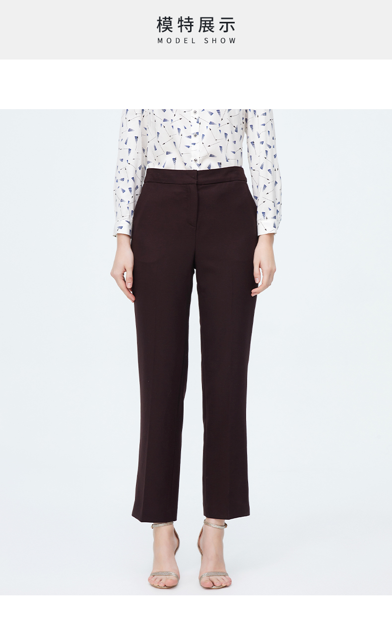 皮尔卡丹女装新款美拉德风格干练直筒西裤P4101T3982K1