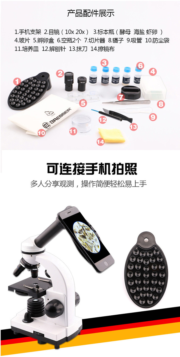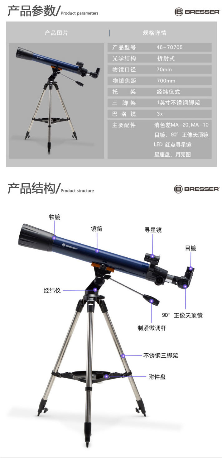 本系列显微镜和天文望远镜均为 德国Bresser旗下产品。