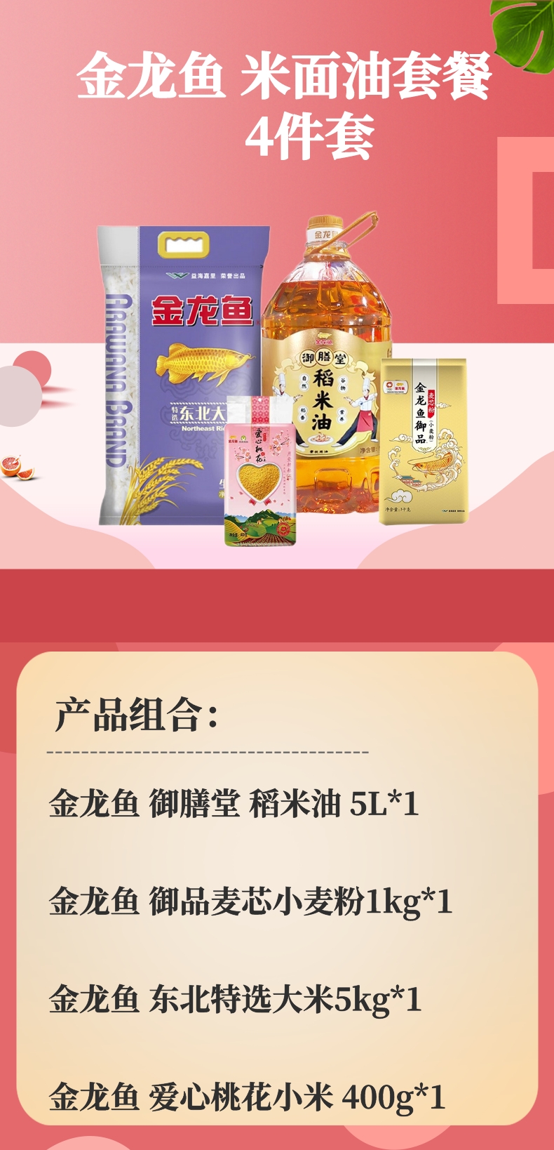 金龙鱼 粮油面礼包 礼品福利 金龙鱼米油面粉3件套礼袋2400g 金龙鱼米面粮油调味礼盒3700g