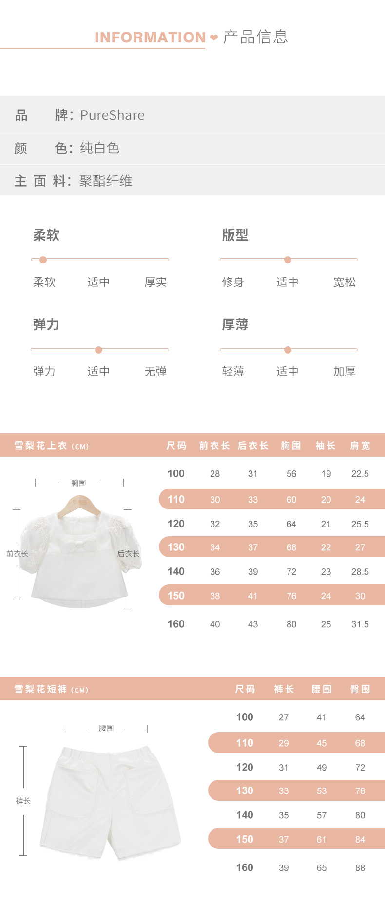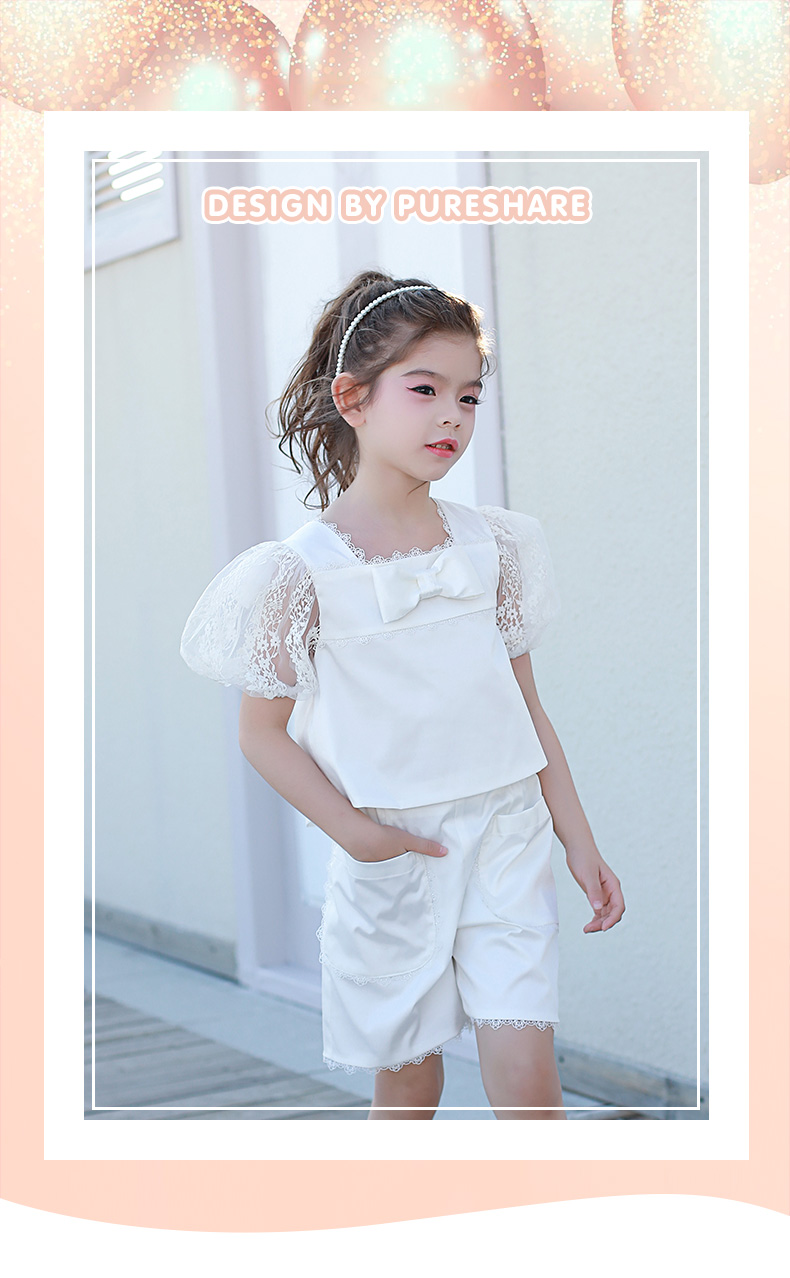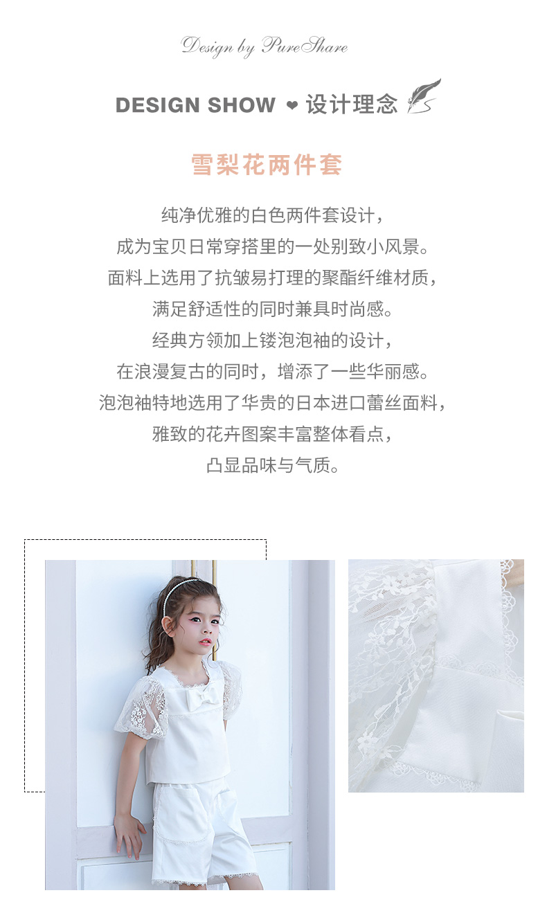pureshare女童T恤夏新款宝宝套装气质可爱短袖上衣短裤两件套-雪梨花两件套