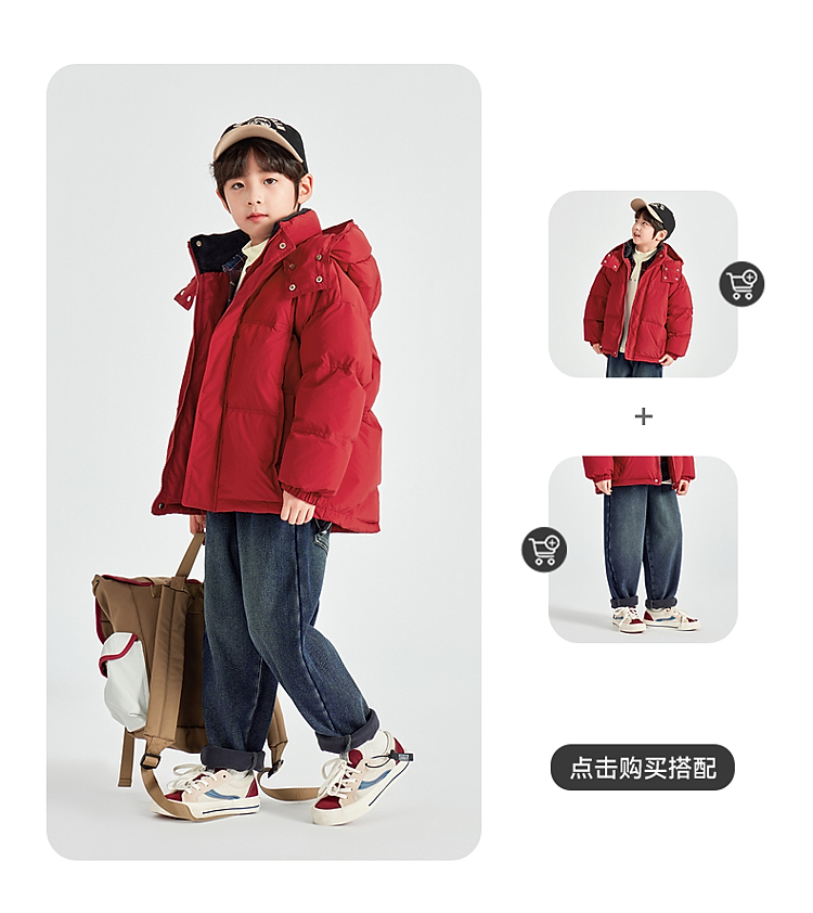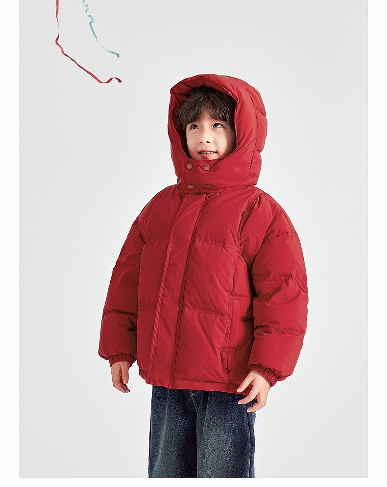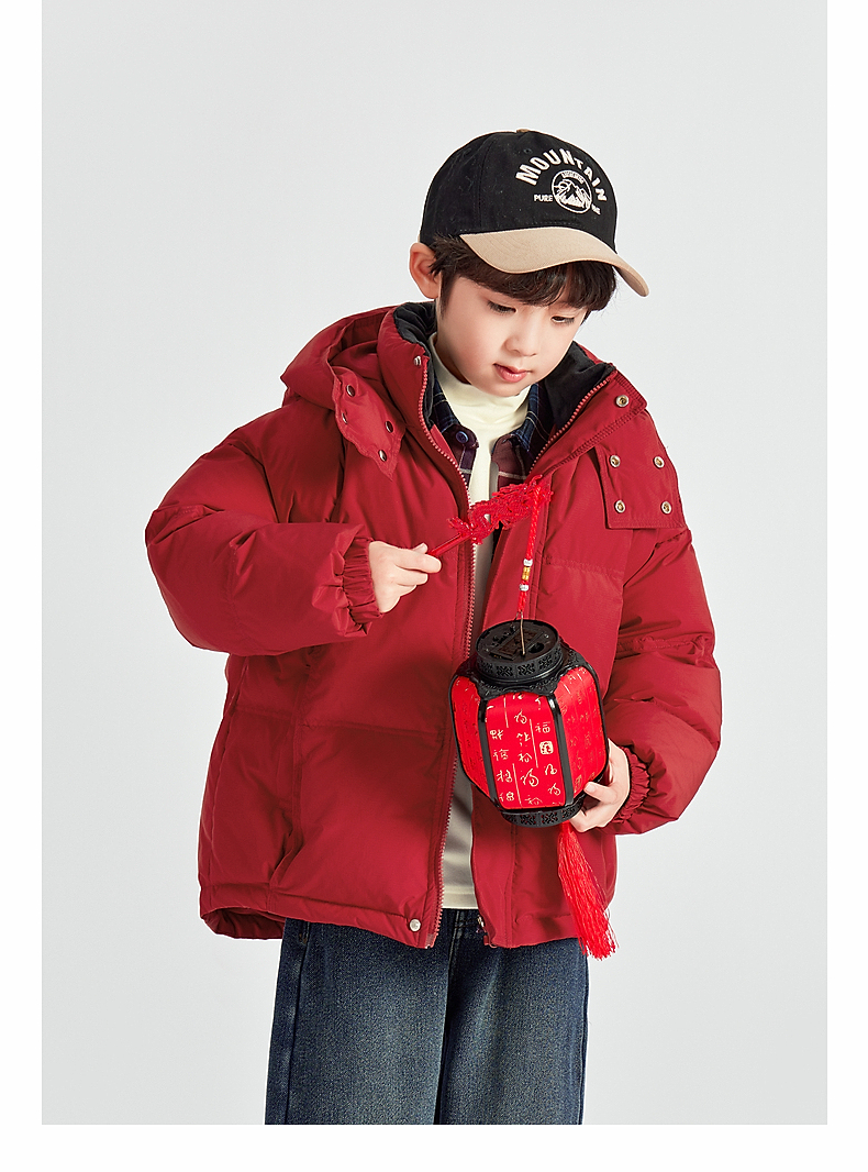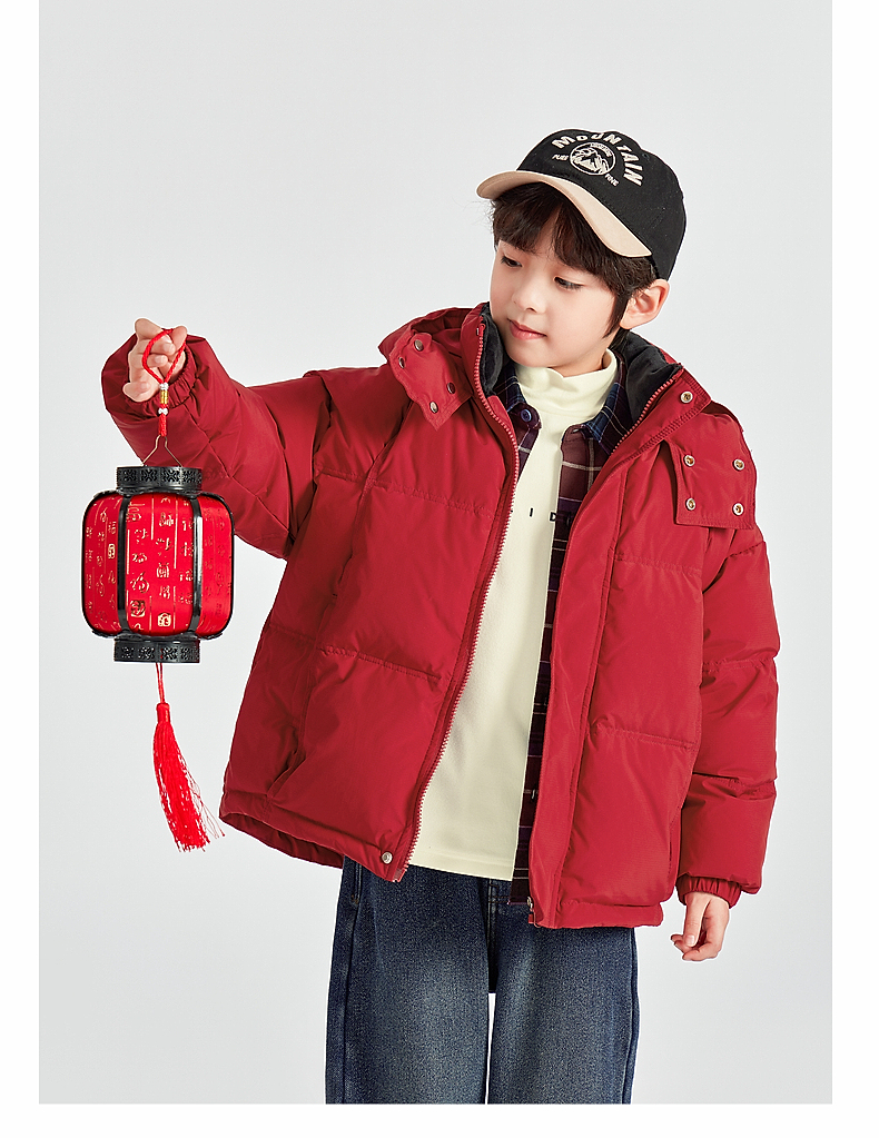 【团购价279.9】多多家男童红色羽绒服三防2024新款秋冬款儿童加厚面包服冬装外套9704