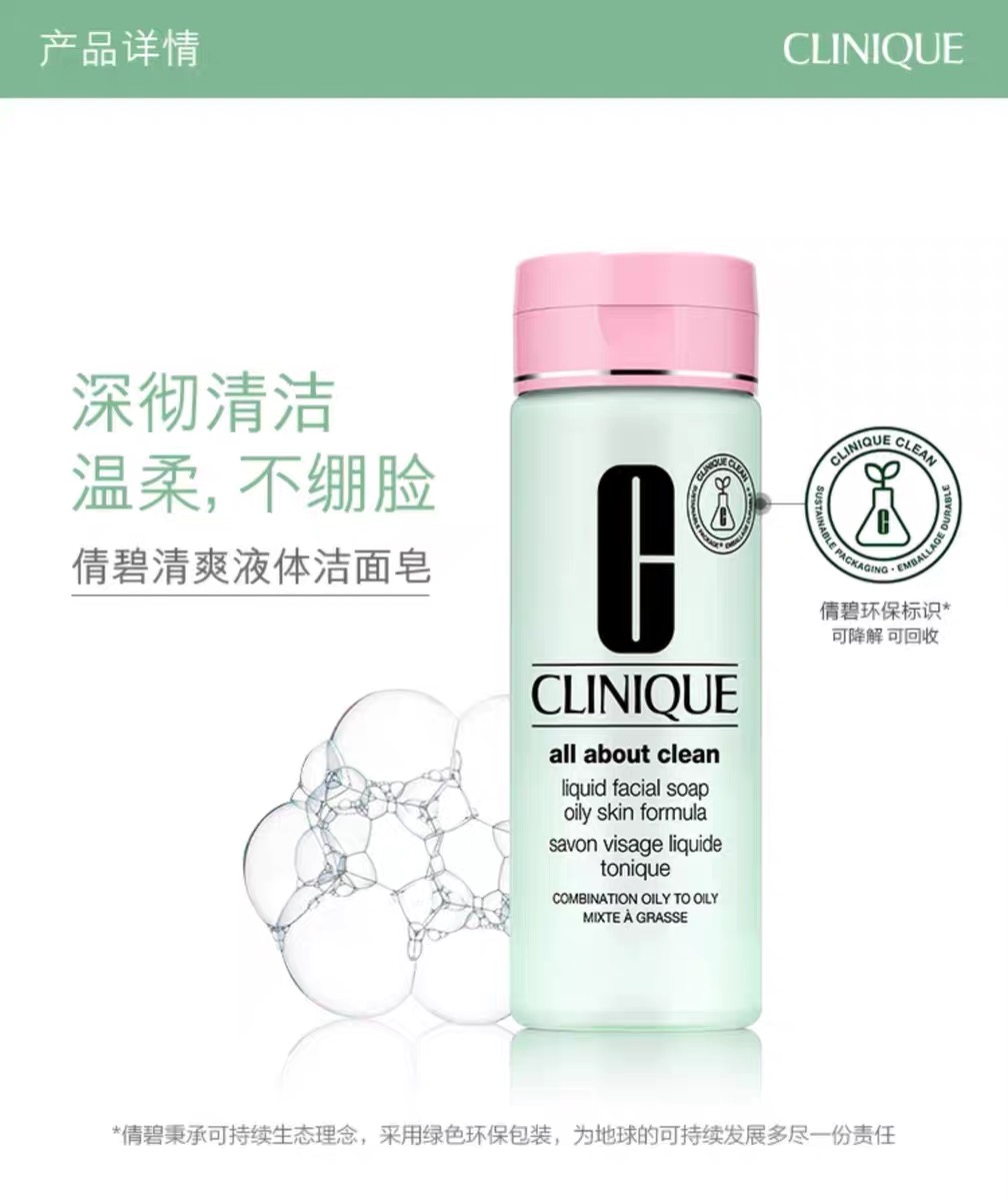 倩碧 清爽型液体洁面皂200ml控油洗面奶