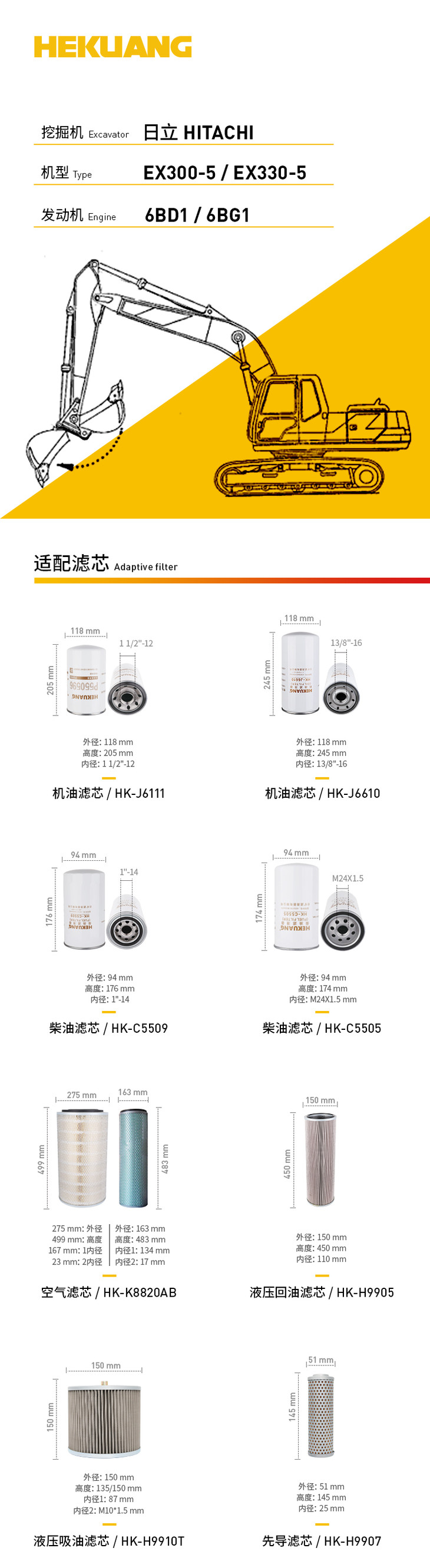日立EX300-5 EX330-5(6BD1/6BG1)挖掘机滤芯 机油柴油空气滤芯 液压油先导滤芯
