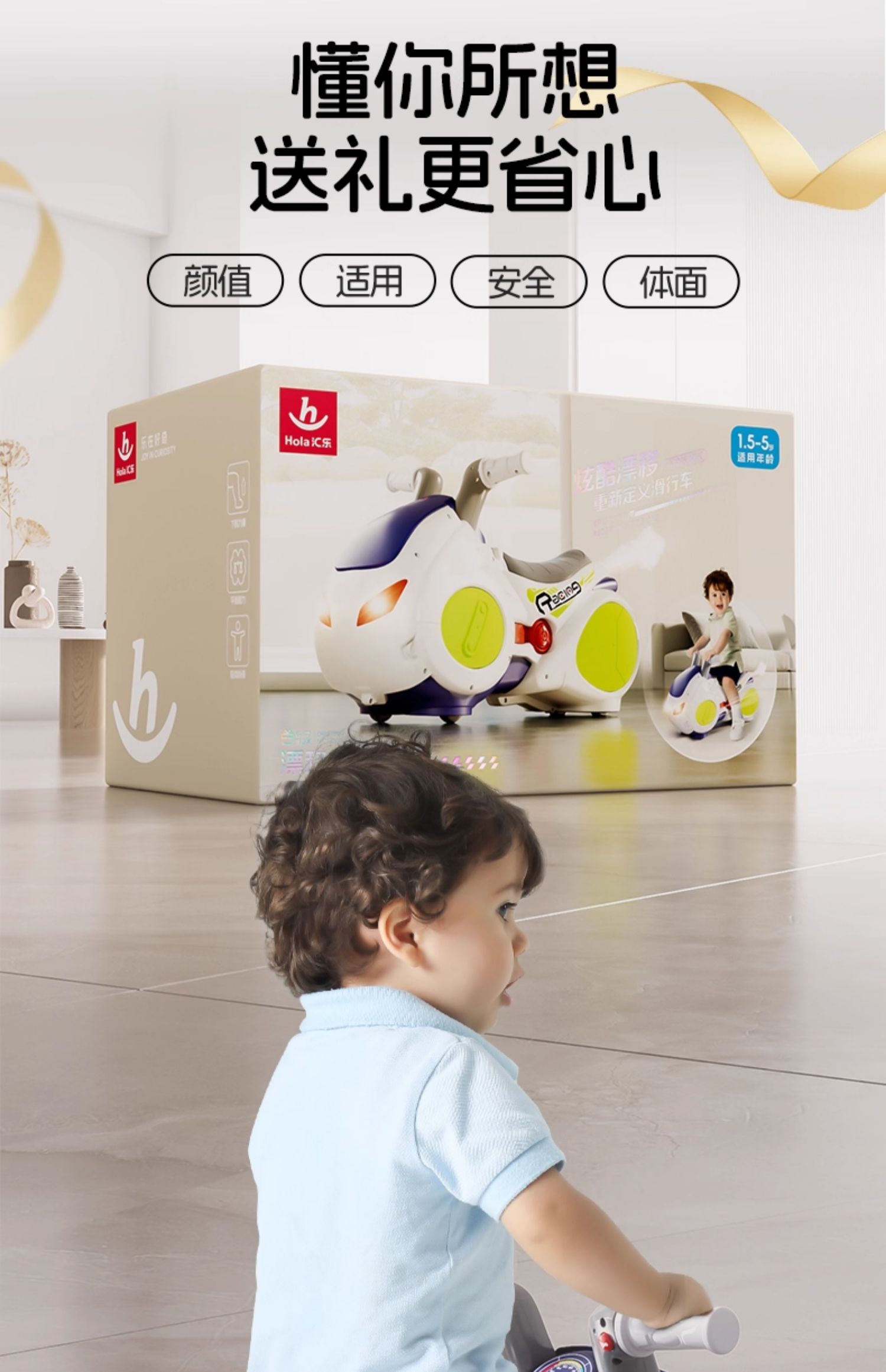 汇乐漂移摩托车花生车1-3岁儿童玩具滑步溜溜车防侧翻宝宝周岁礼