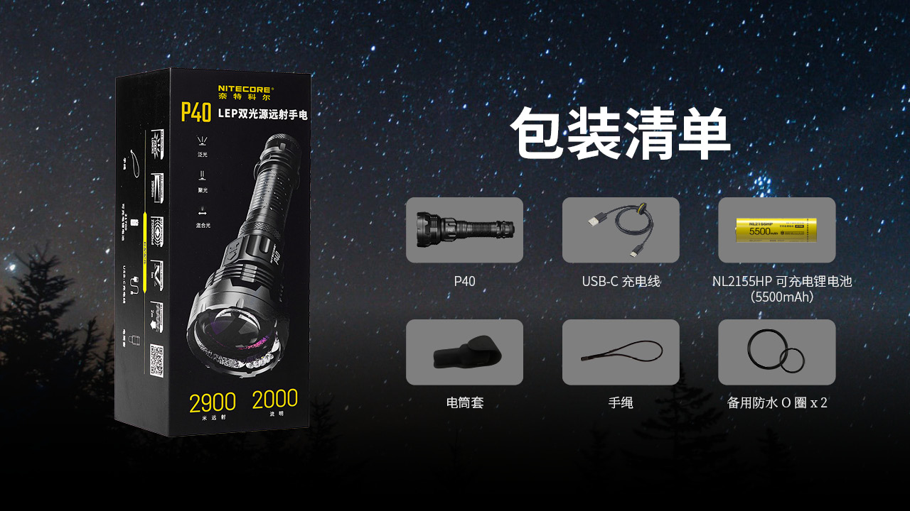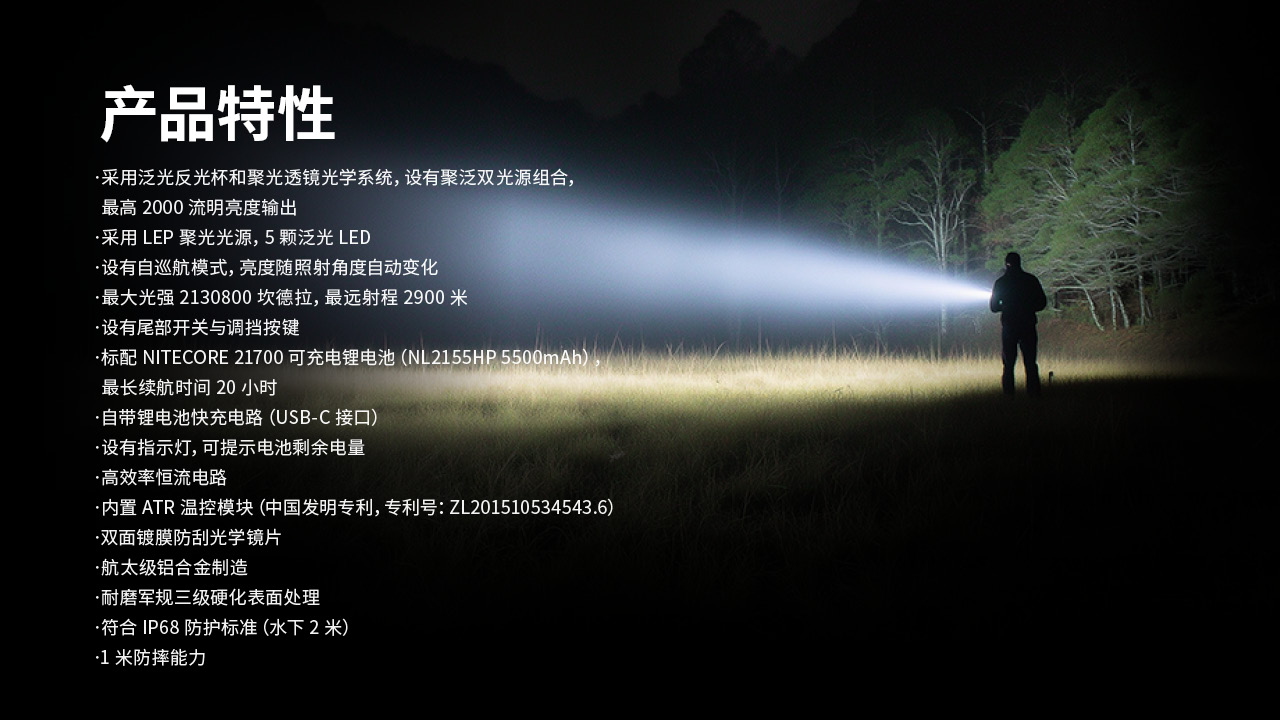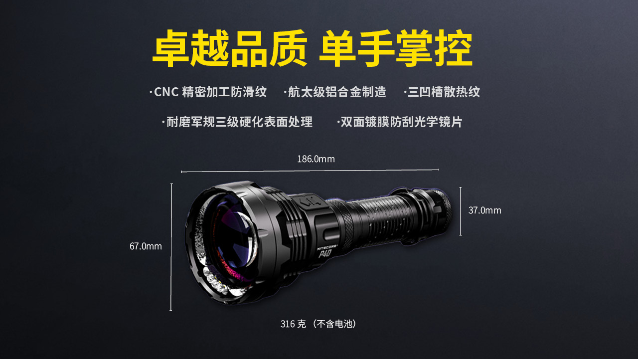 NITECORE奈特科尔P40白激光远射战术搜索手电2000流明2900米2.9公里