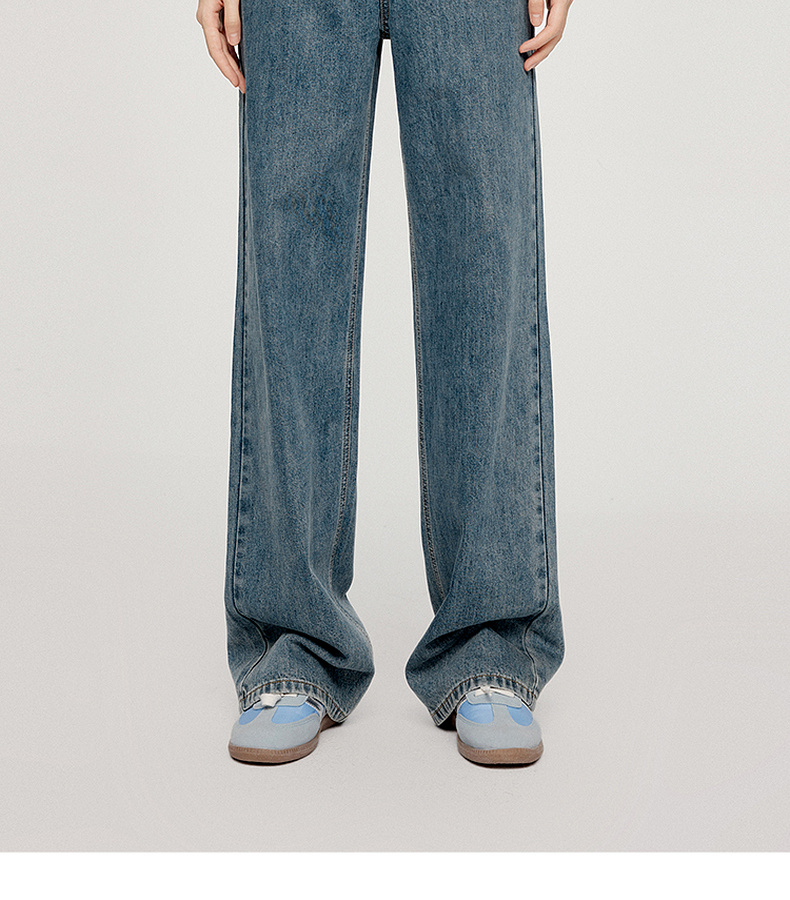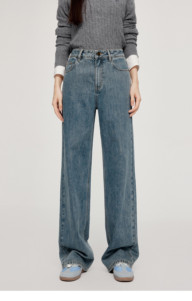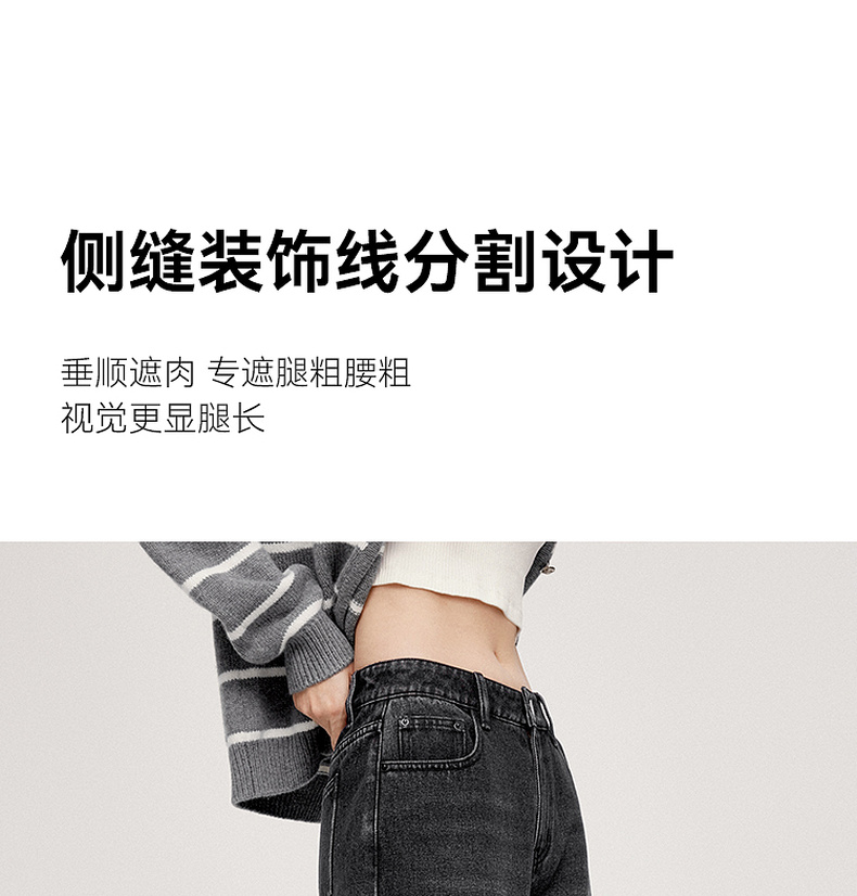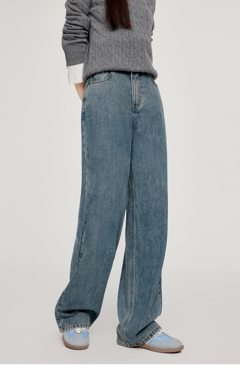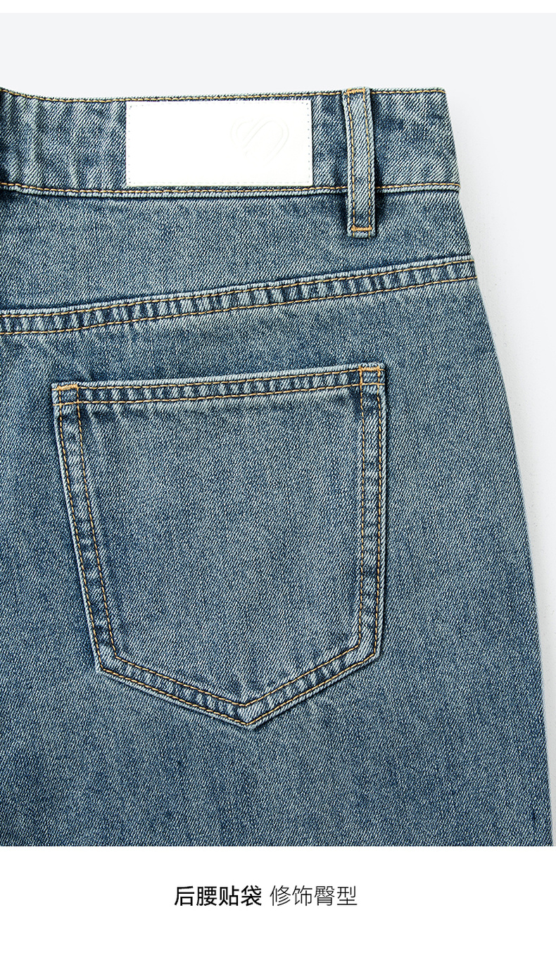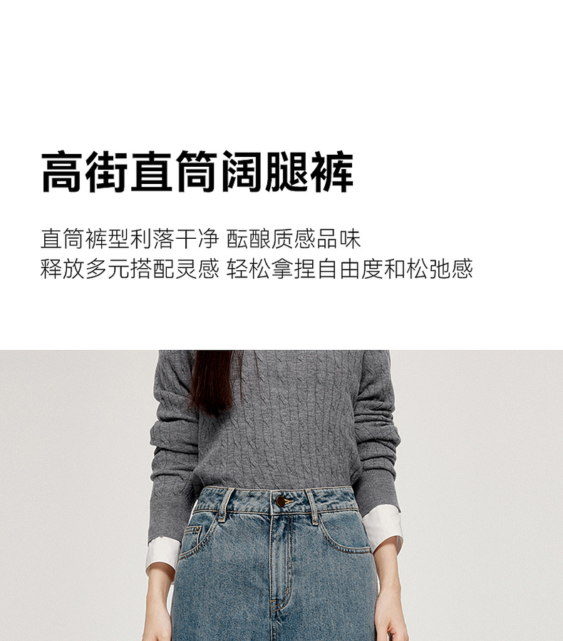 【严选】诗凡黎高街直筒阔腿牛仔裤2024秋新款美式复古小个子高腰显瘦长裤SF8150751