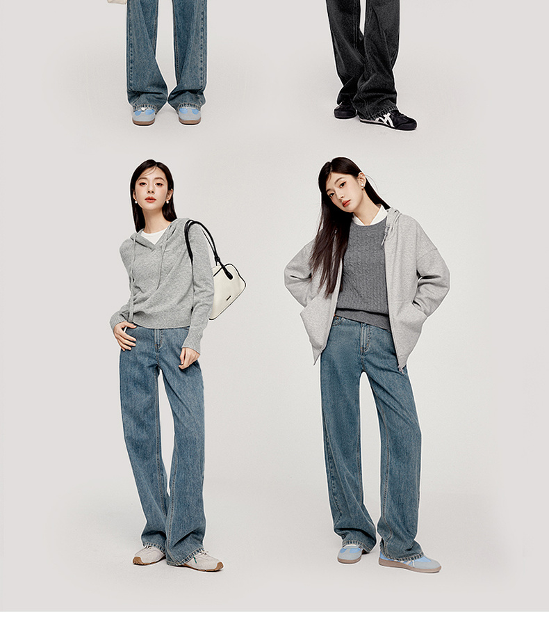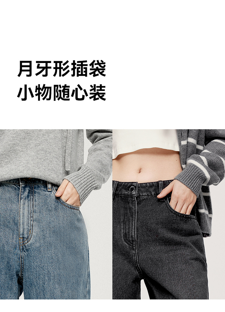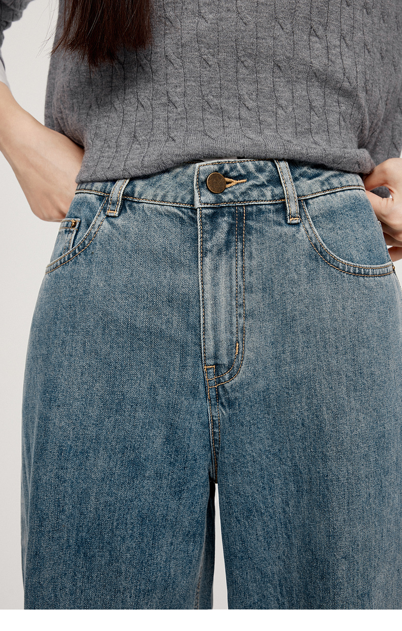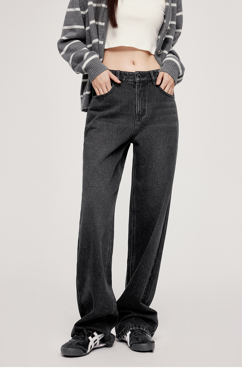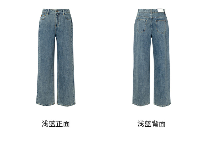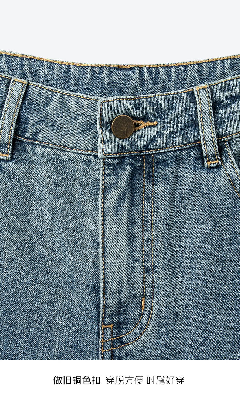 【严选】诗凡黎高街直筒阔腿牛仔裤2024秋新款美式复古小个子高腰显瘦长裤SF8150751