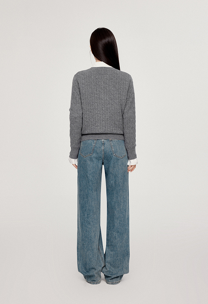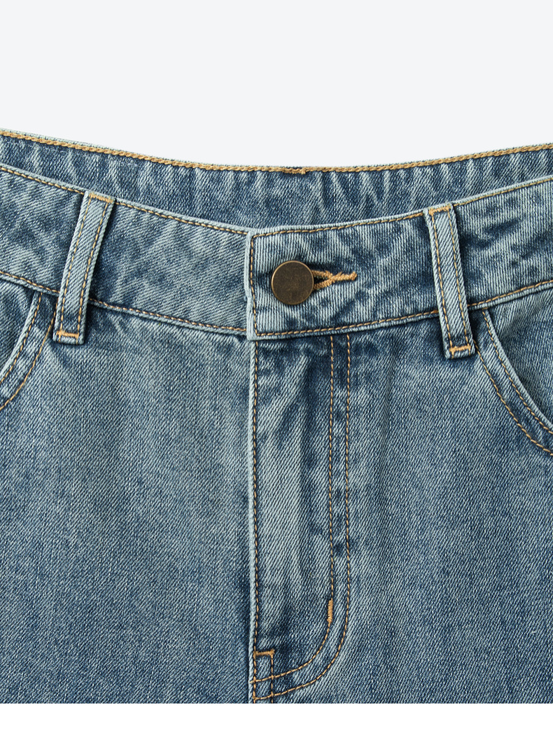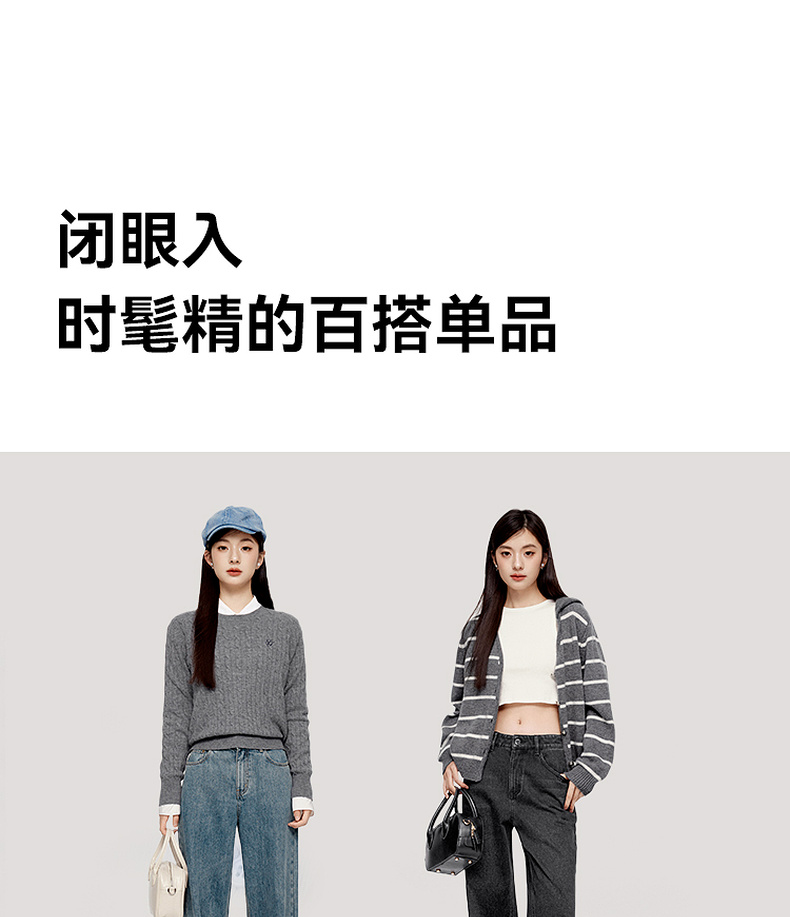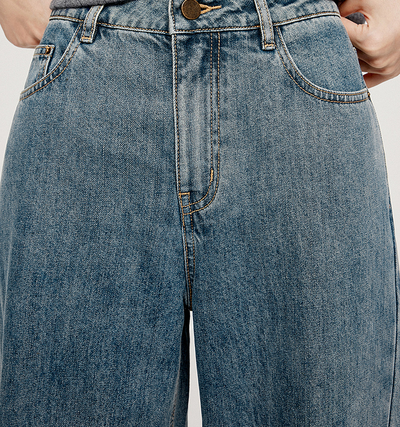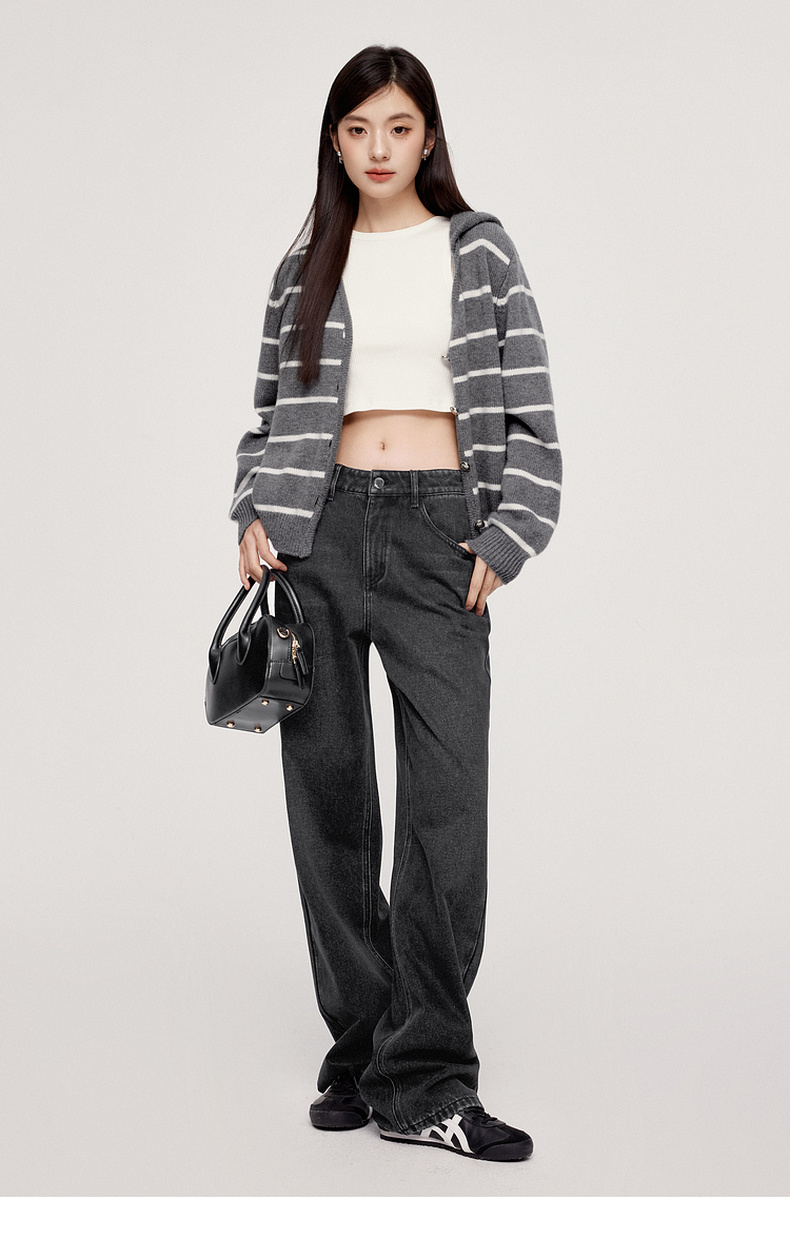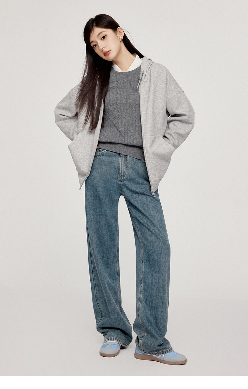 【严选】诗凡黎高街直筒阔腿牛仔裤2024秋新款美式复古小个子高腰显瘦长裤SF8150751