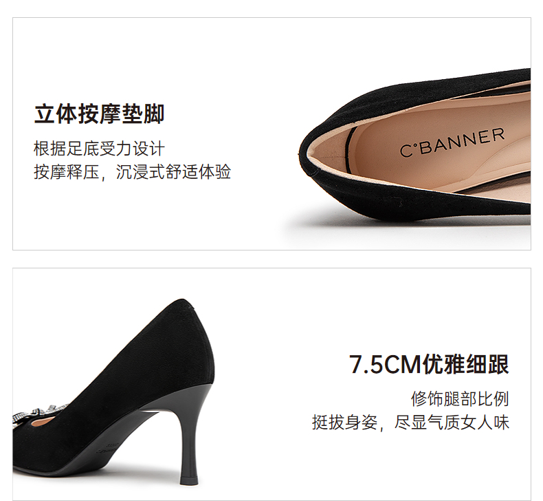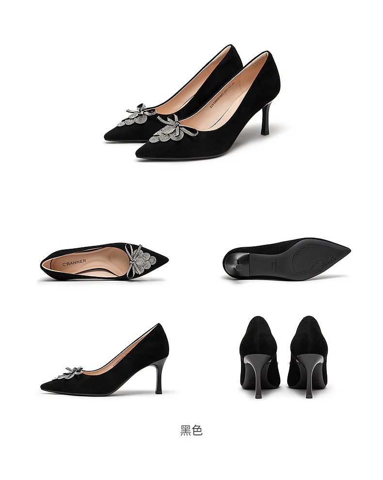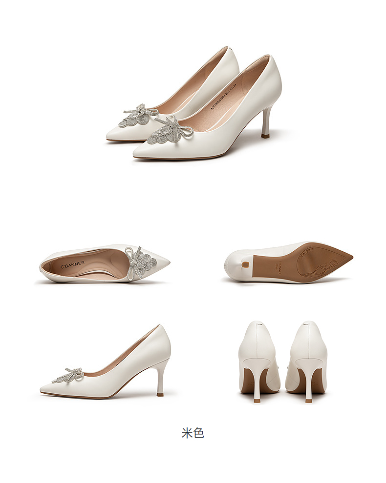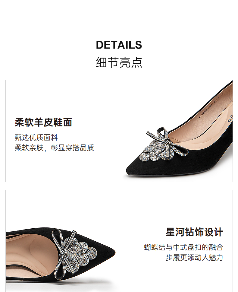 千百度蝴蝶结钻饰浅口单鞋女宴会优雅约会细超高跟鞋A25196661
