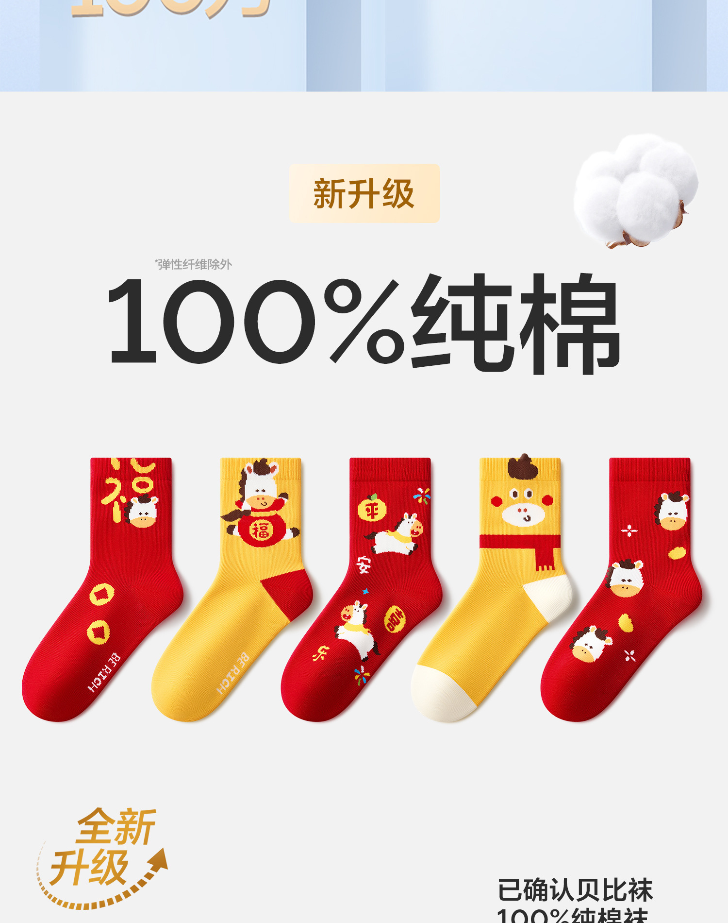 【云优选】贝比马年儿童袜子礼盒装男童女童新年鸿运袜子 宝宝秋透气吸汗中筒棉袜子