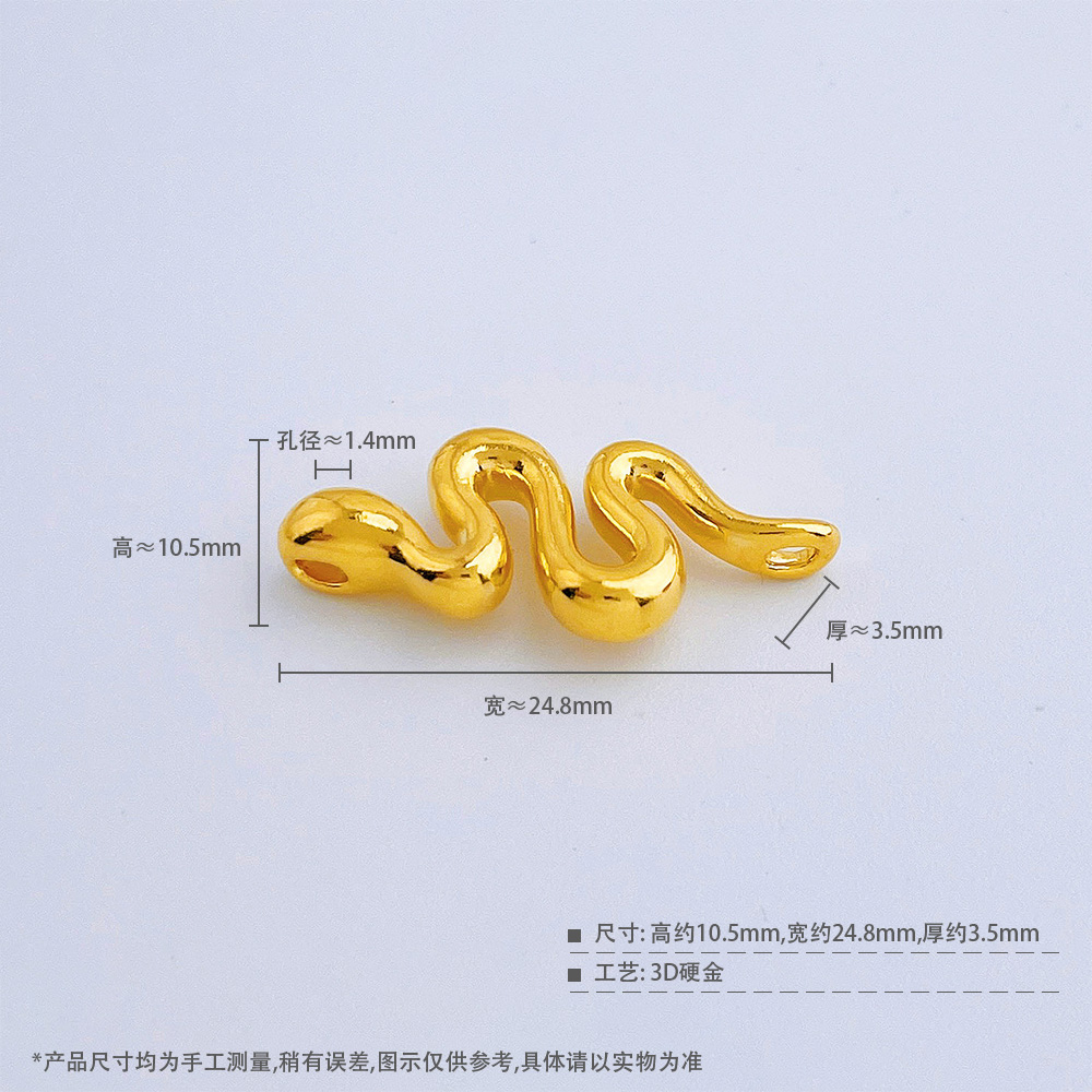 【限时7.5折】【定价黄金】足金 #生肖 #蛇年新品 3D硬金空心蛇年生肖灵蛇之舞金蛇献瑞灵蛇Diy配件手串编绳配件(AR3DSC00182)预售产品下单后不退款不退货不换货不补差价