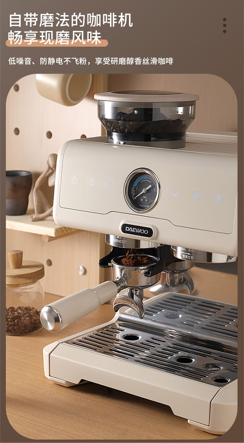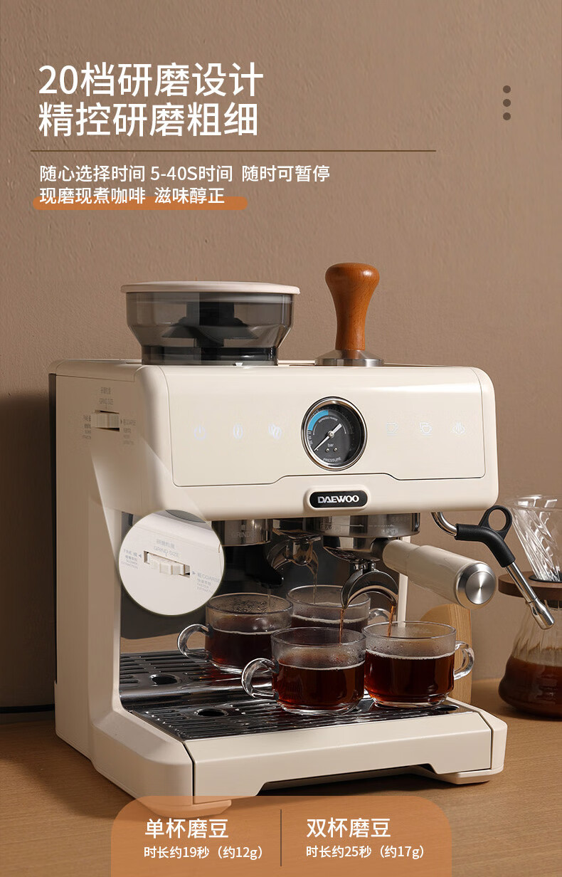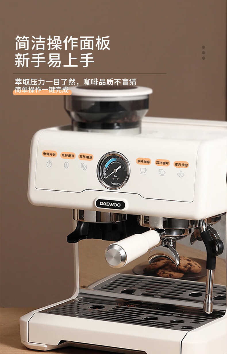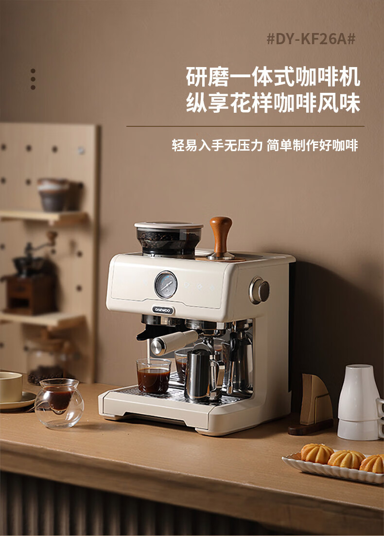 大宇(DAEWOO)咖啡机家用商用研磨一体式小型半自动咖啡机_DY-KF26A
