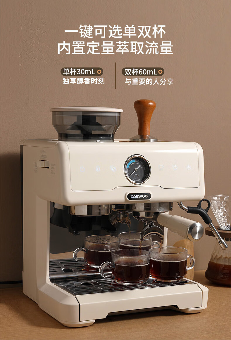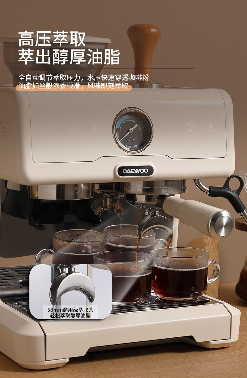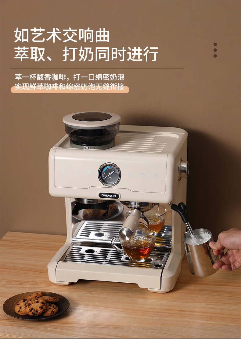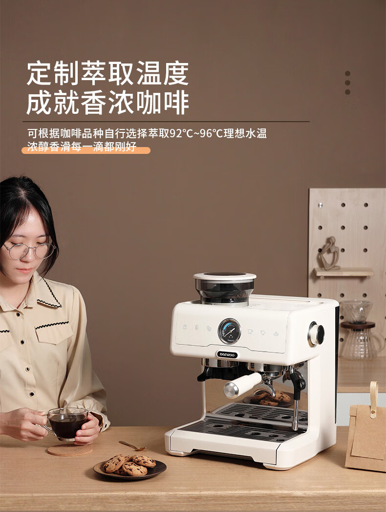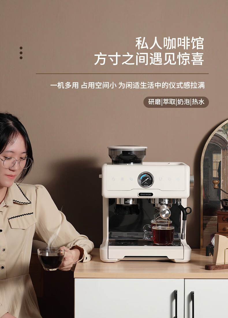 大宇(DAEWOO)咖啡机家用商用研磨一体式小型半自动咖啡机_DY-KF26A