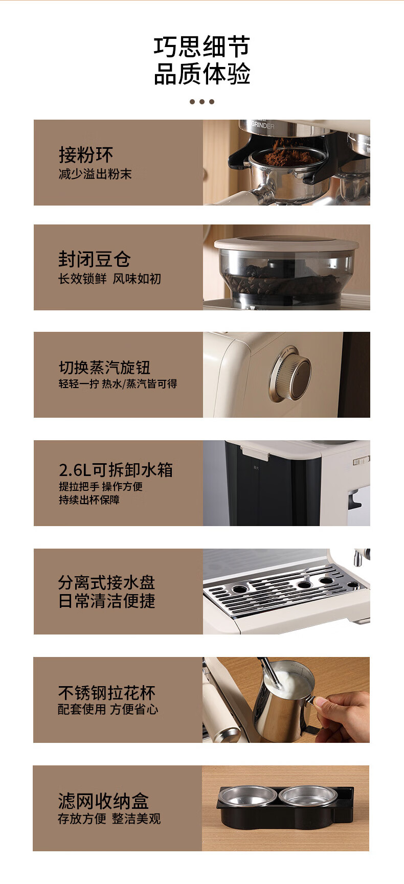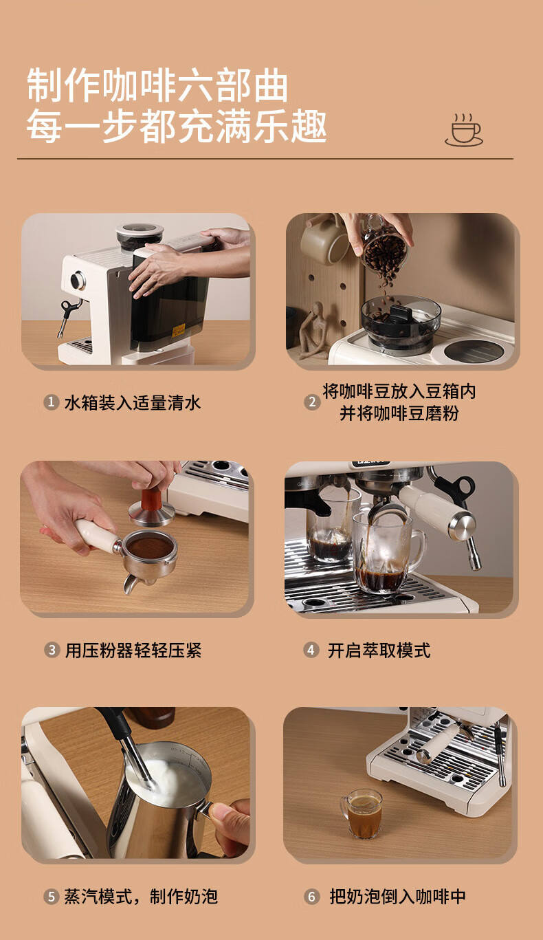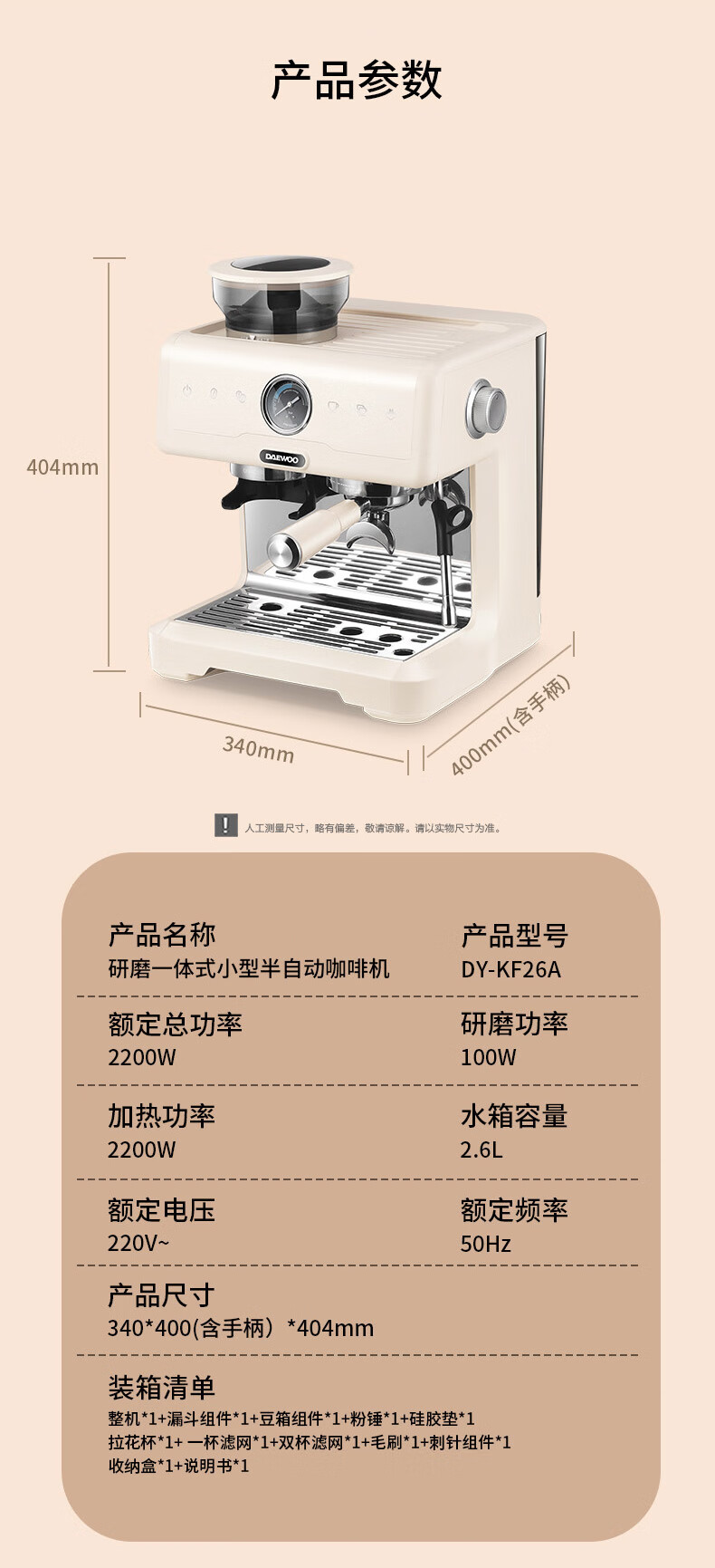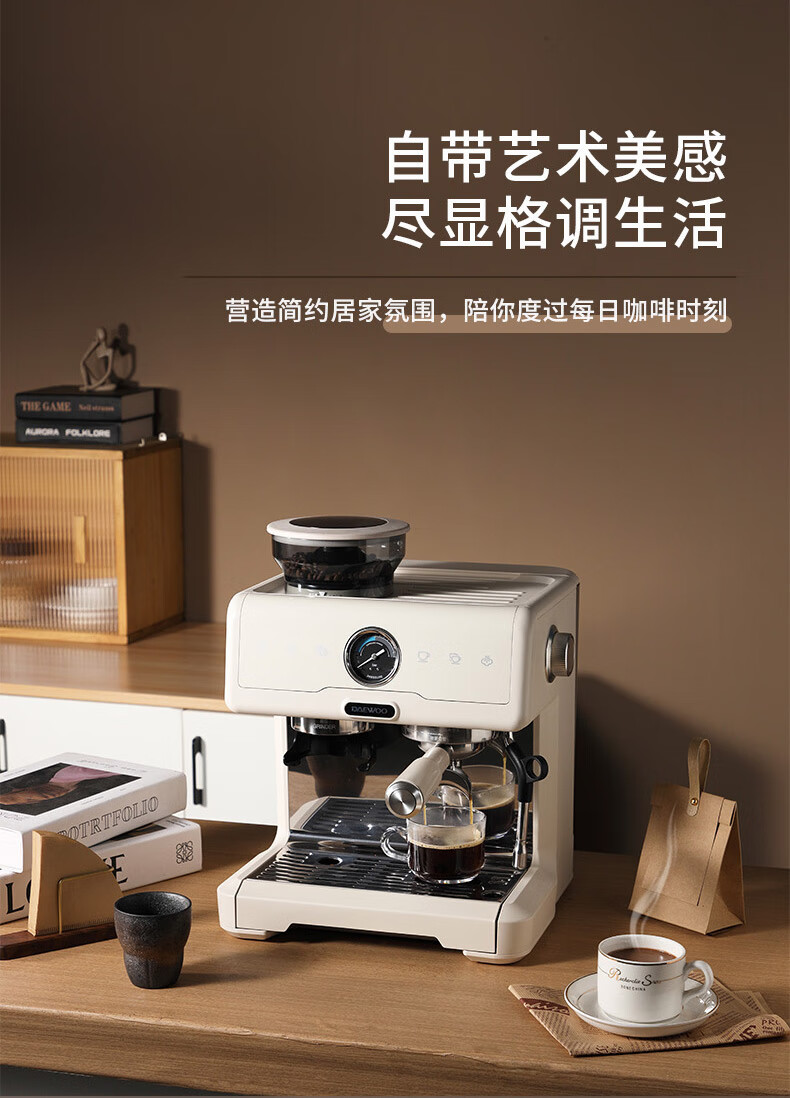 大宇(DAEWOO)咖啡机家用商用研磨一体式小型半自动咖啡机_DY-KF26A