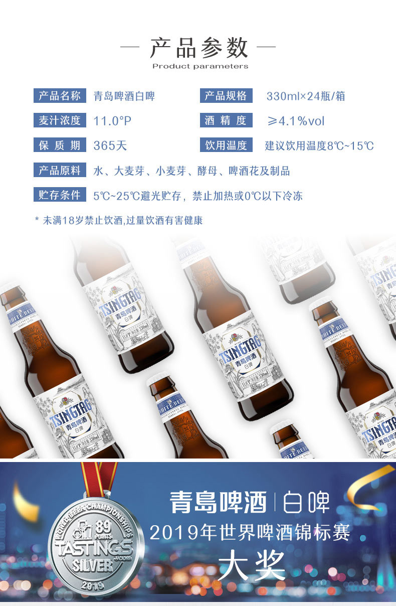 心选丨青岛啤酒白啤11度330ml*24 箱啤(20版)