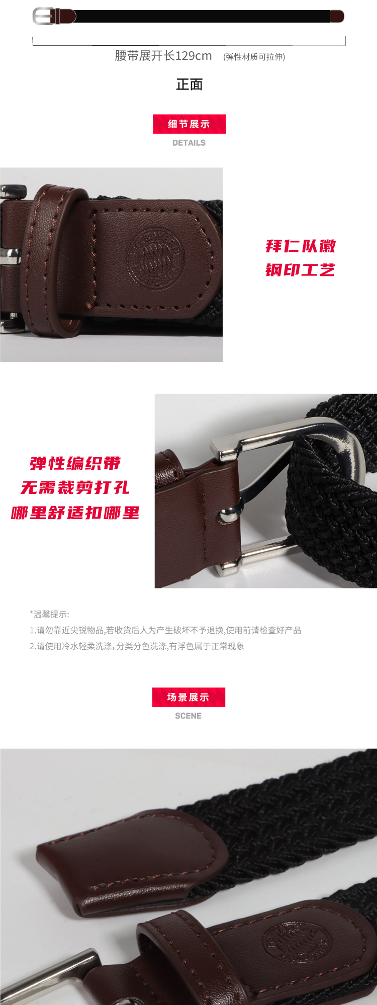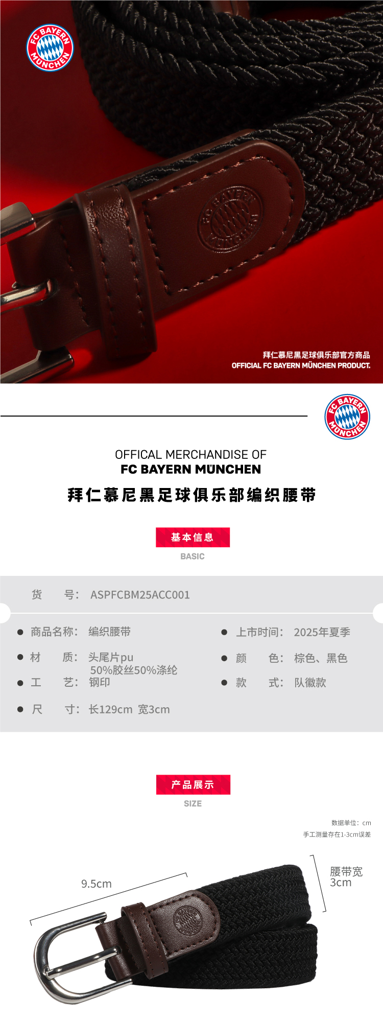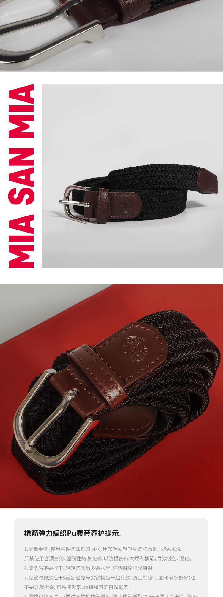 【官方正版】拜仁足球俱乐部丨2025新款编织腰带免打孔男女款松紧腰带
