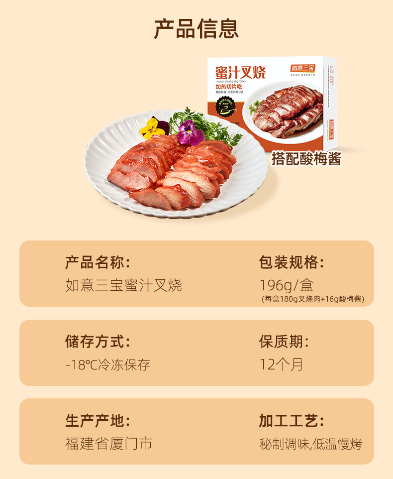 如意三宝 蜜汁叉烧 4盒装 196g*4