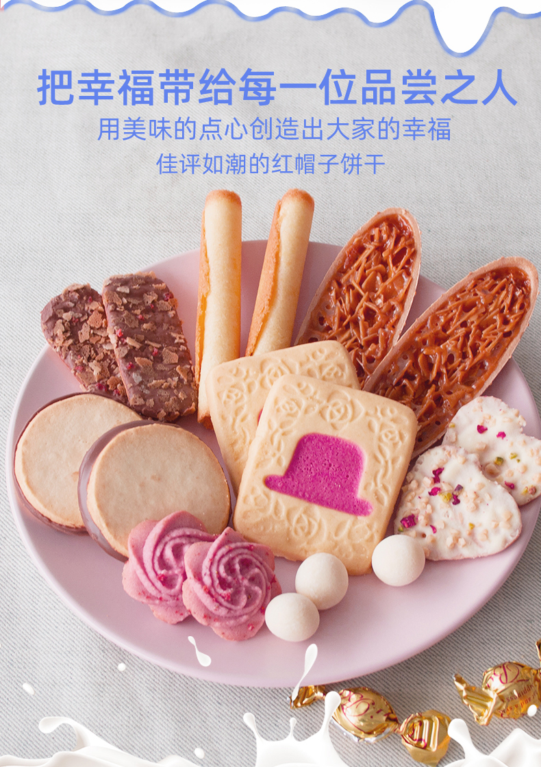日本红帽巧克力什锦饼干藏蓝色礼盒168.6g/058206 内含8种口味20枚饼干口感细腻
