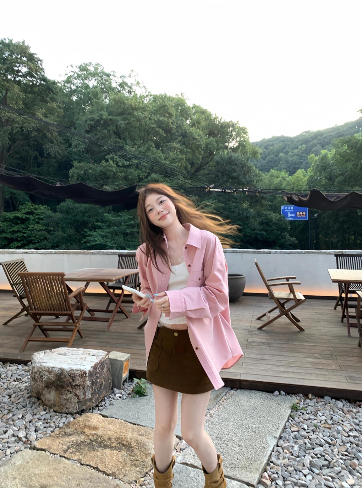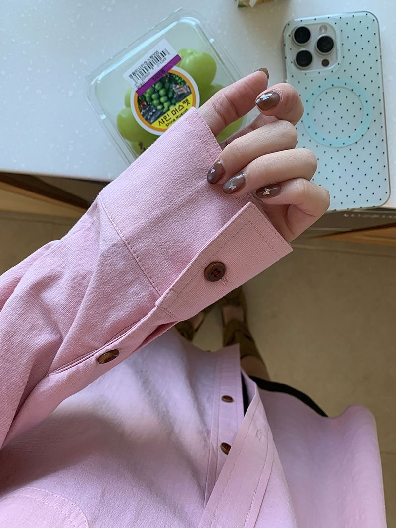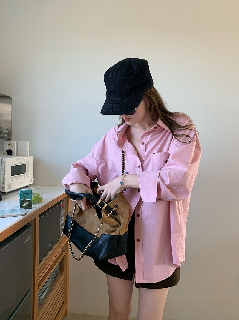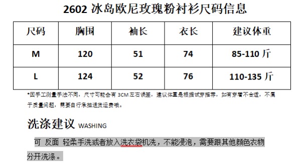 【产品名称】青乔慕染冰岛欧尼玫瑰粉衬衫3004