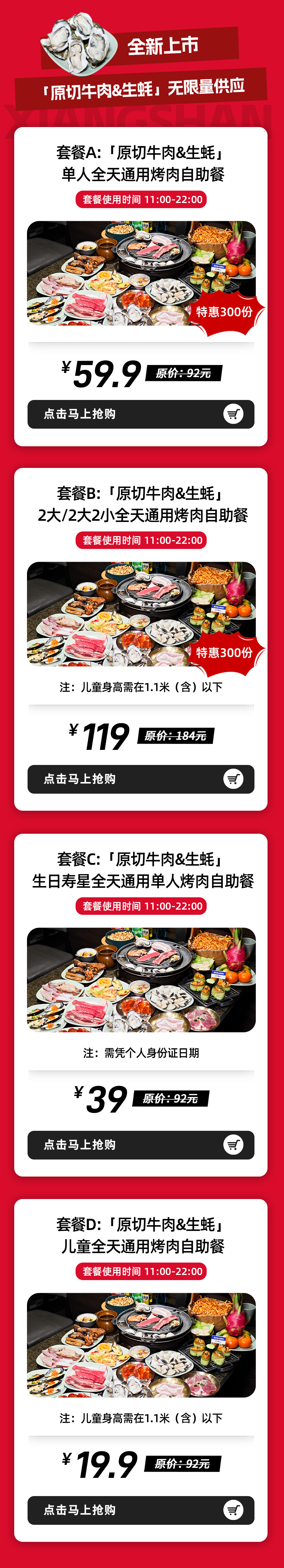 4、每个ID限购10份,同桌需同等价位标准,不同标准不可同桌就餐