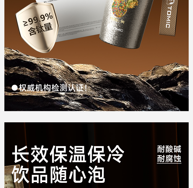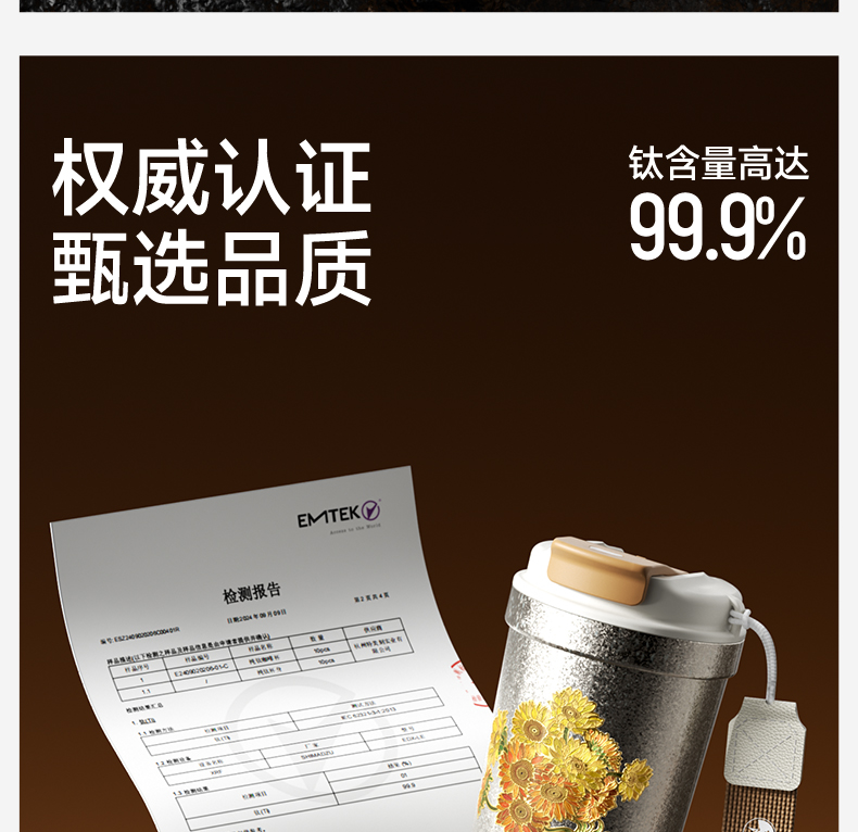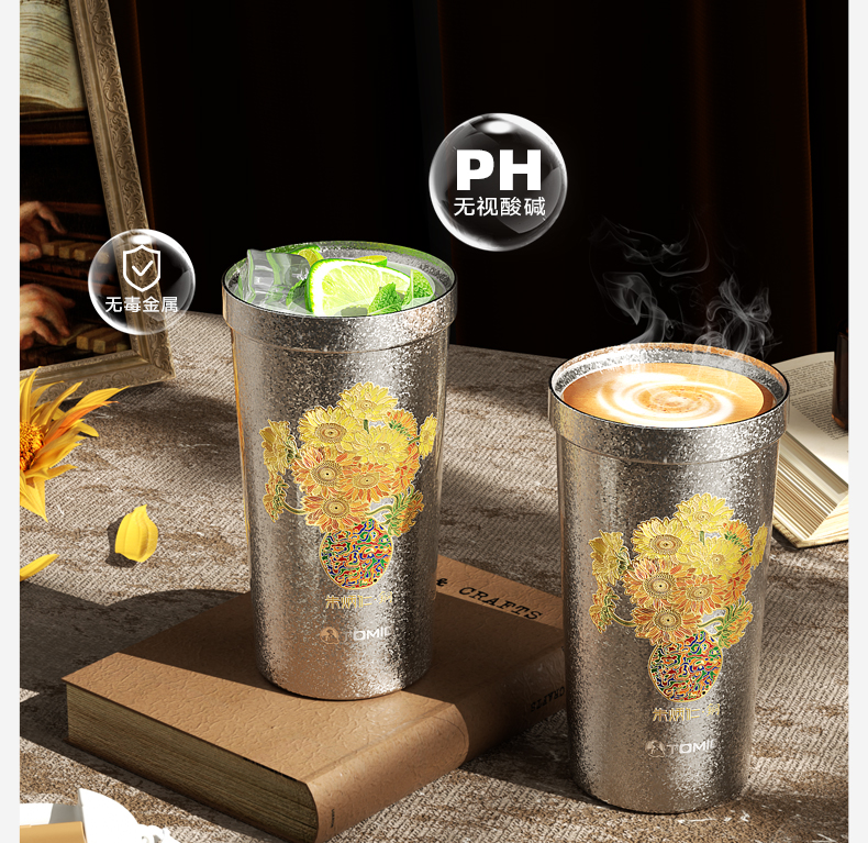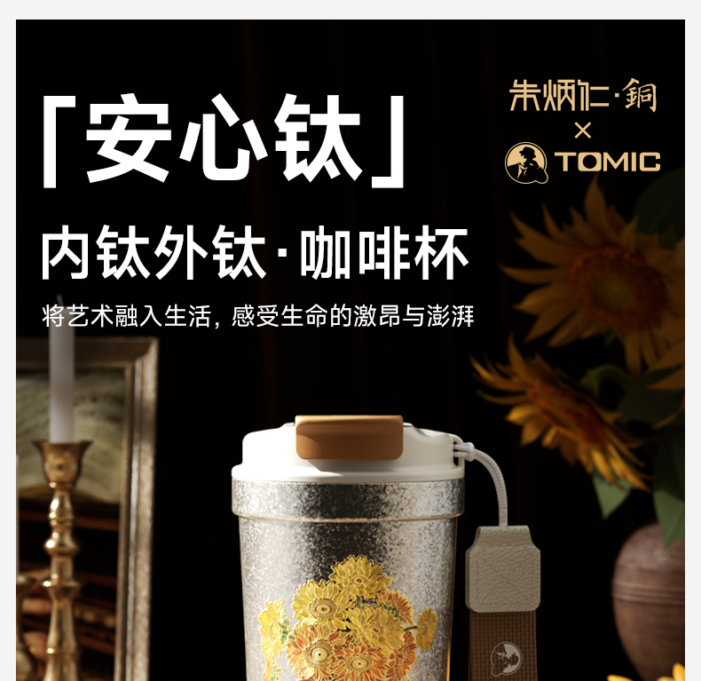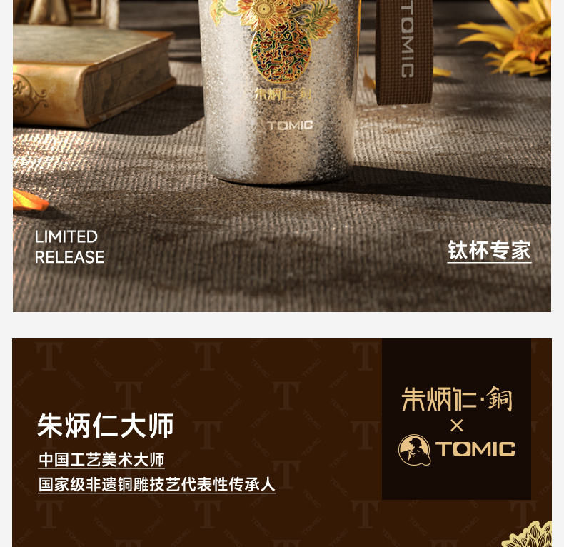 特美刻(TOMIC)纯钛保温杯办公咖啡杯朱炳仁铜联名