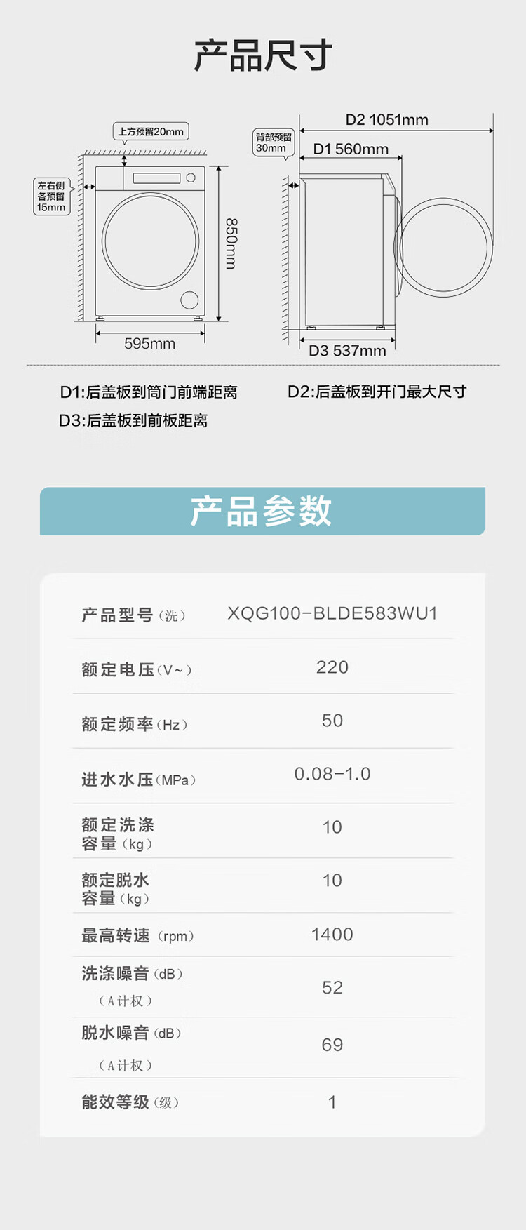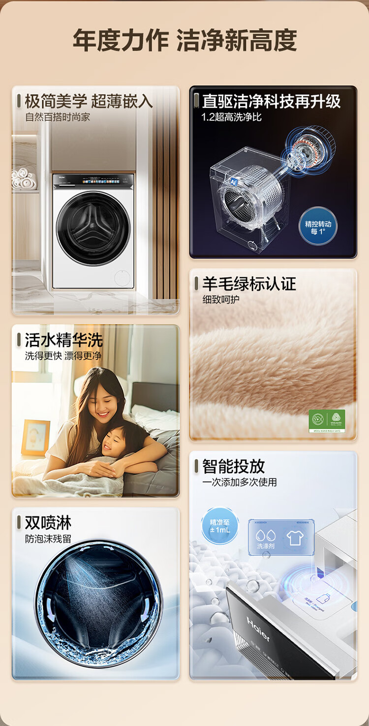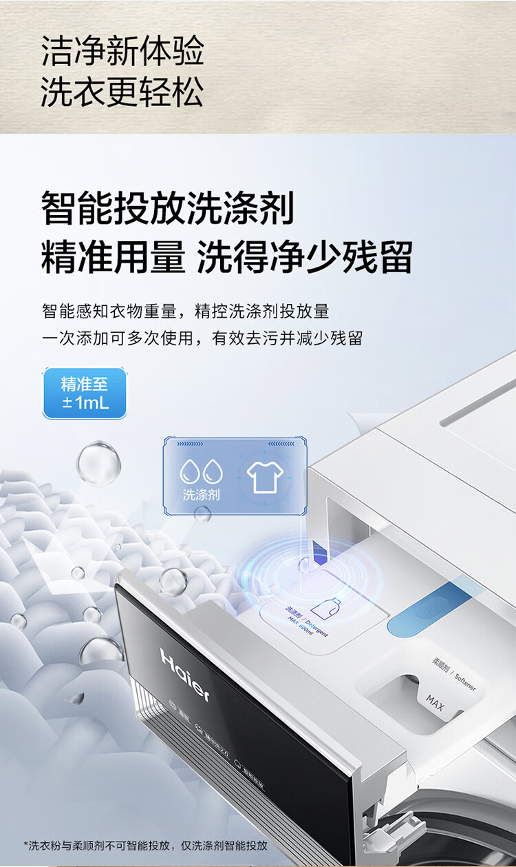 海尔(Haier)云溪3.0 全自动滚筒洗衣机白色 10KG 直驱 XQG100-BLDE583WU1