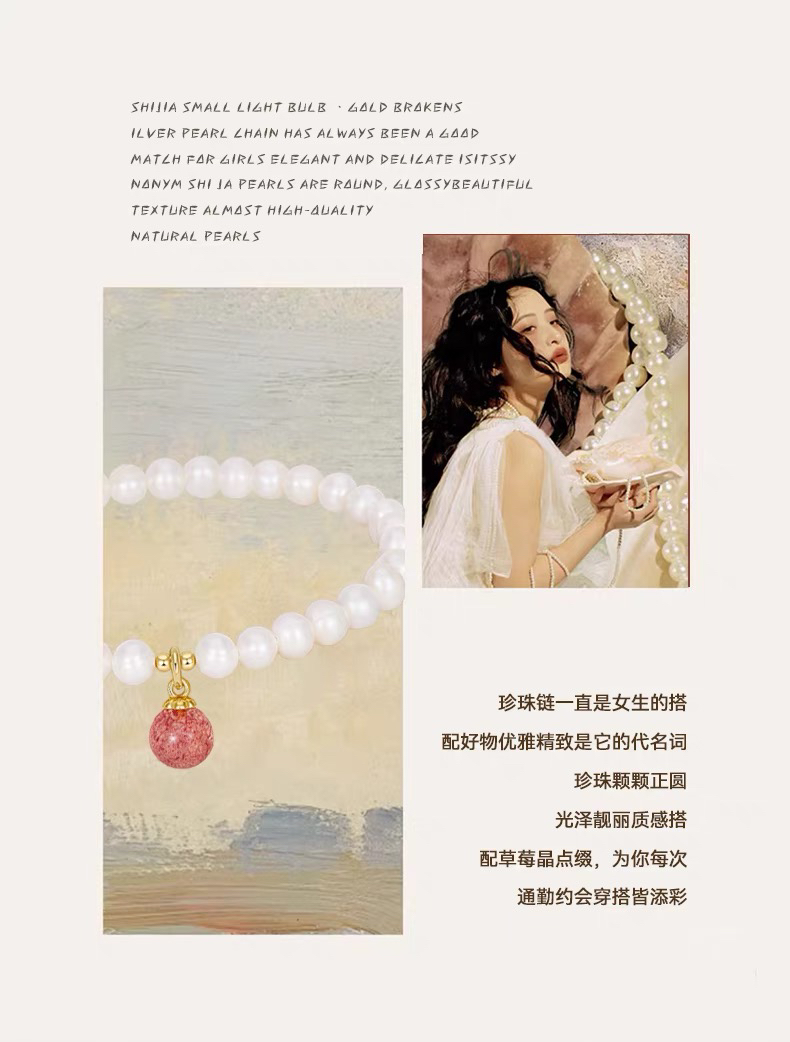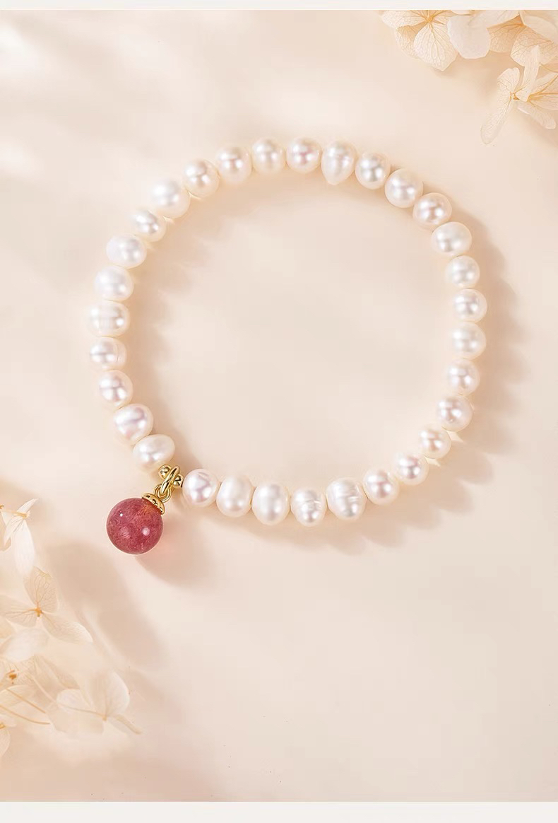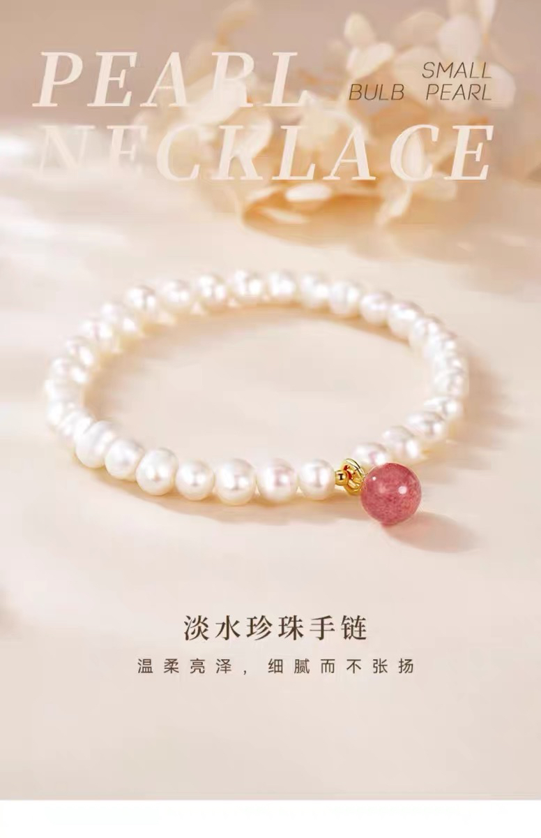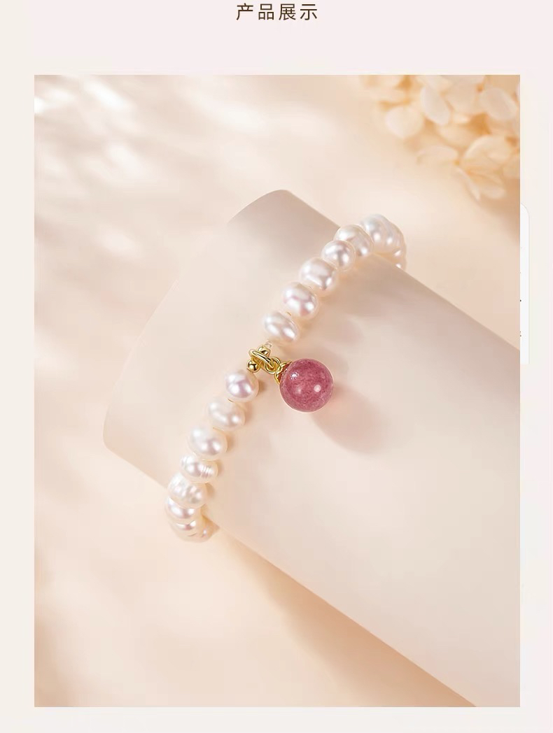淡水珍珠手链天然草莓晶