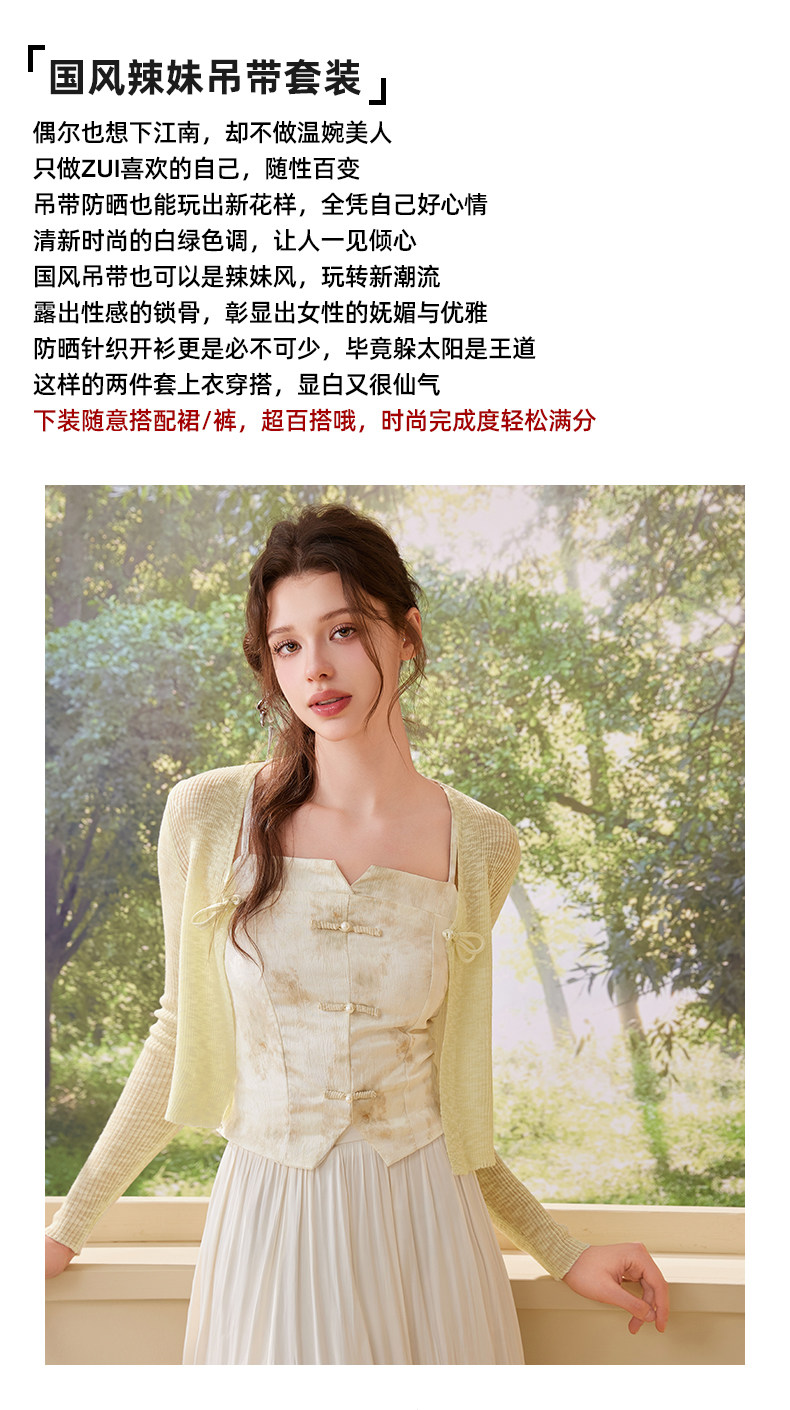 mc2针织开衫+国风辣妹吊带背心两件套女夏季新款时尚温柔气质