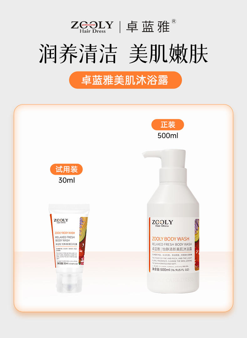 卓蓝雅香氛沐浴露450ml(清香/迷迭香/重逢香)