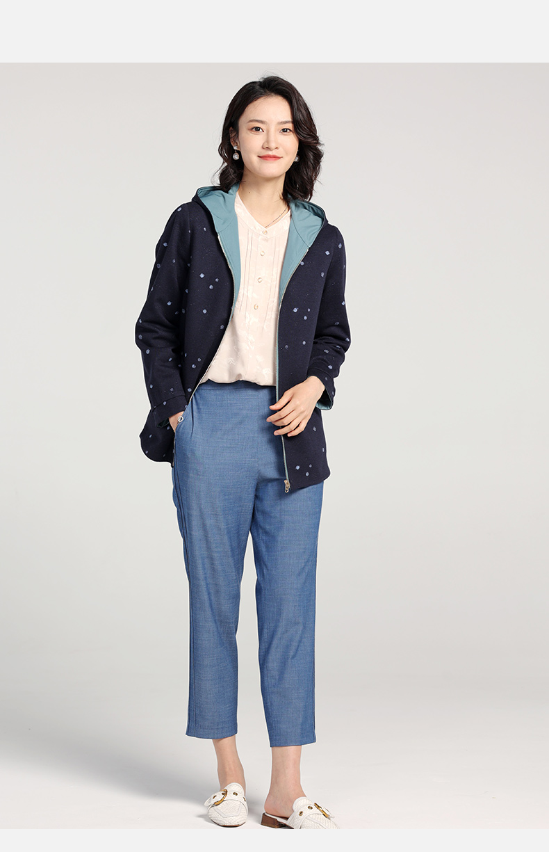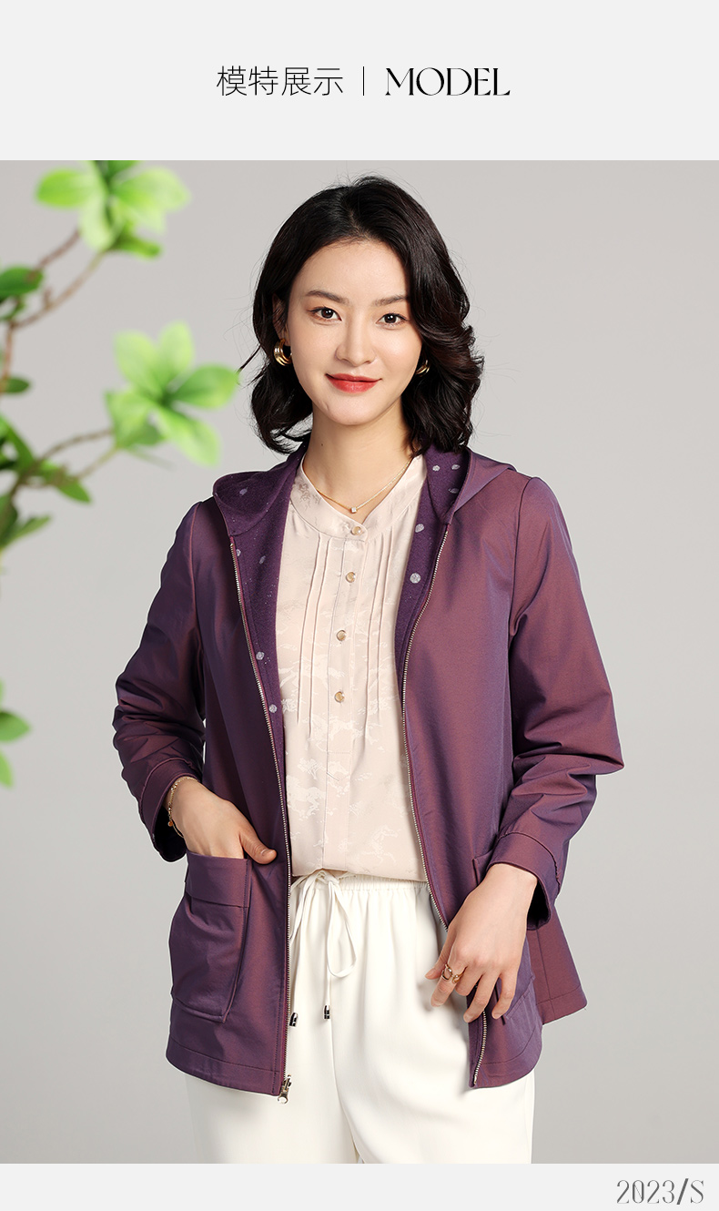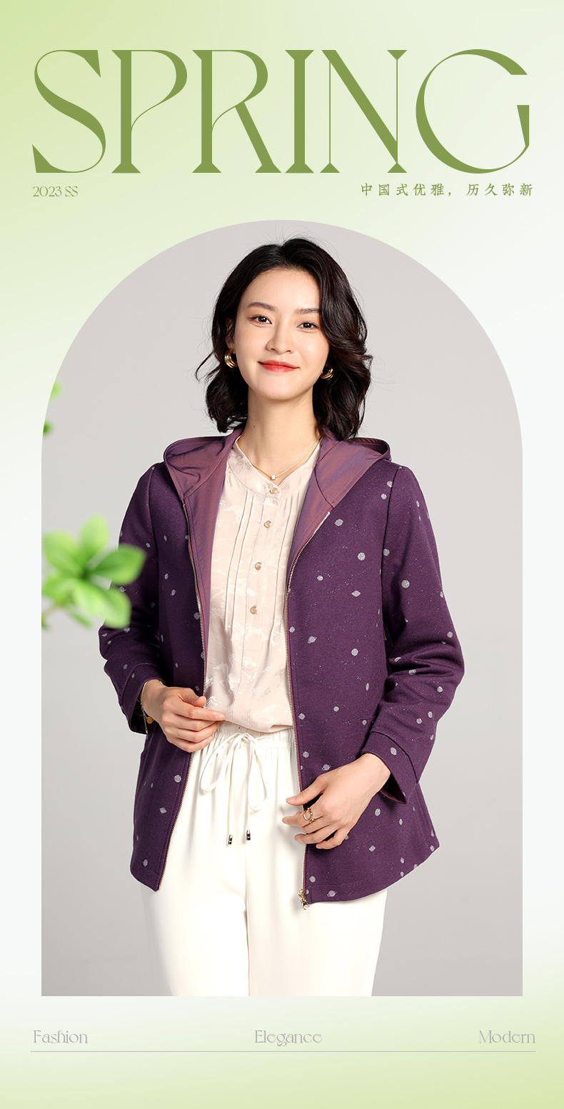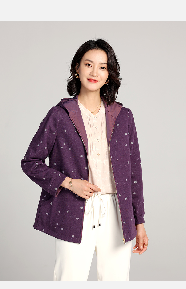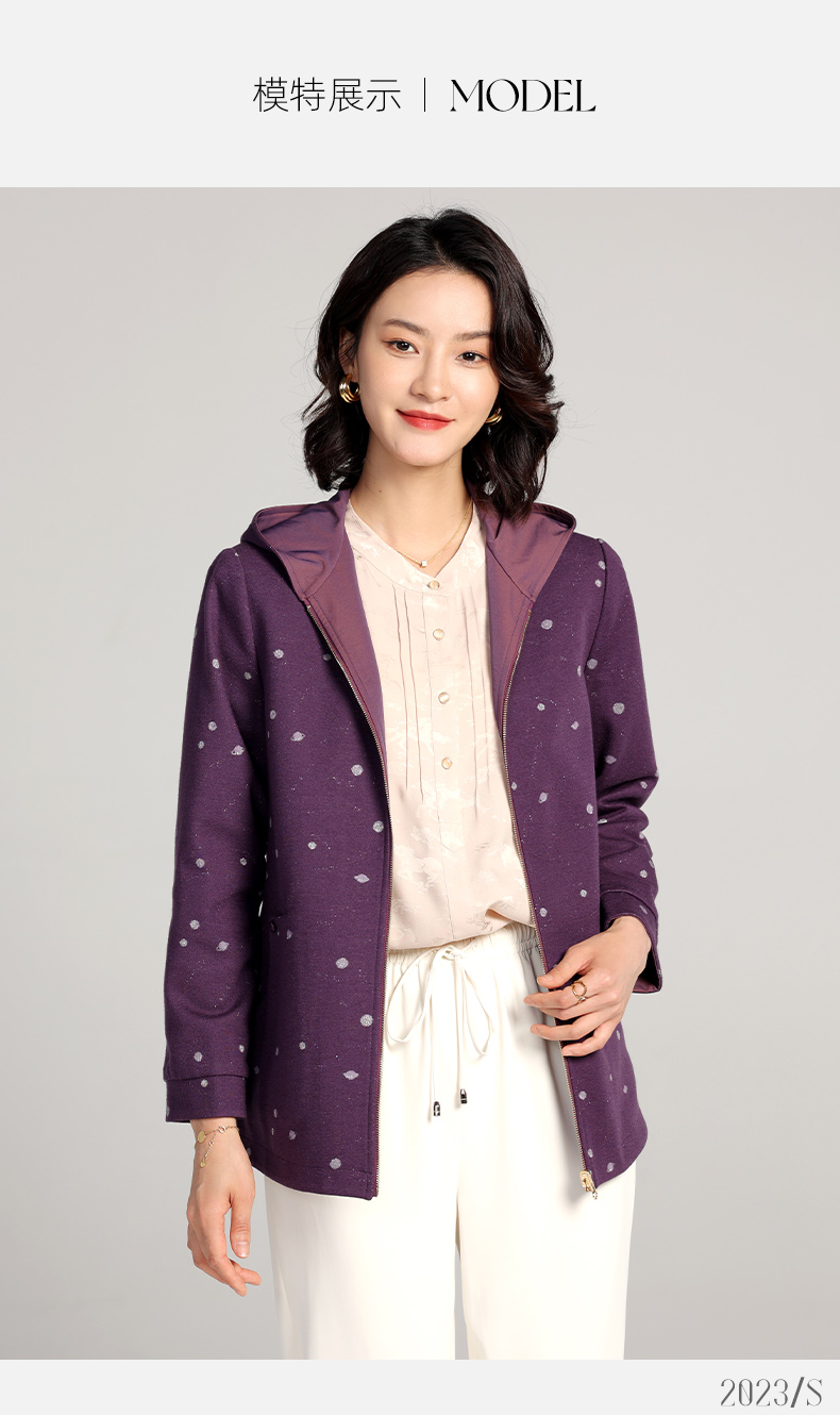 佐尔美2023春季新款 双面穿连帽波点上衣外套女E23SY02
