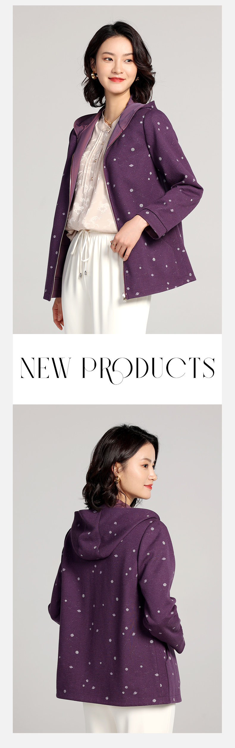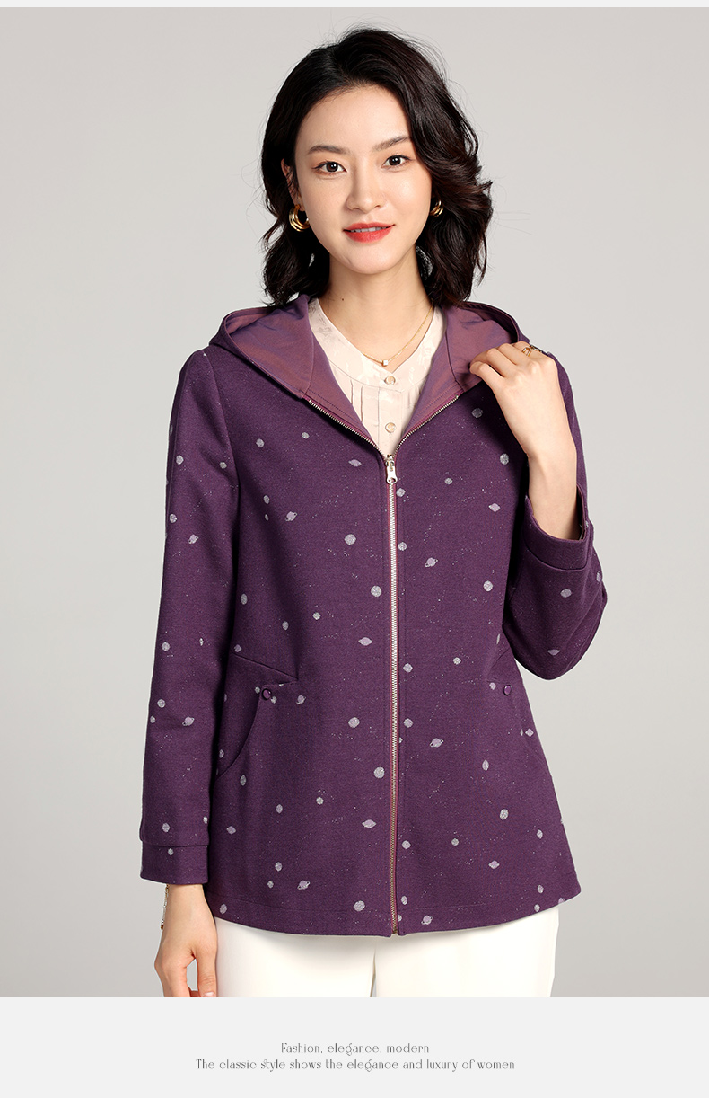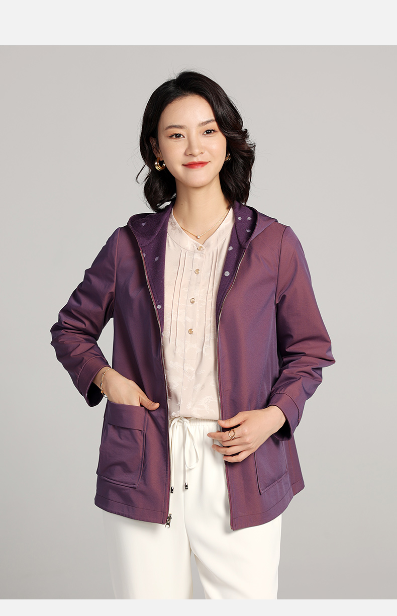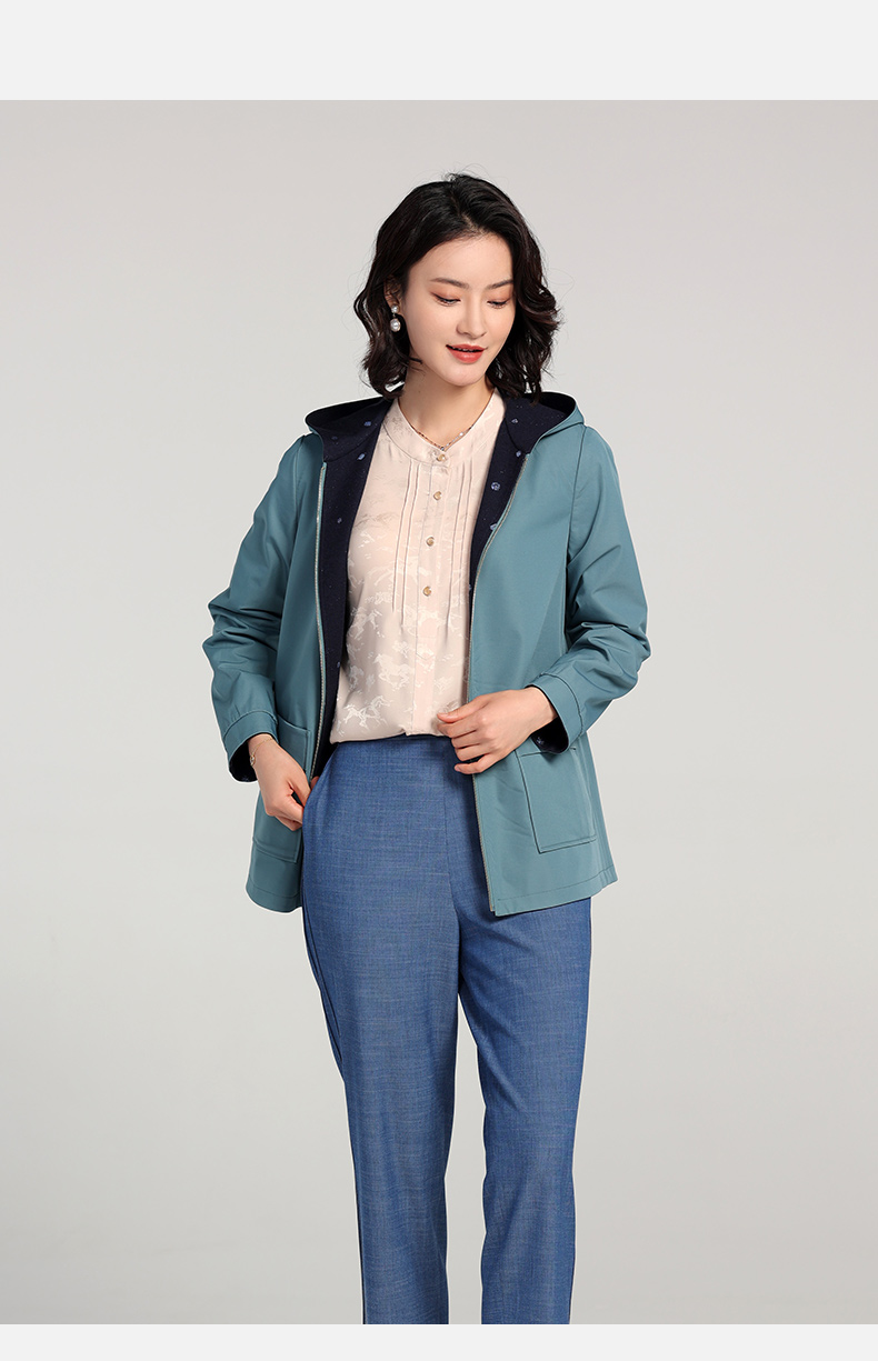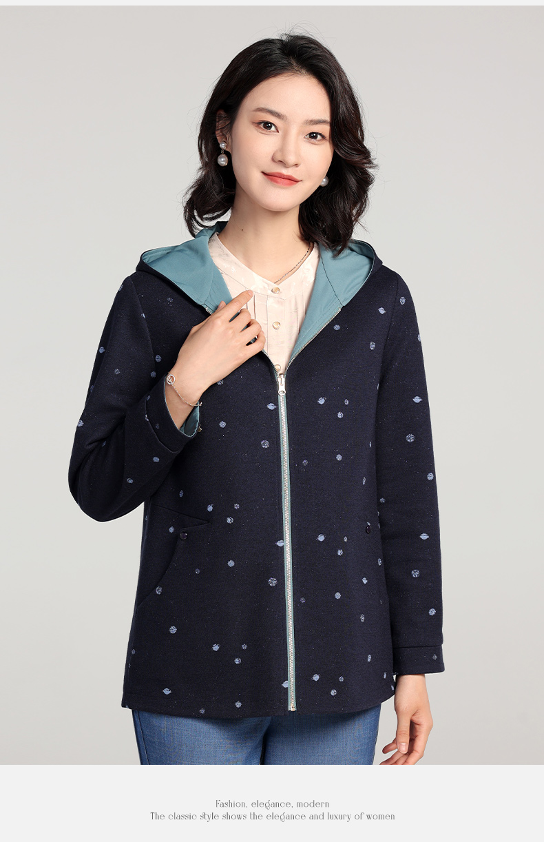 佐尔美2023春季新款 双面穿连帽波点上衣外套女E23SY02
