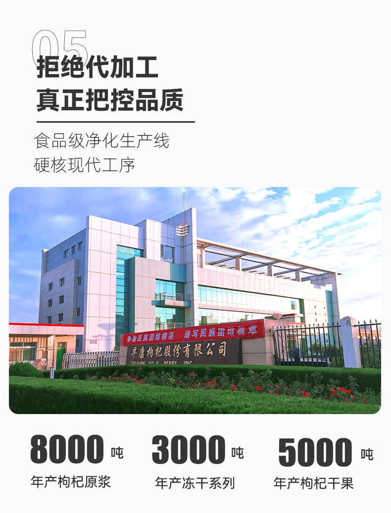 早康枸杞股份有限公司成立于1999年2月,是集枸杞种植、加工、研发、销售,拥有自营出口权的农业产业化国家级重点龙头企业。公司专业生产枸杞鲜汁,枸杞浓缩汁,冷冻枸杞,枸杞果饮,枸杞干果等各类枸杞系列产品