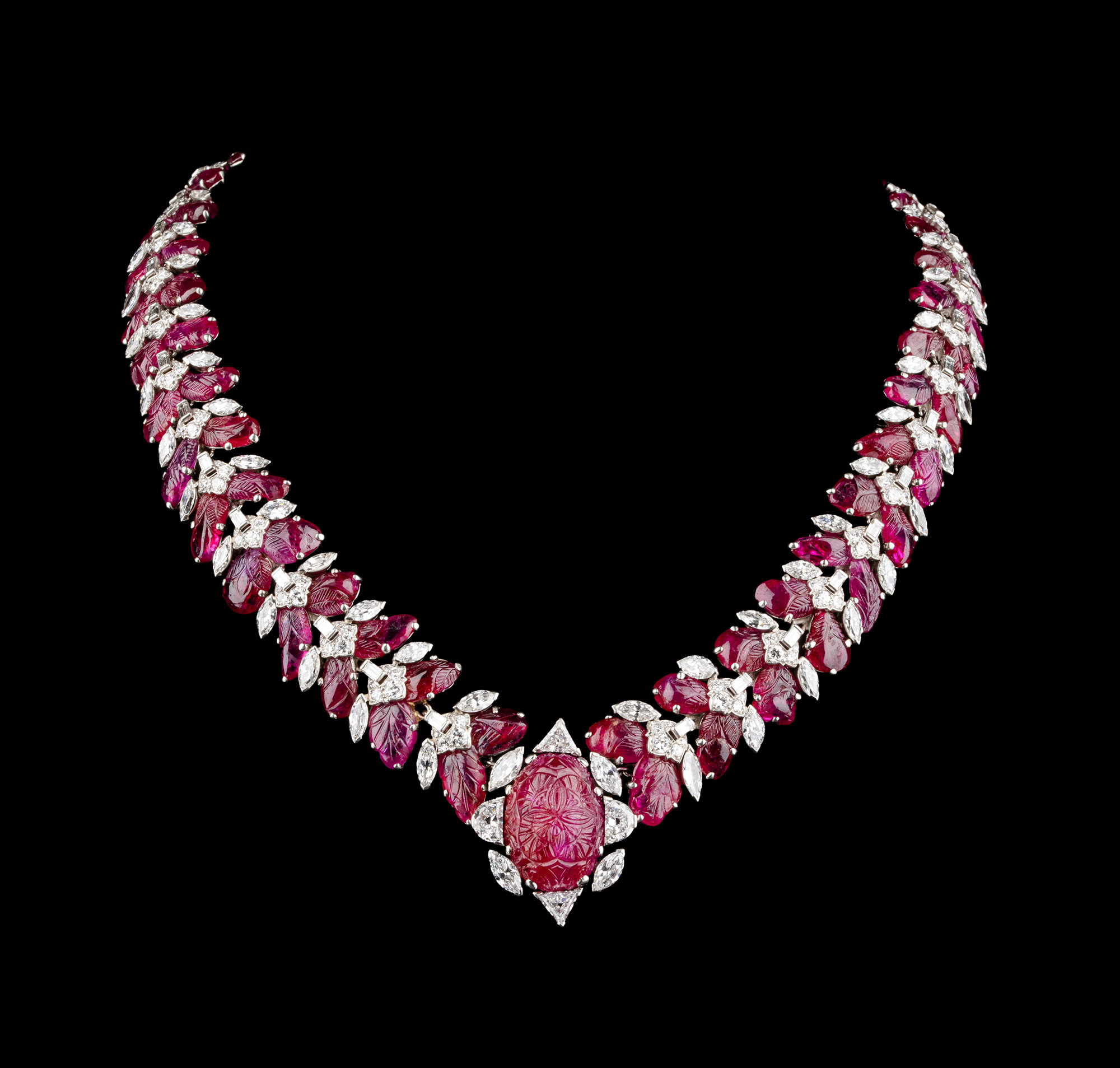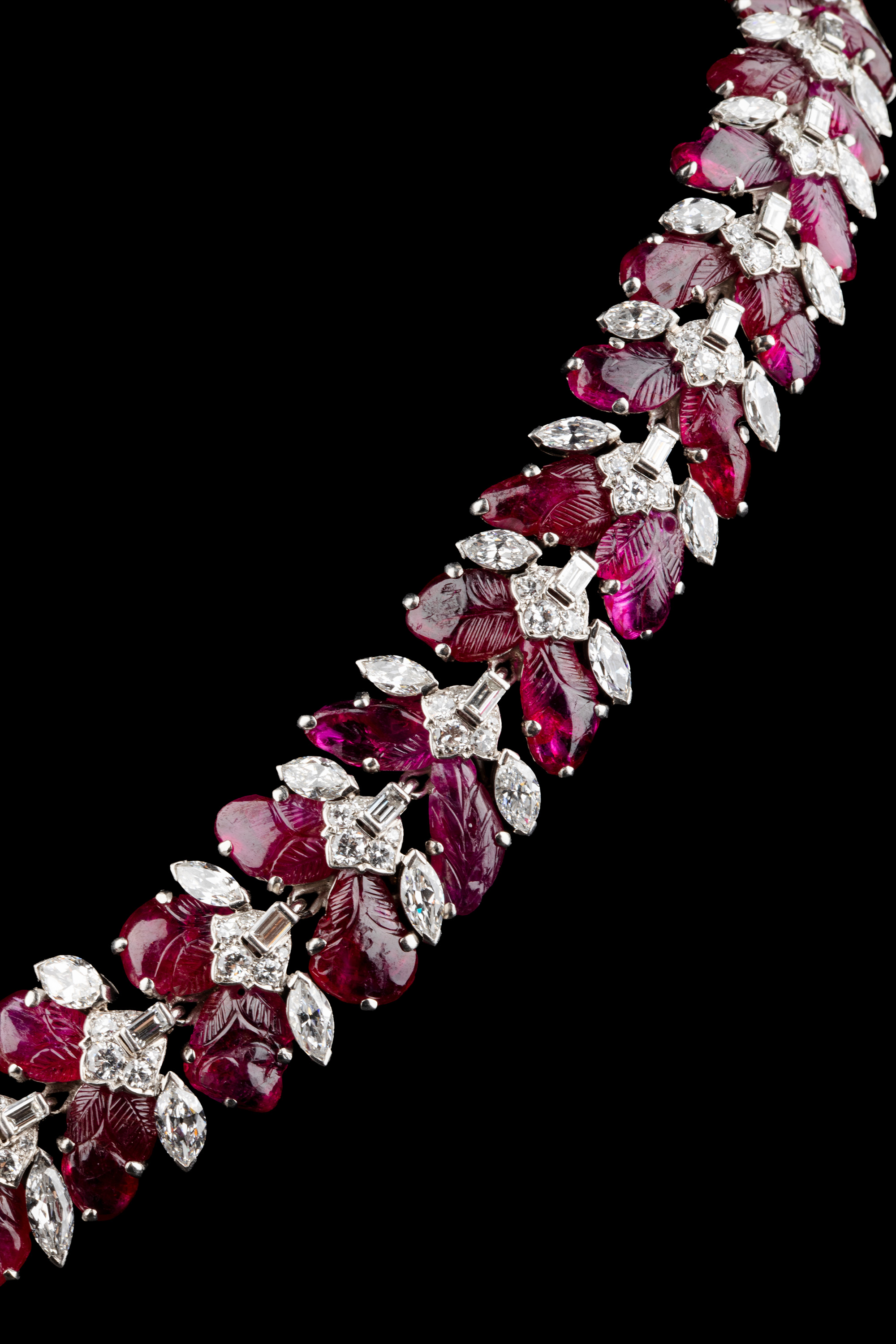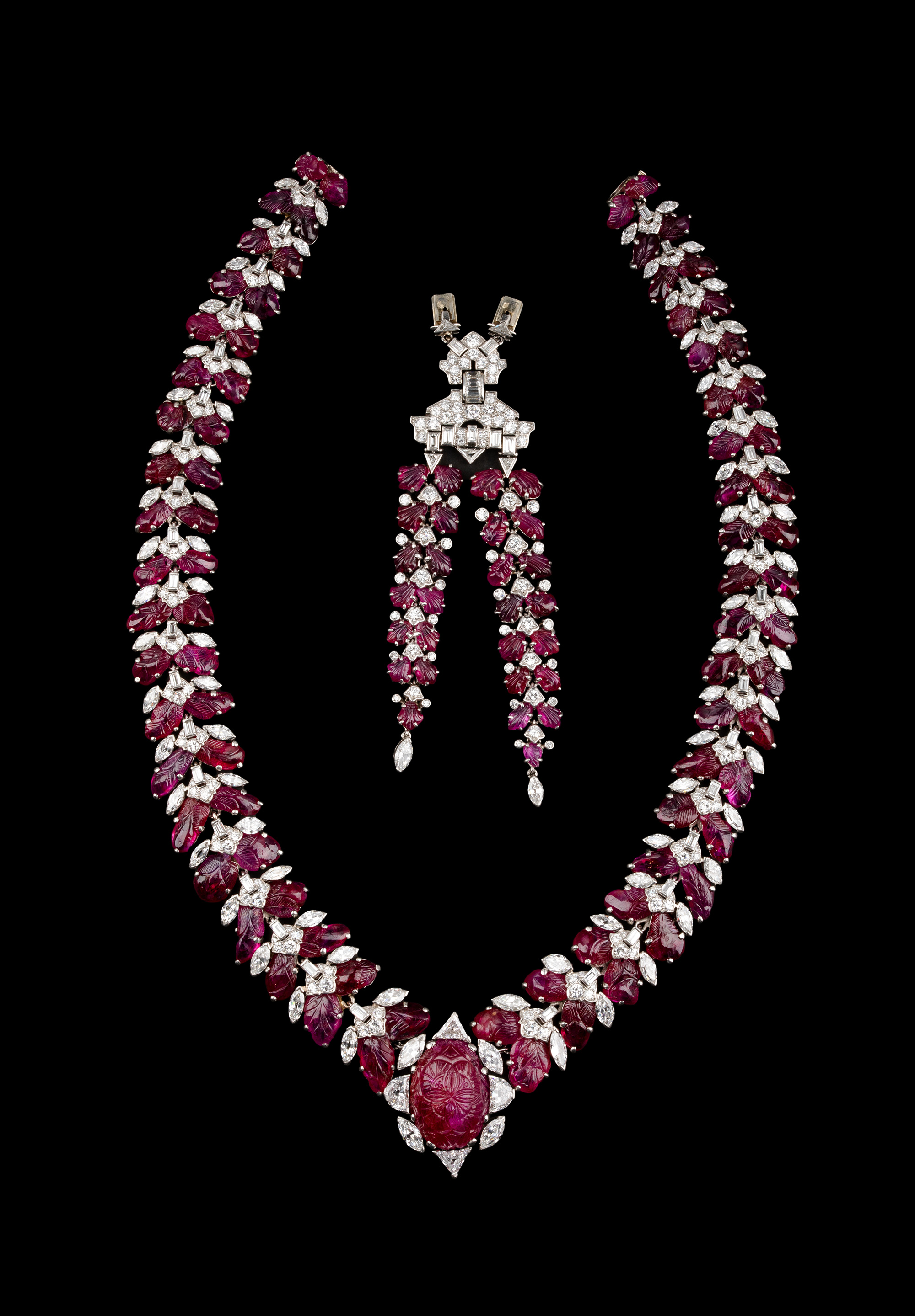 1935年代法国Art Deco时期出品铂金白金镶嵌红宝石钻石项链
