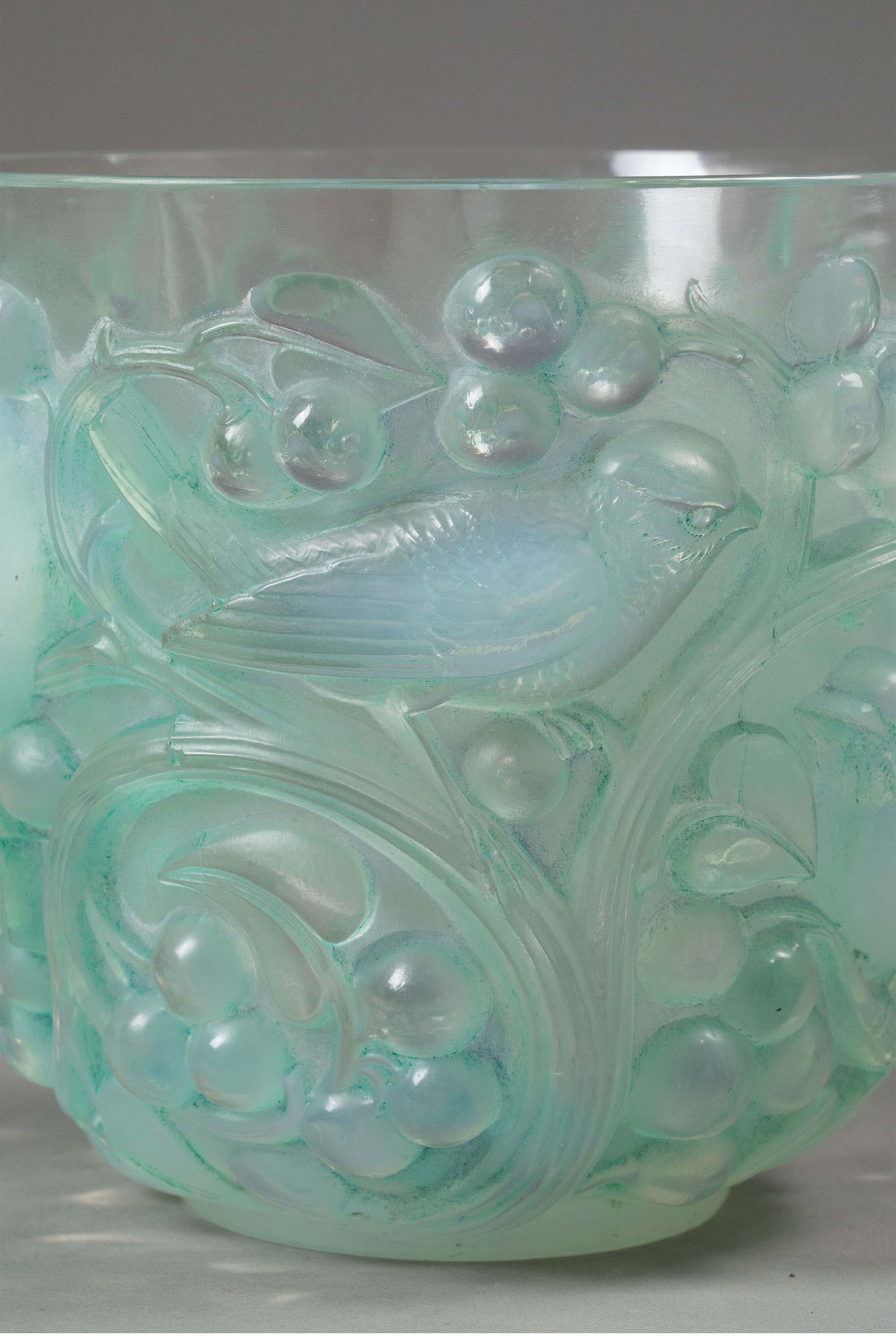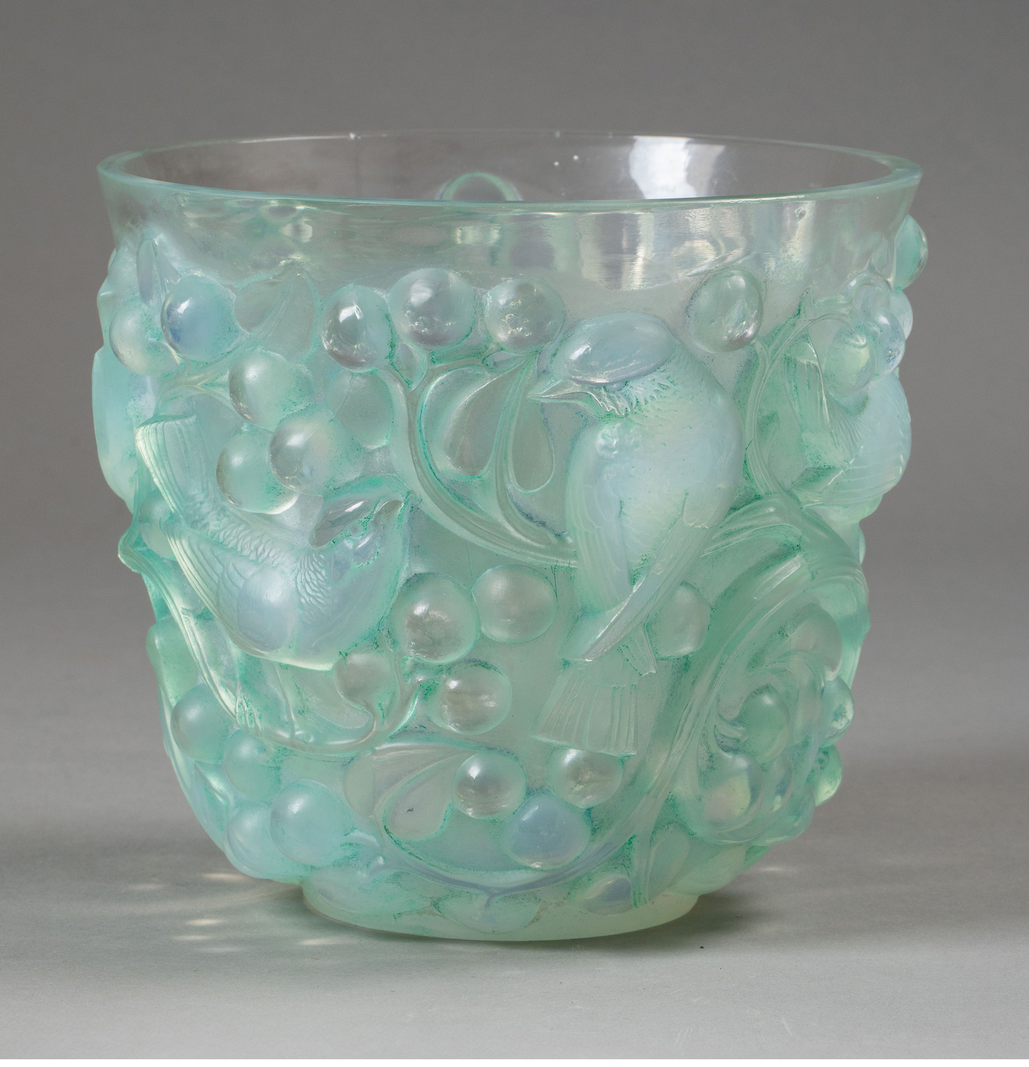 1927年法国顶级水晶工坊莱俪LALIQUE设计出品「Avallon 阿瓦隆」主题淡绿色欧泊水晶花瓶