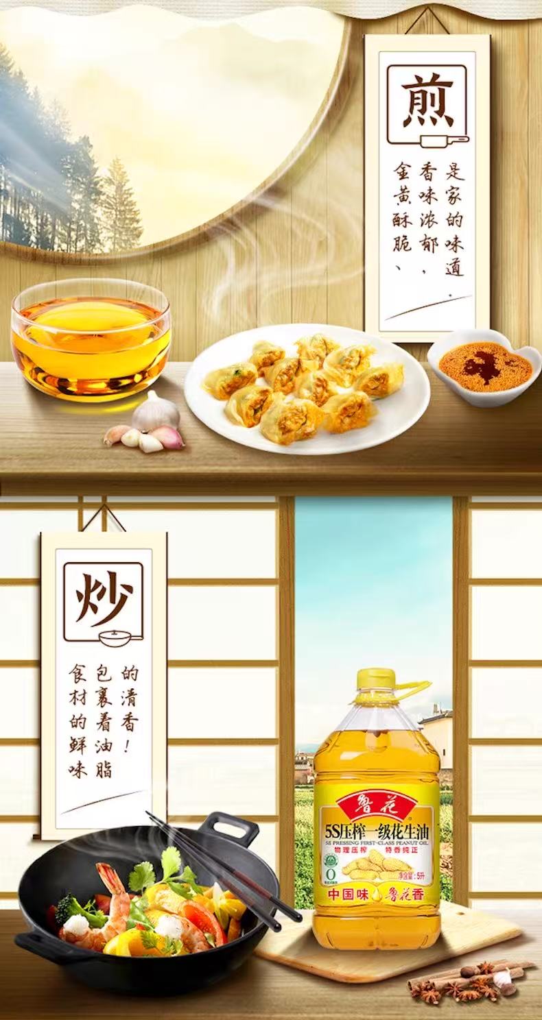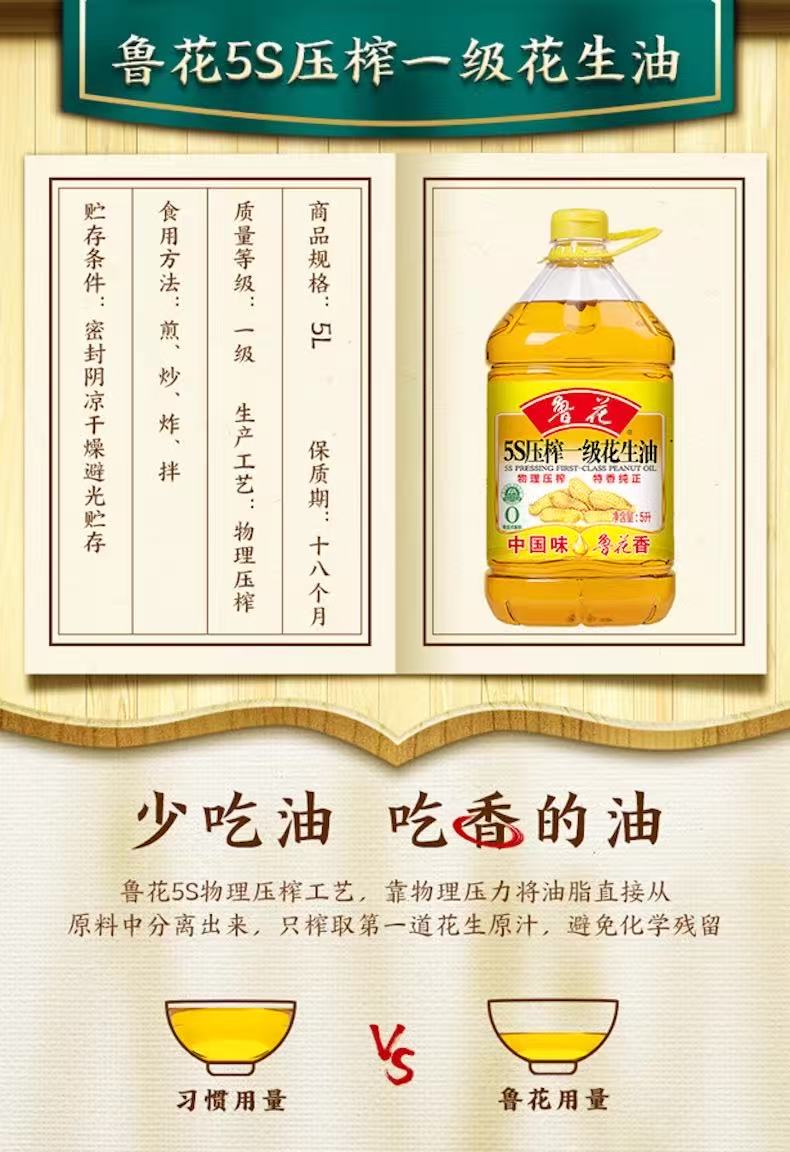 鲁花5S压榨一级花生油5L