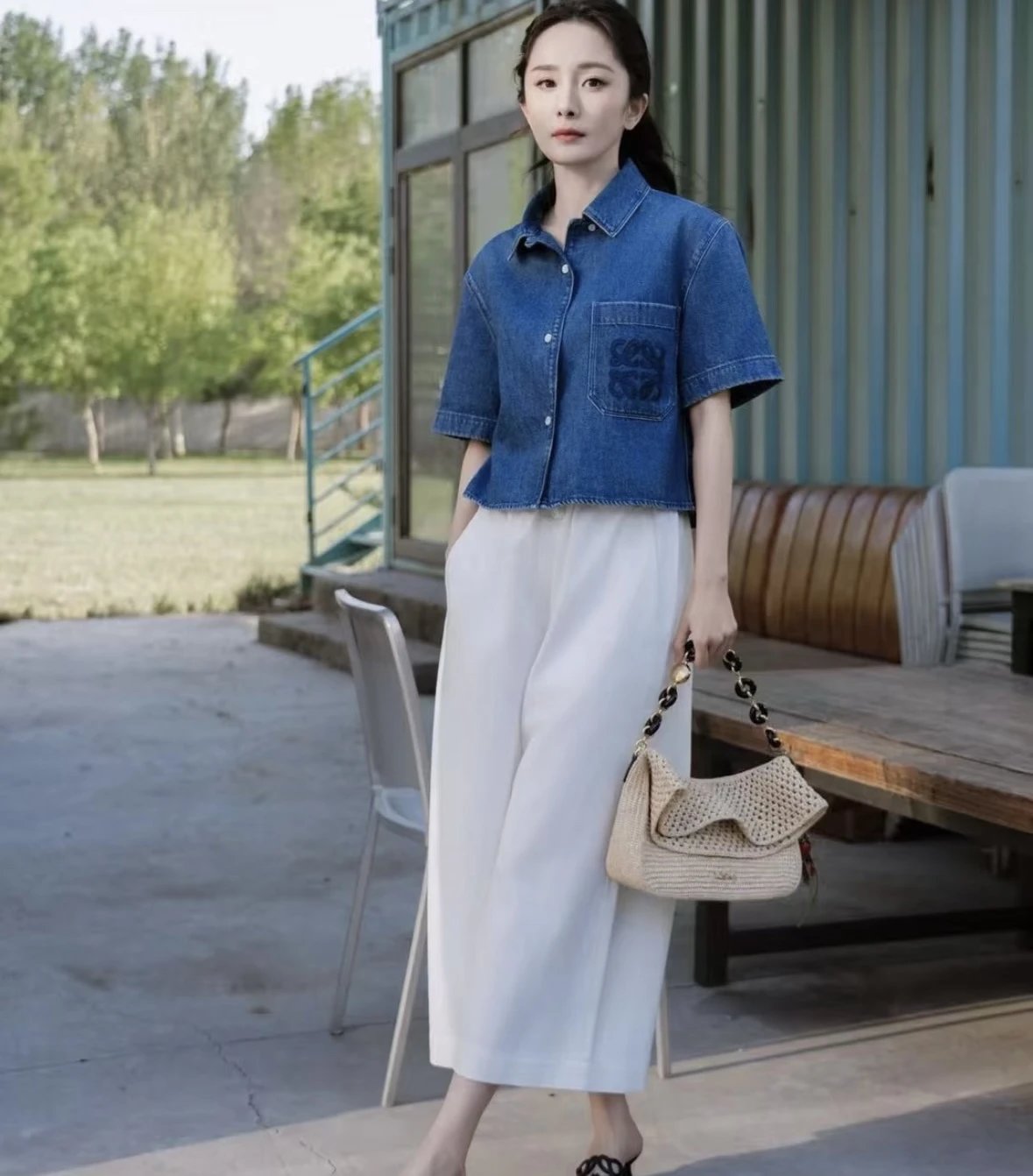重磅渠道 贸易公司 ibiza系列白色抽绳松紧阔腿裤 anagram刺绣九分裤休闲阔腿裤
