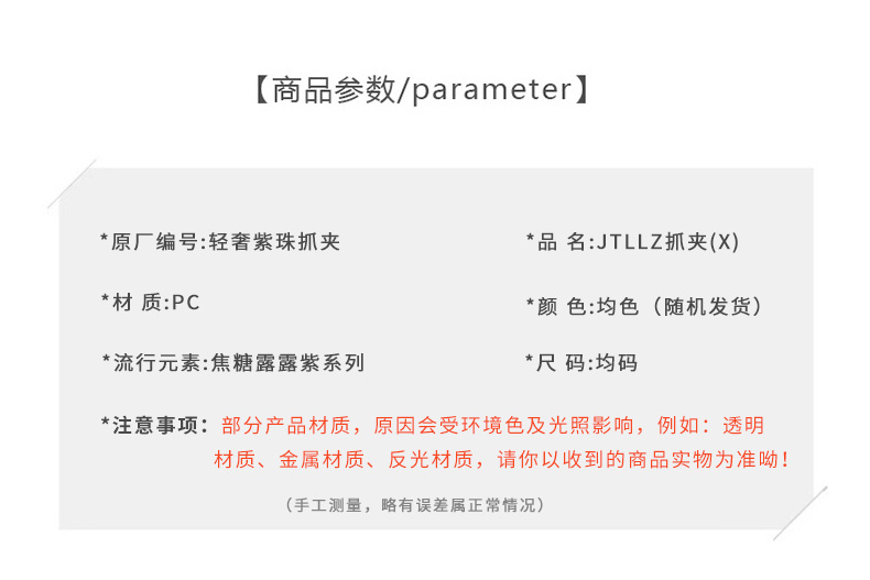 优雅百搭轻奢紫珠抓夹JTLLZ抓夹-纪念日百货门店同款167395198