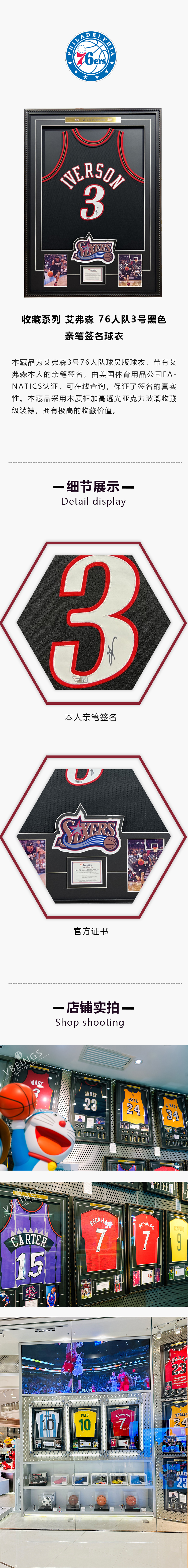 收藏系列 艾弗森 76人队3号黑色 亲笔签名球衣