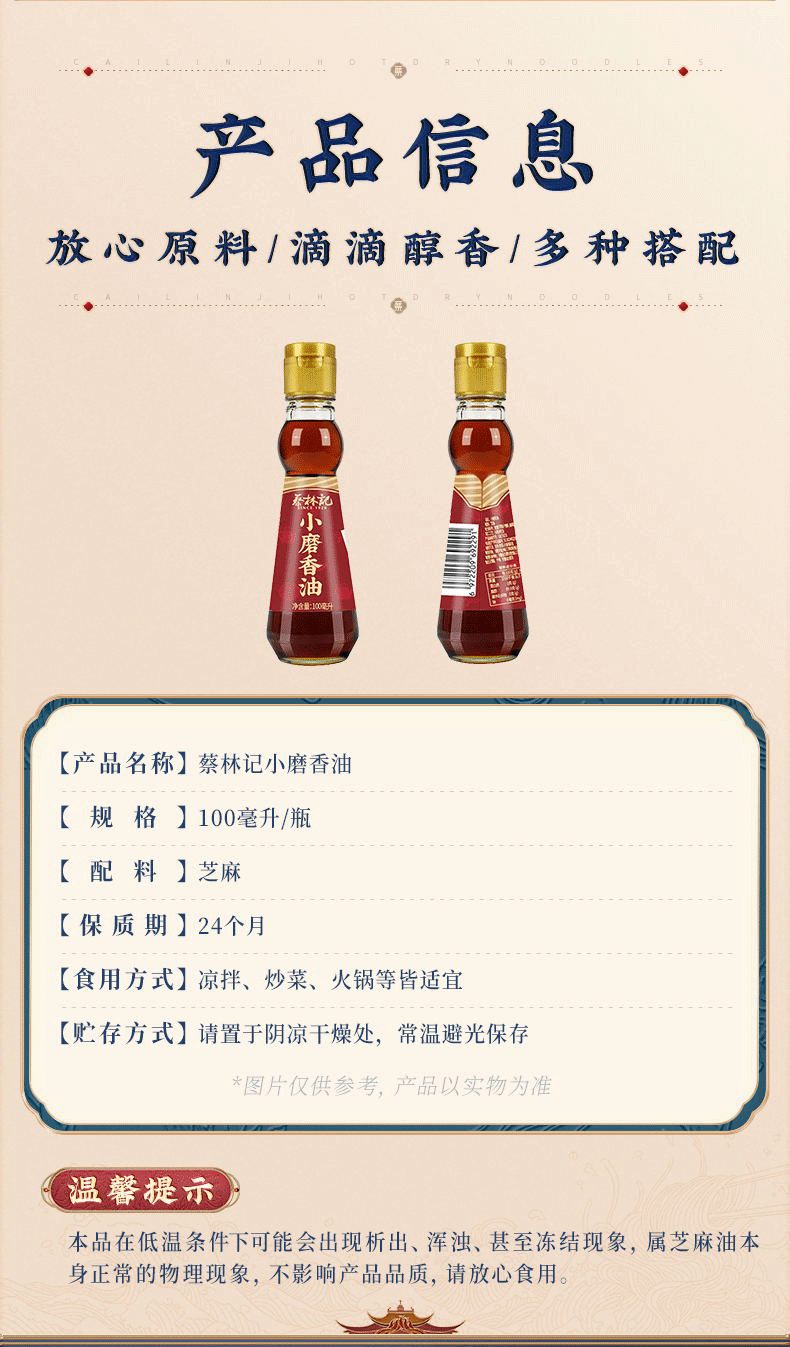 【满99-50 满199-100】蔡林记芝麻香油100g