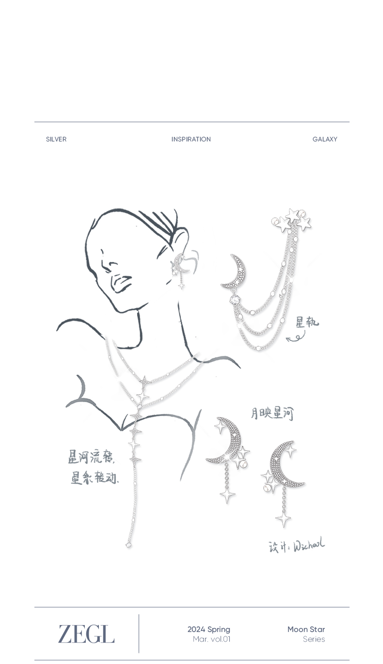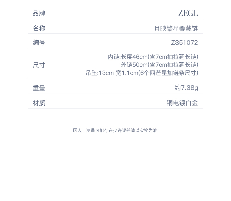 ZEGL设计师月映星河系列叠戴星星项链女款2024新款锁骨链颈链饰品