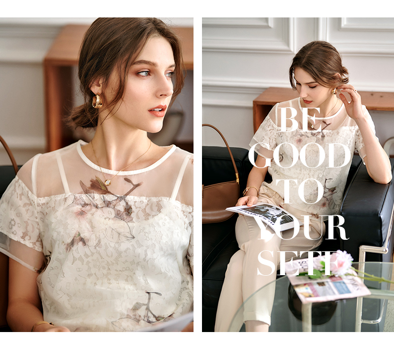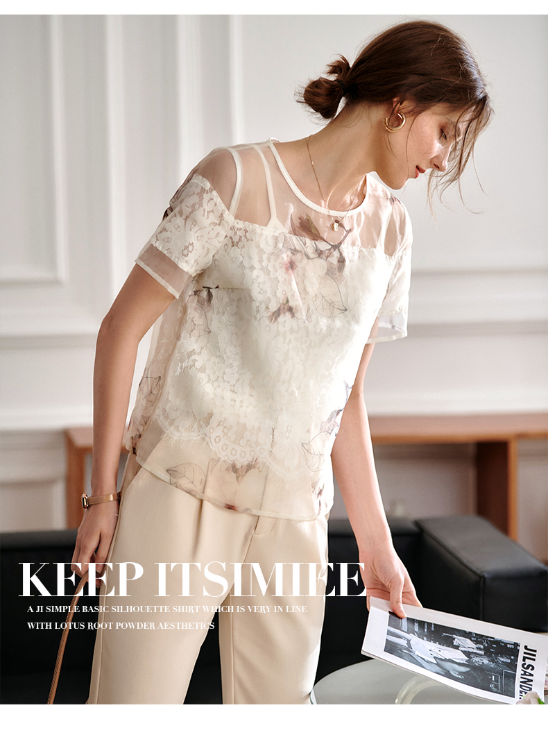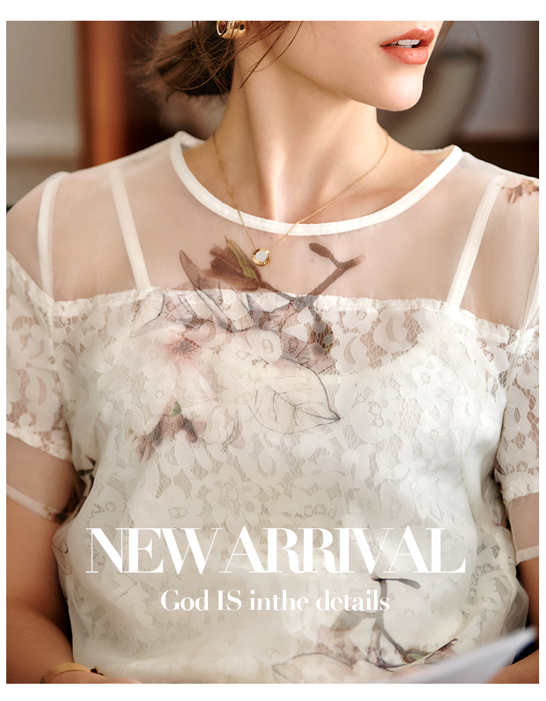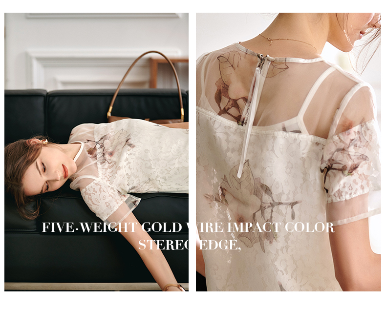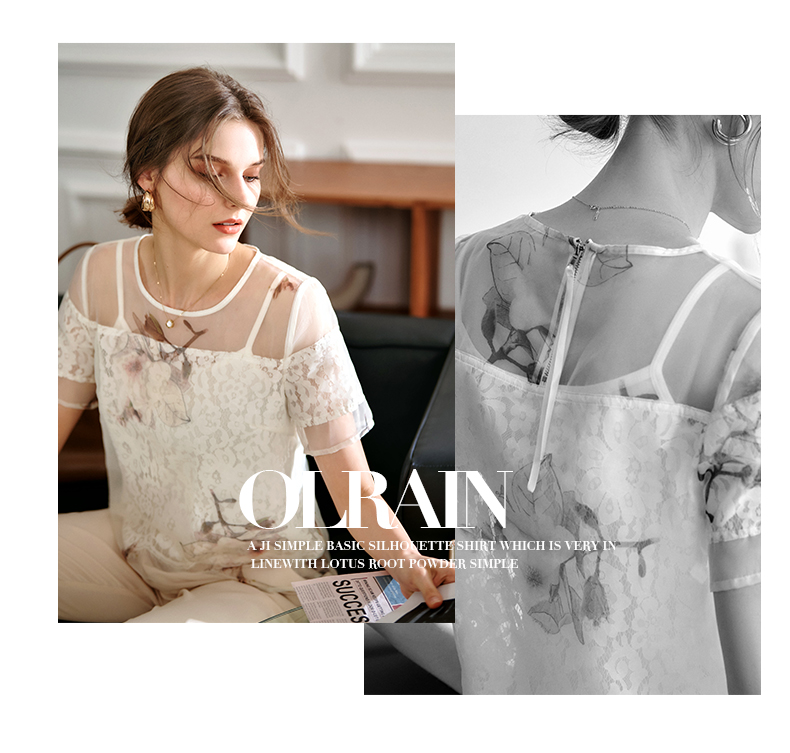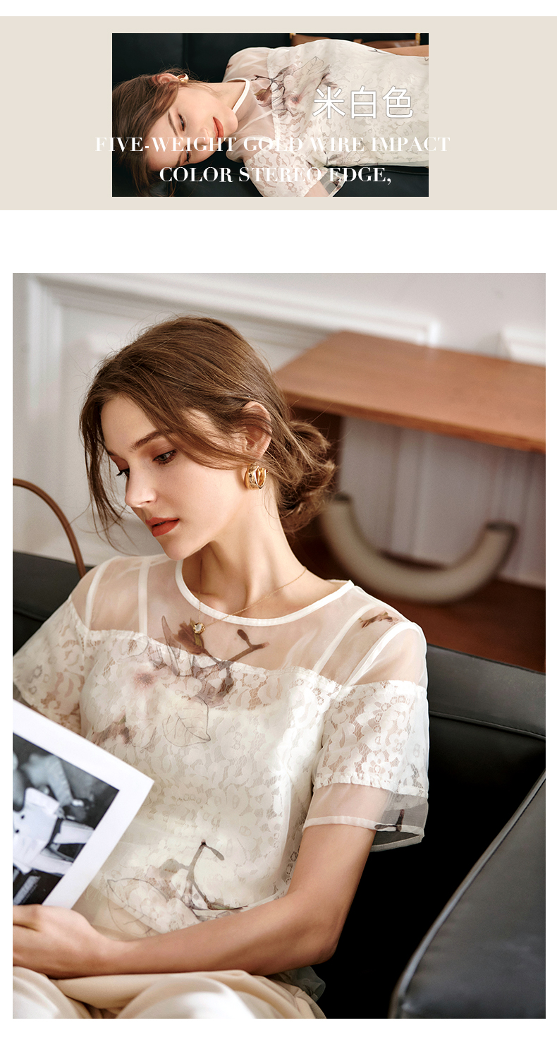OLrain法式高级穿搭白色雪纺衫女夏季2022年新款欧根纱印花套头衫06XS81193