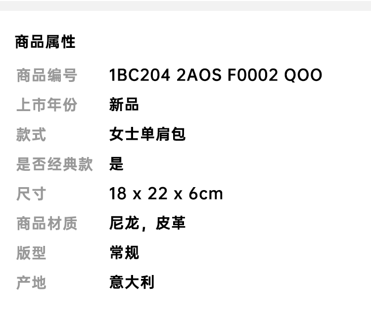 PRADA 普拉达 女士珐琅金属三角徽标 Re-Edition 1995 尼龙手提包 黑色 1BC204 2AOS F0002 QOO