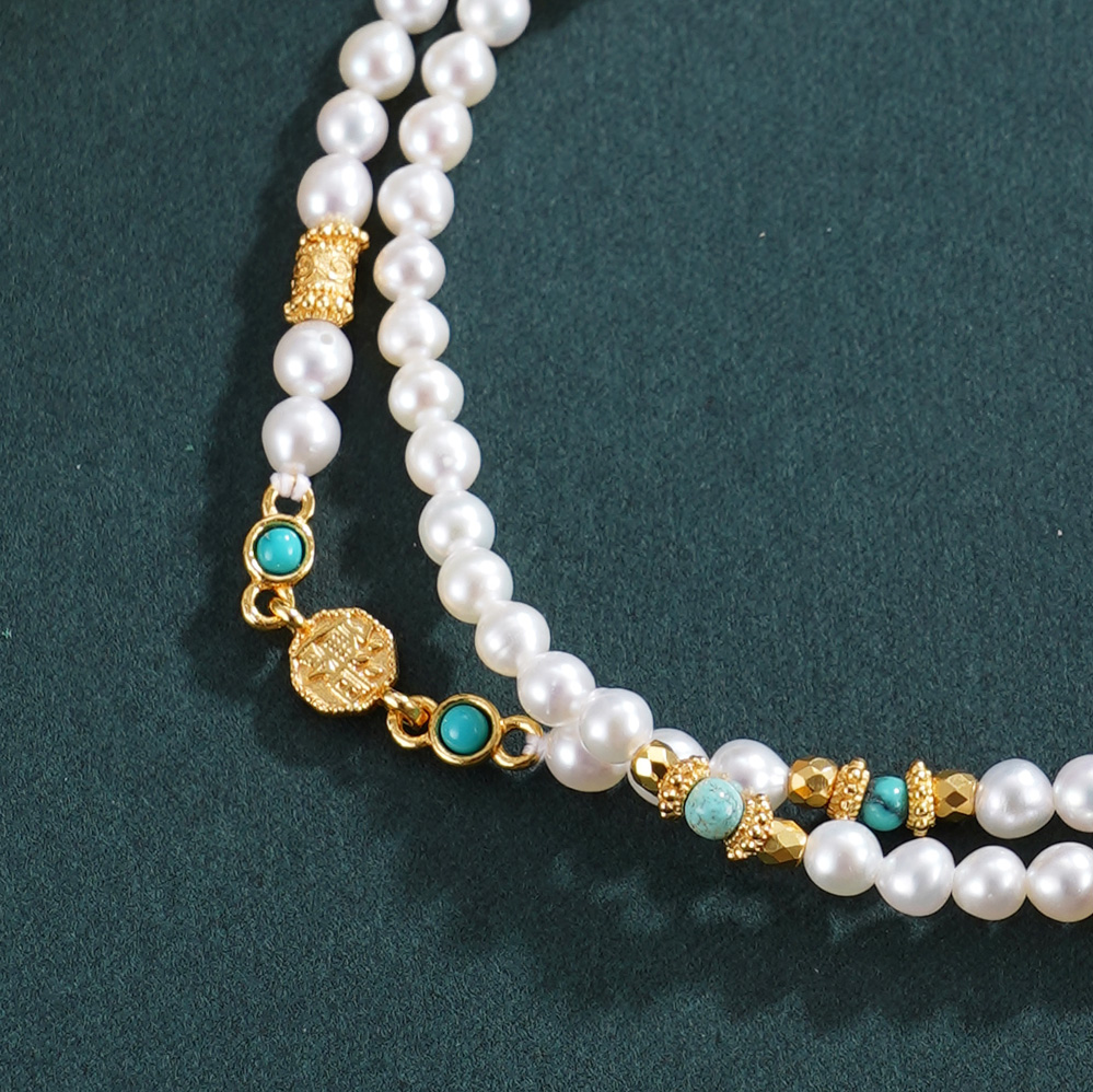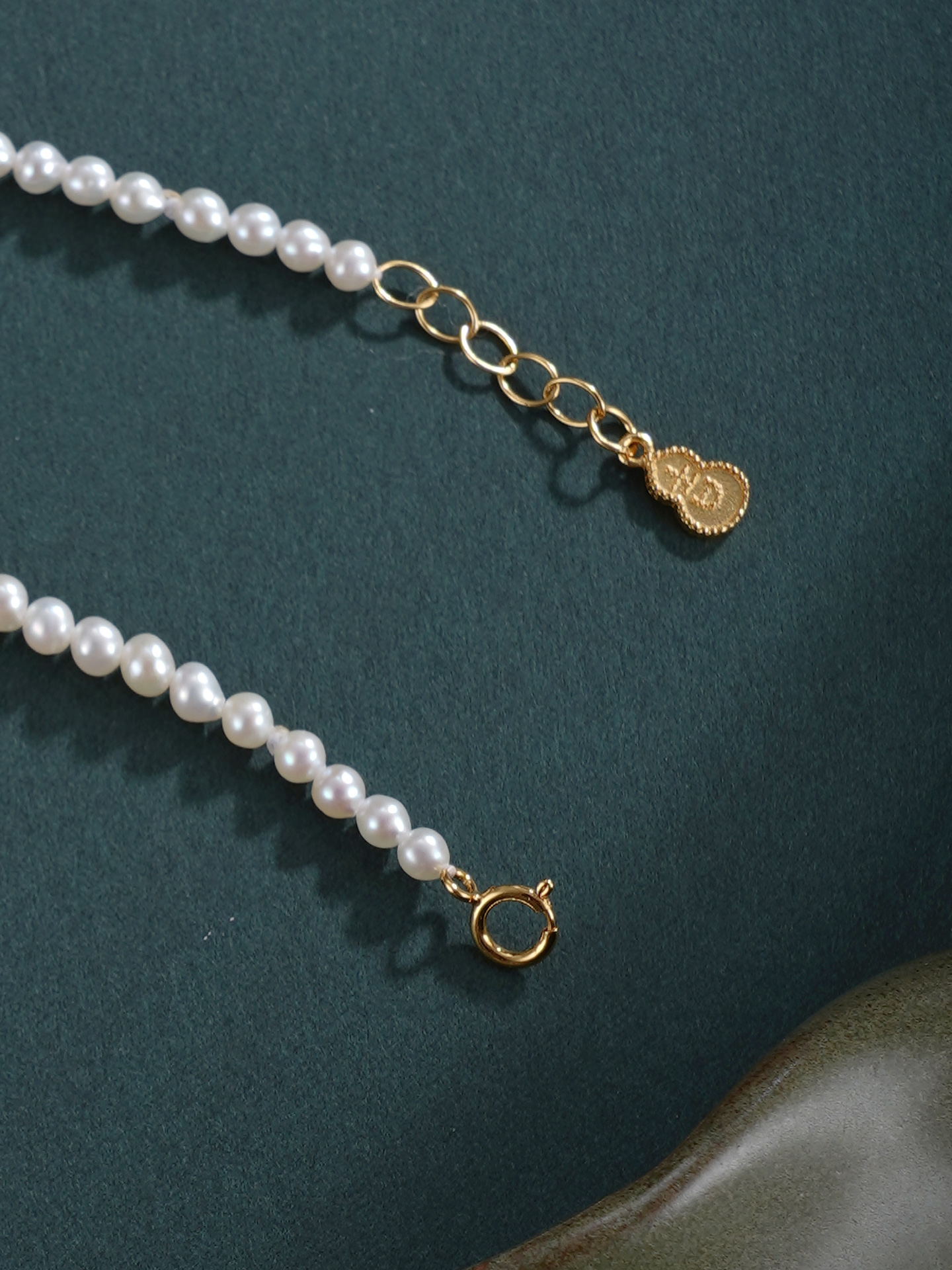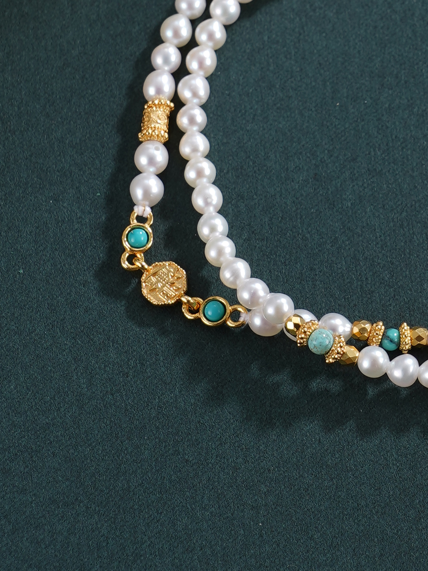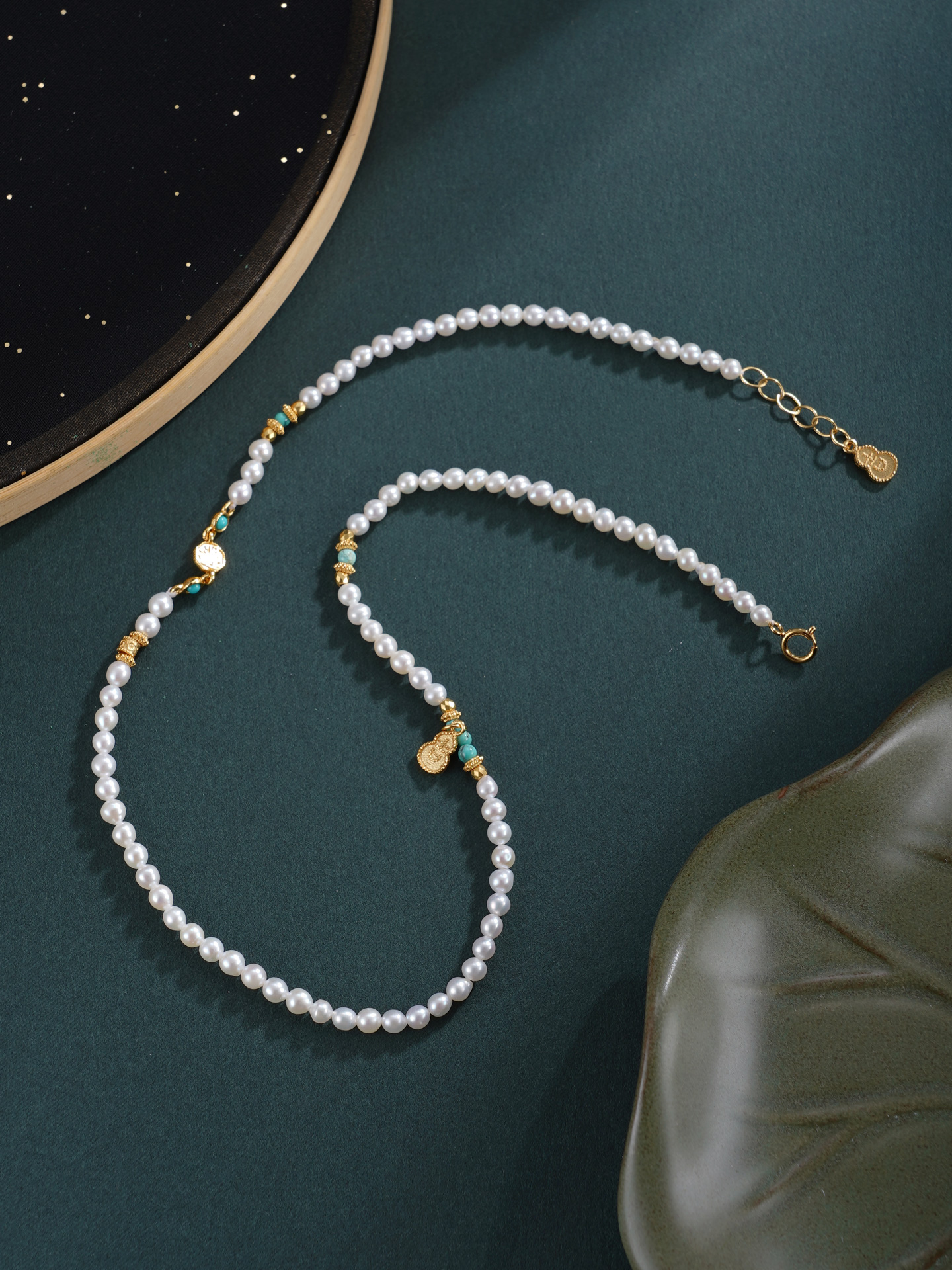 子佩集【福禄双华】银S925珍珠惜王妃手链【QNS0006】3mm珠镀金绿松石葫芦2601