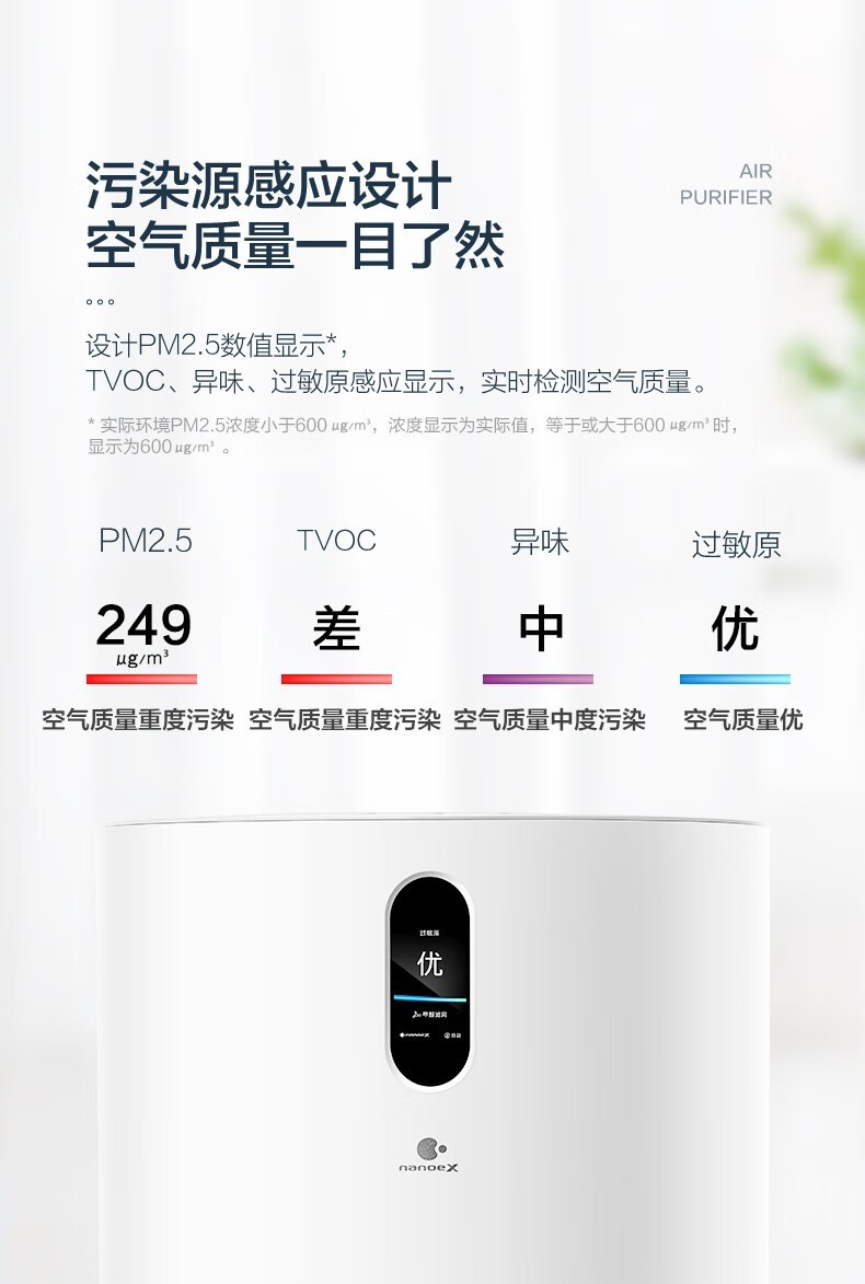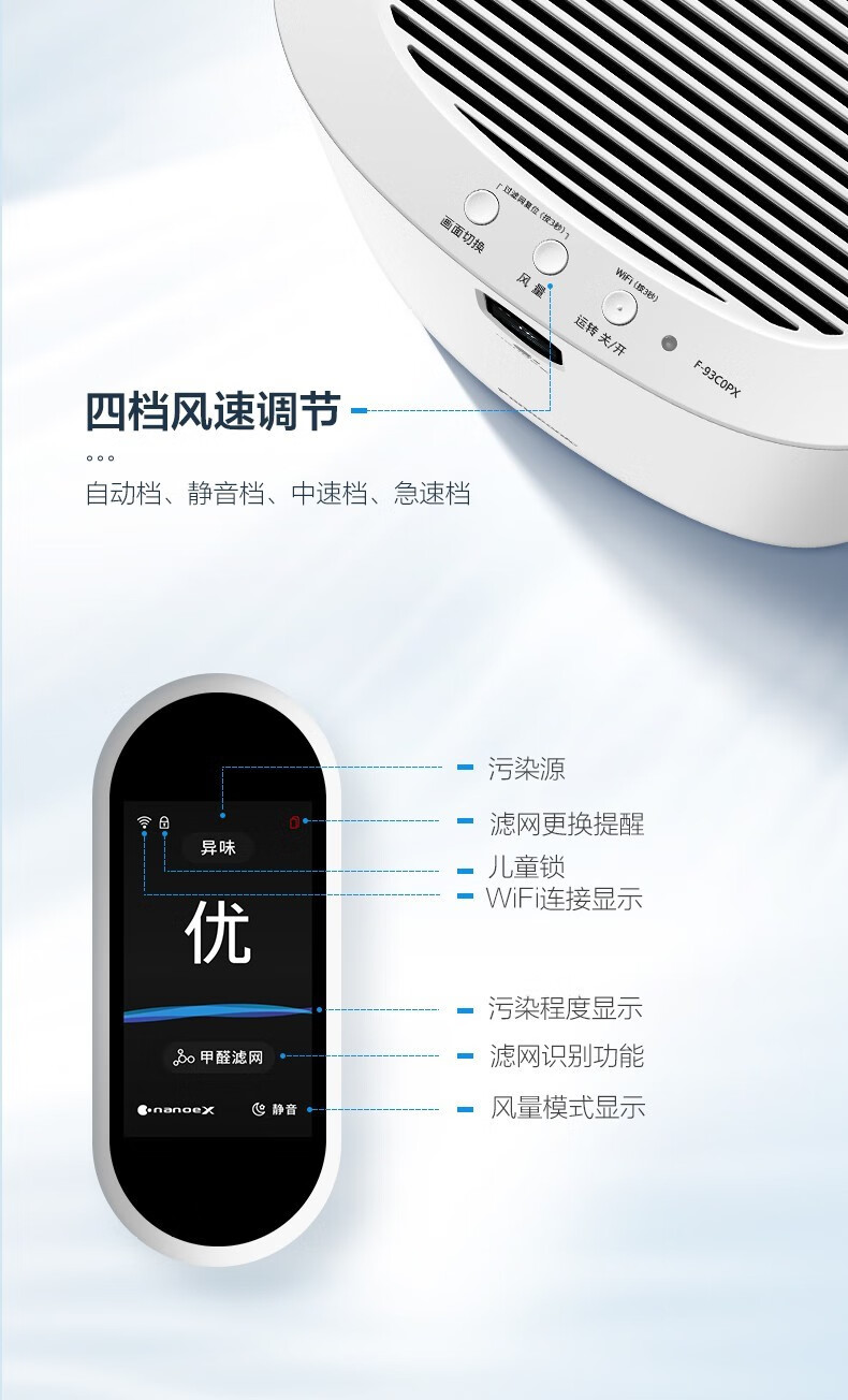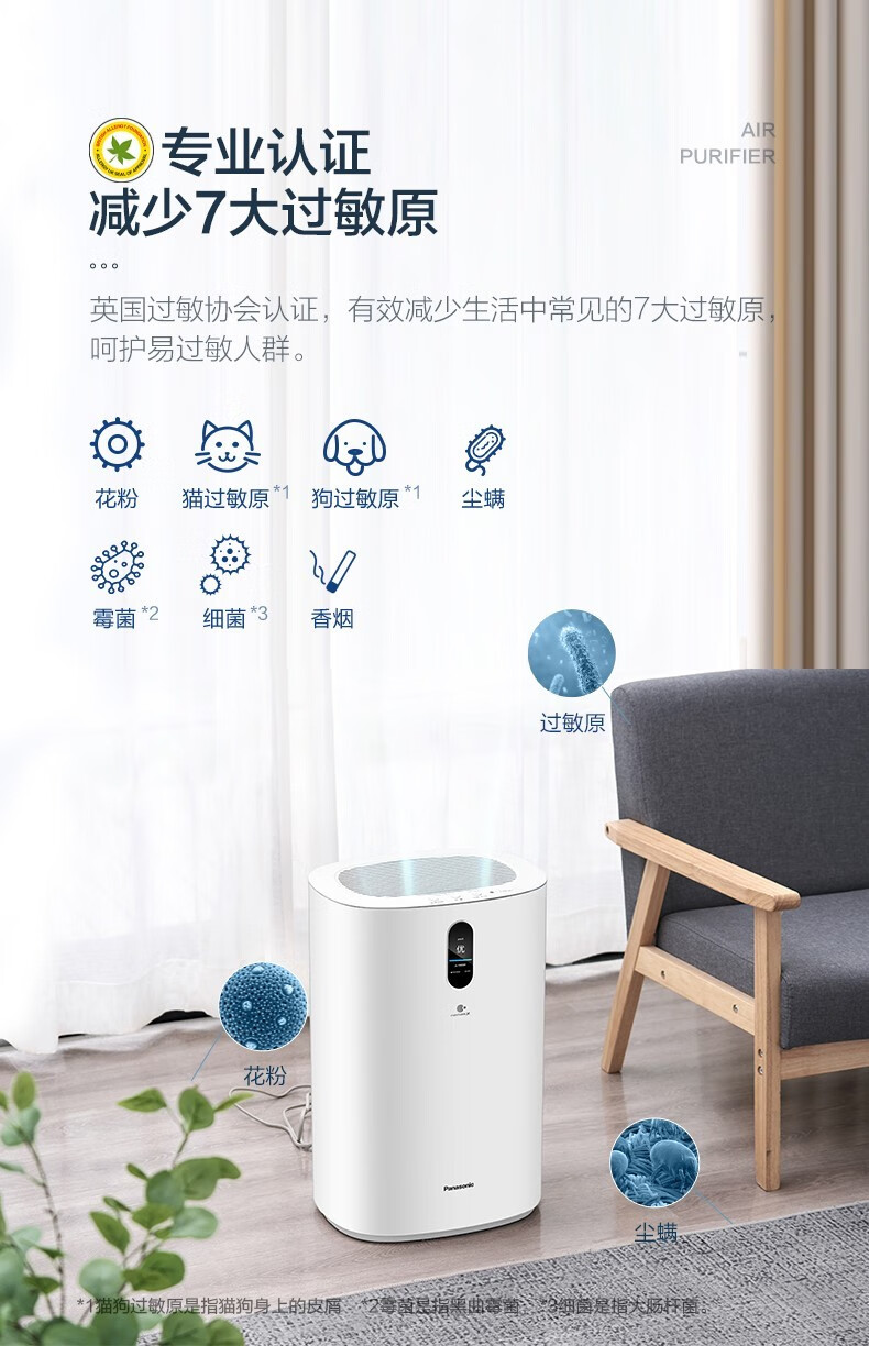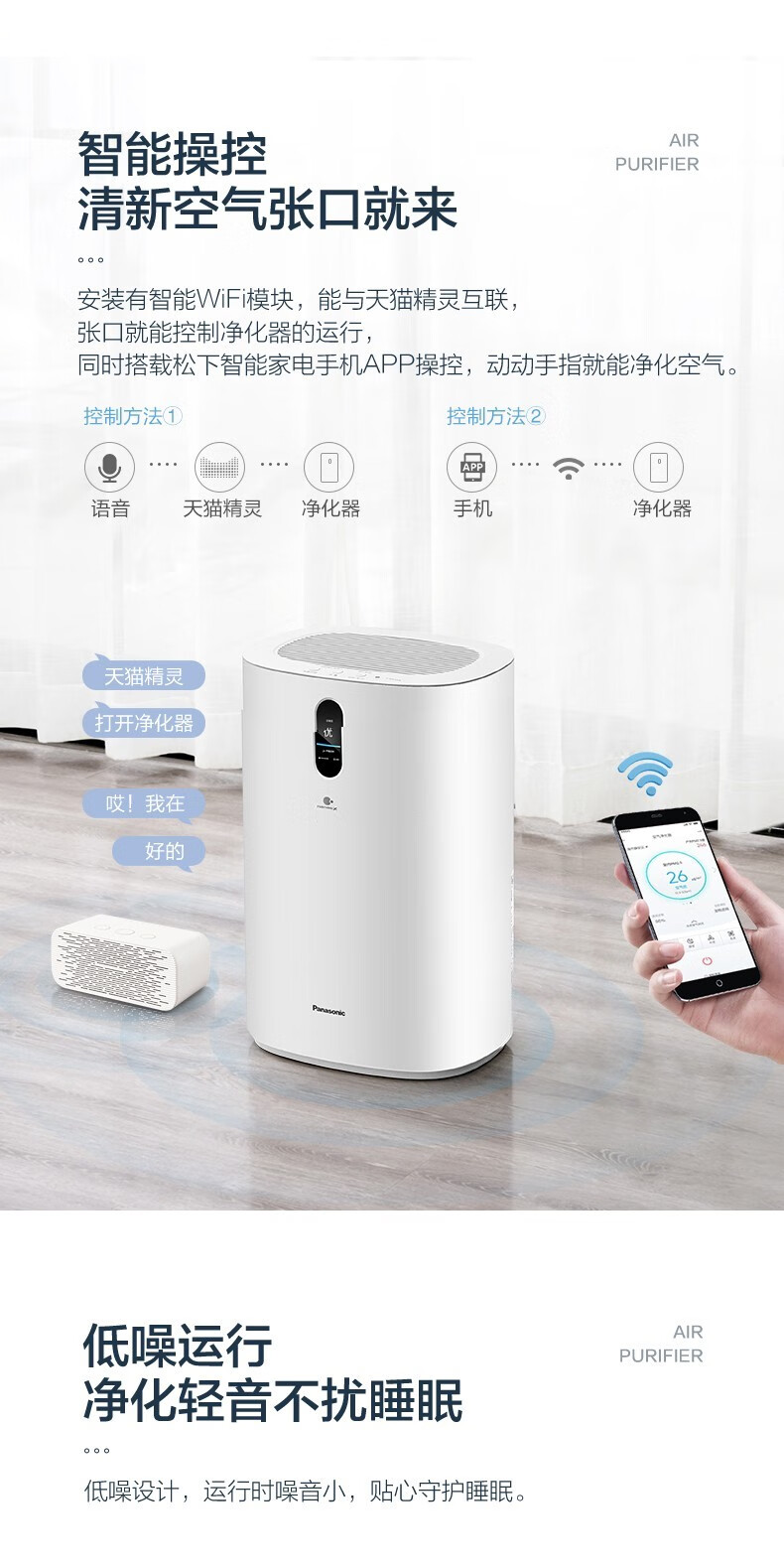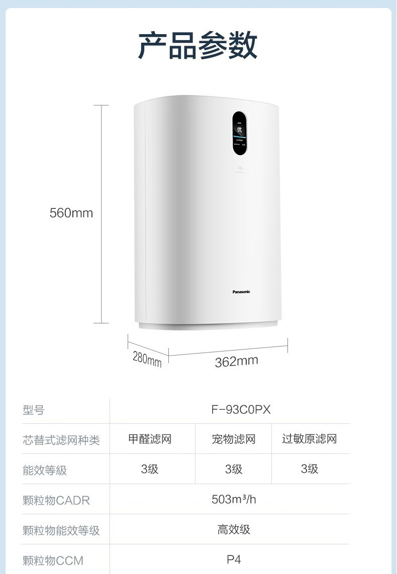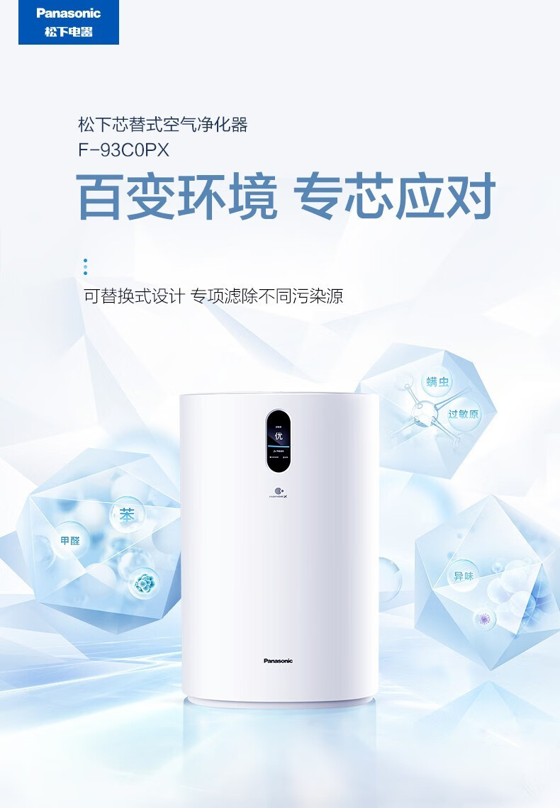 【国庆特惠】松下空气净化器家用智能App控制 除甲醛去异味宠物除臭纳诺怡净化除过敏原 F-93C0PX-W白色