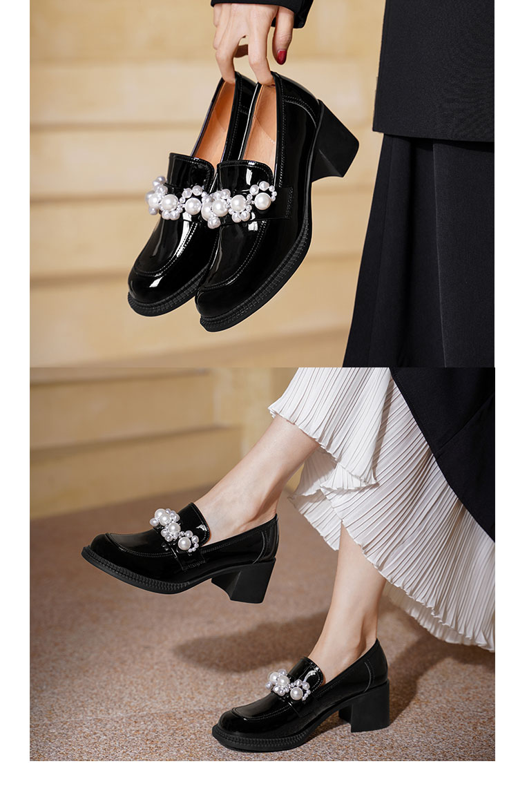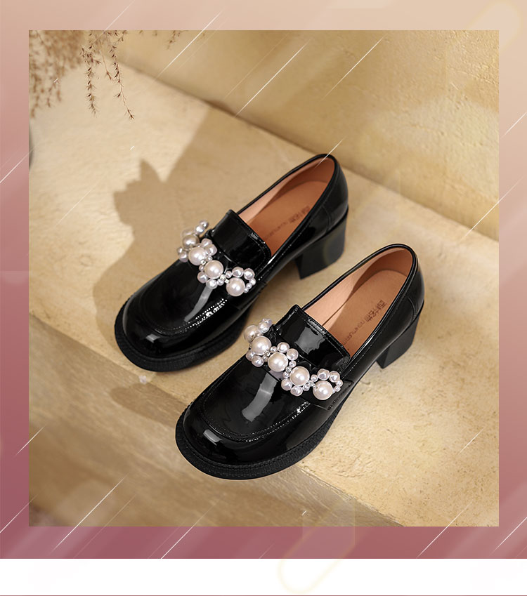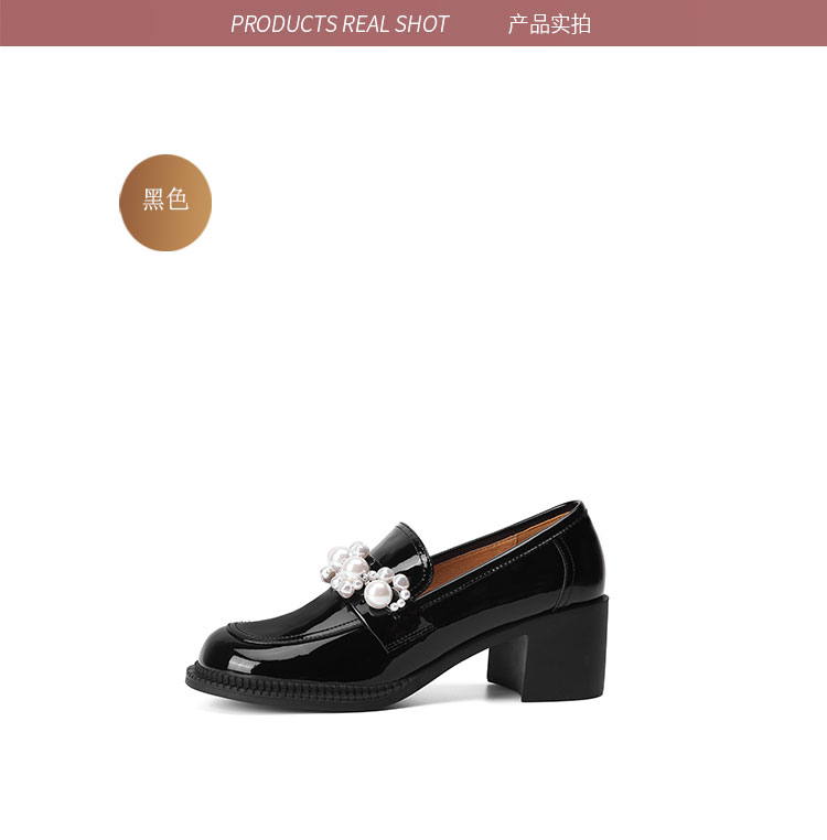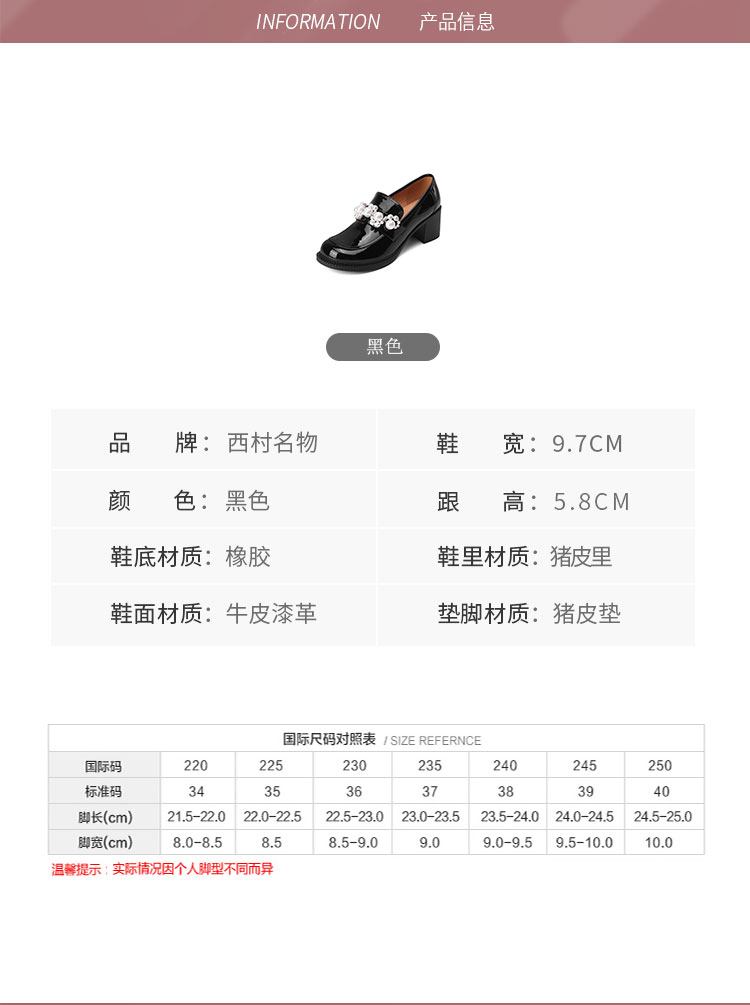 西村名物2021秋冬新款复古英伦小皮鞋韩版珍珠一脚蹬增高仙女乐福鞋T22AM16791