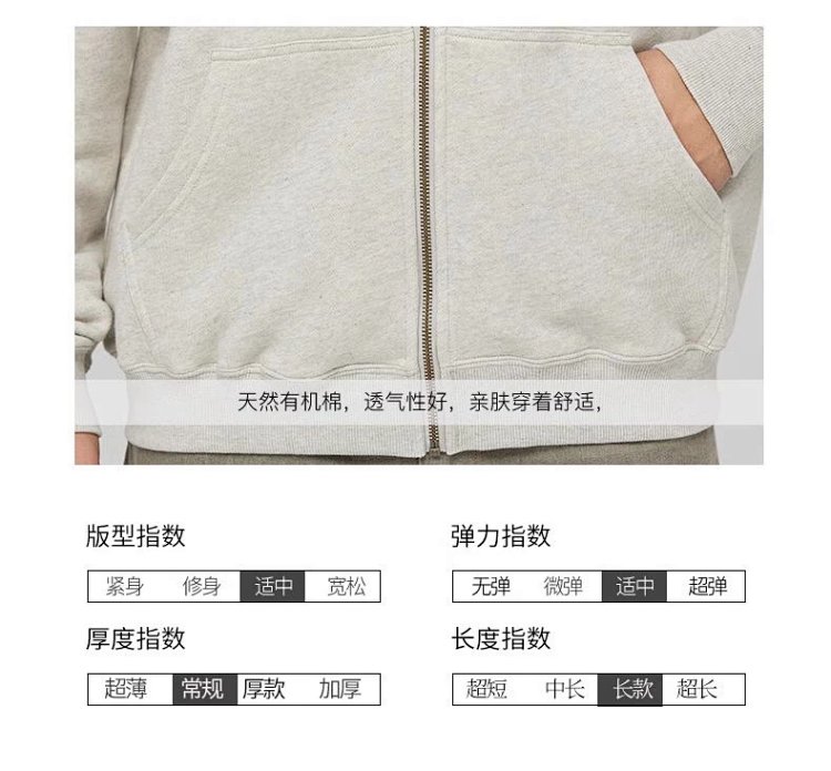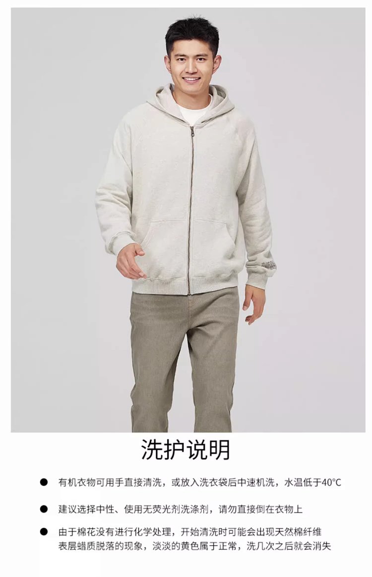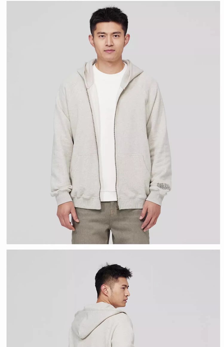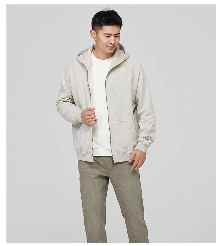 【素道】有机棉 休闲针织连帽外套男士 拉链长袖带帽收袖口SBMA0022 [漳州仓]