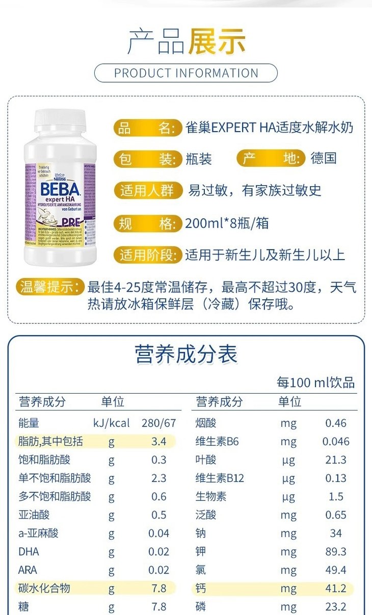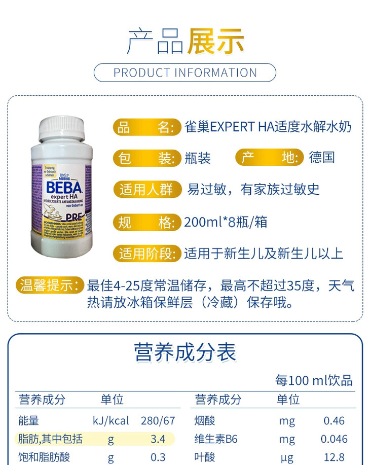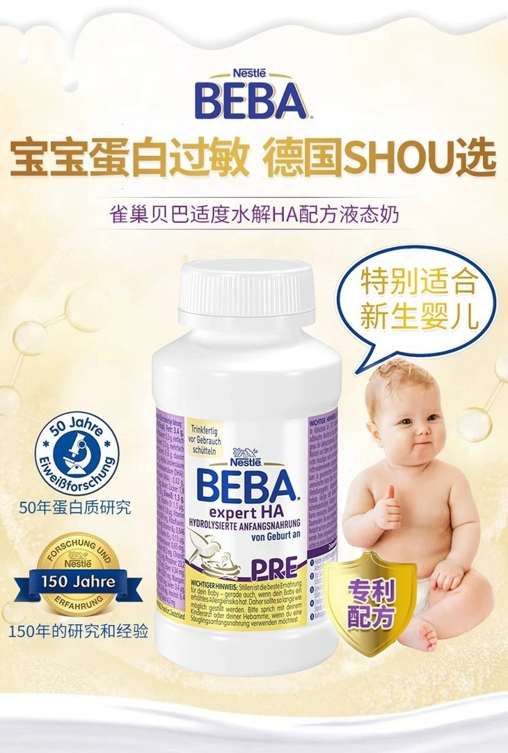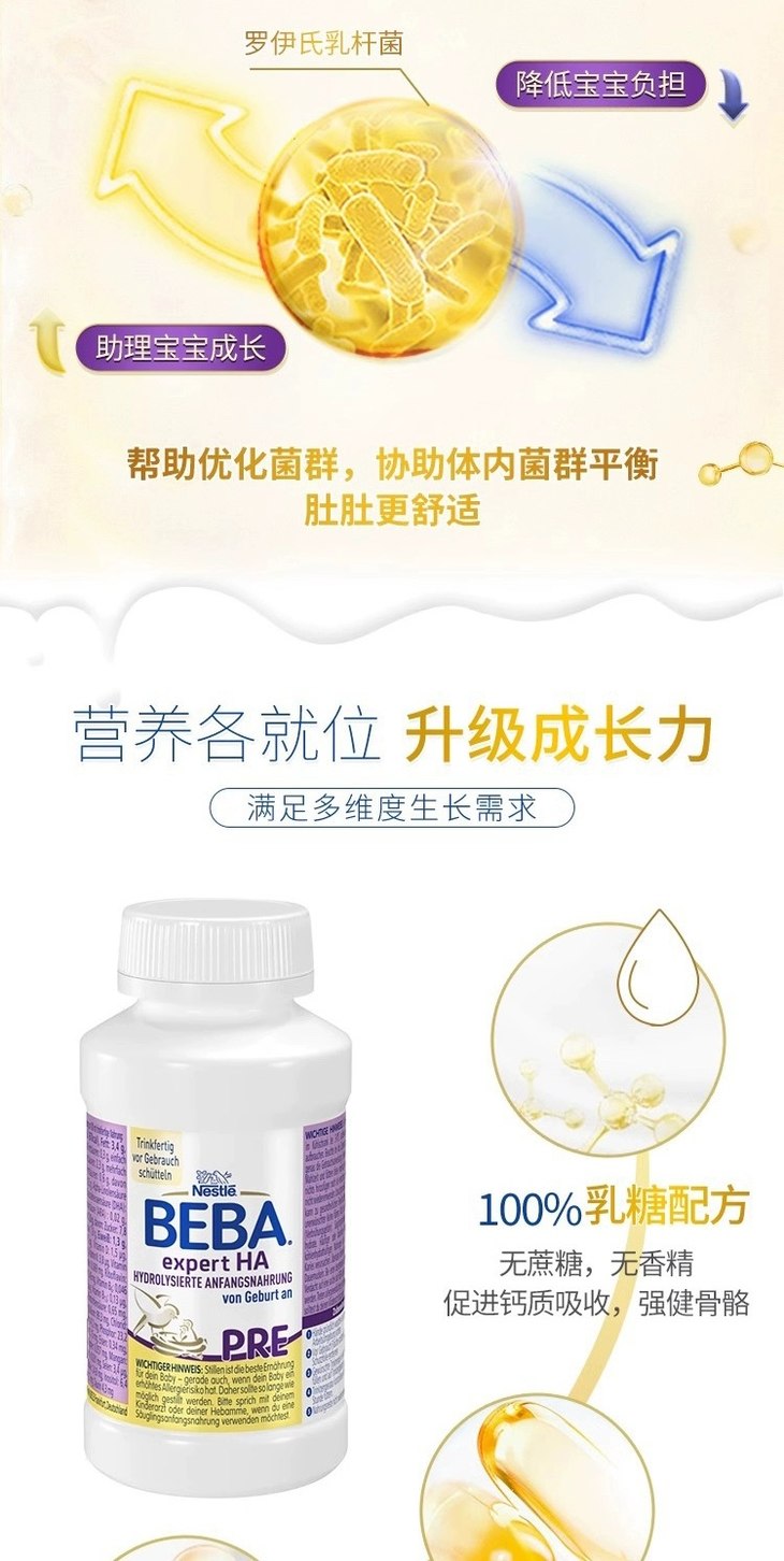 【跨境进口】常温无冰袋义乌发顺丰 4组到手每组379未税 |BEBA HA适度水解水奶Pre段 200ml*12 保质期至26.09 | 报关后不支持退换货,水奶为常温商品,不支持退货介意慎拍